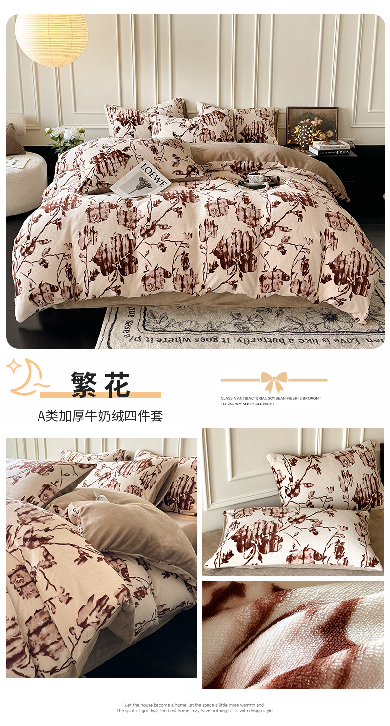 当前位置: 91家纺网 > 商品网购 > 床品套件 > 四件套 > 牛奶绒四件套 > 卡罗兰 2025新款200克牛奶绒小清新印花四件套 喜柿