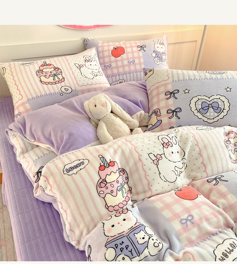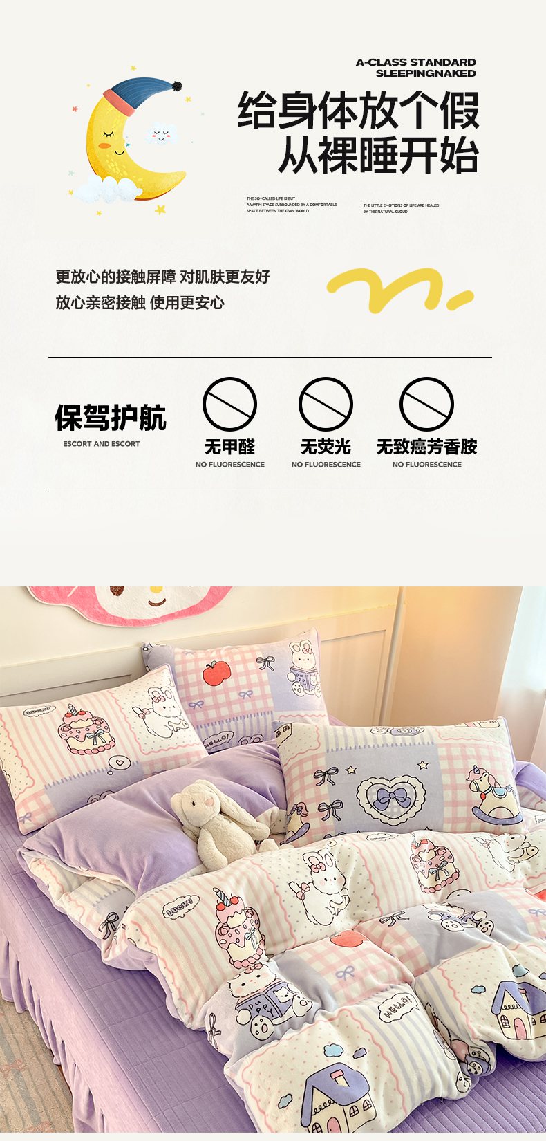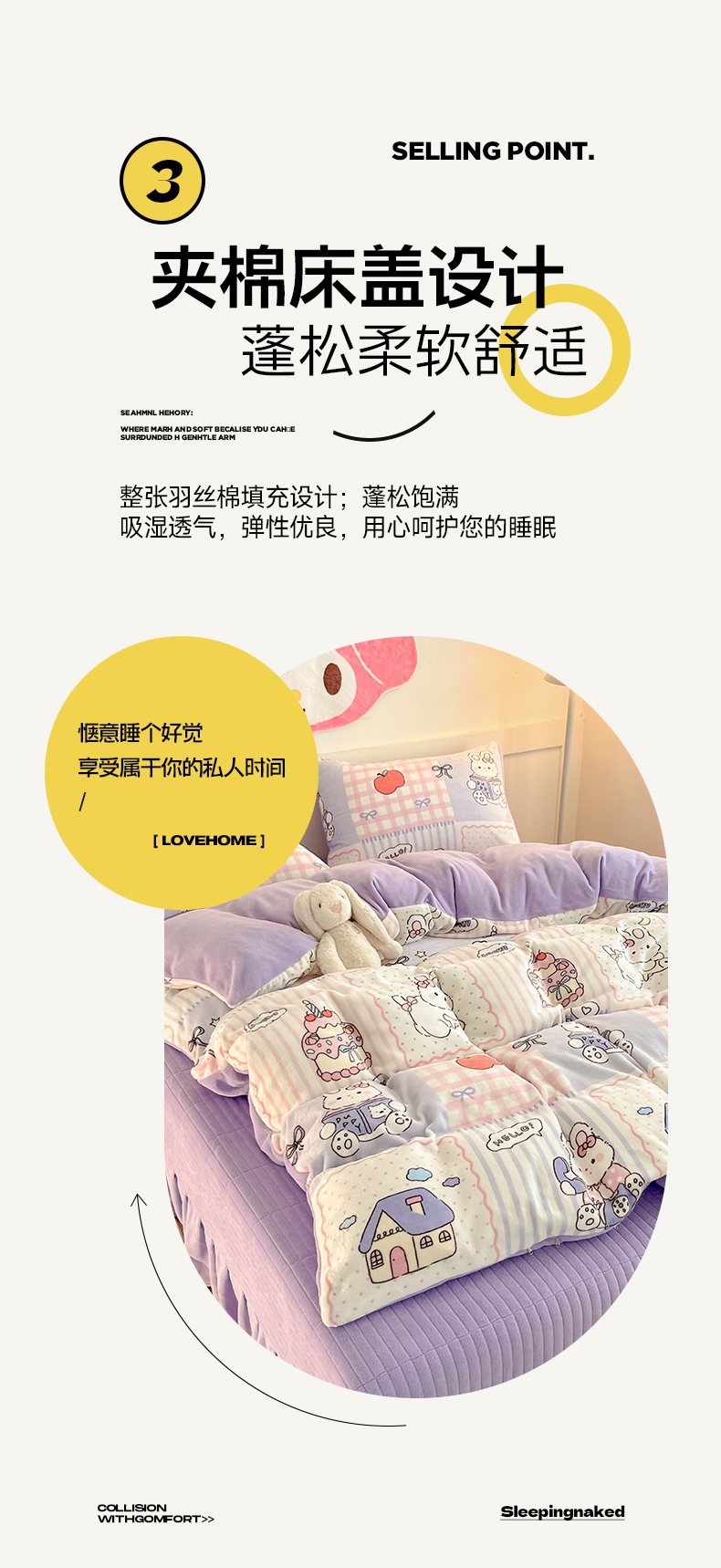 当前位置: 91家纺网 > 商品网购 > 床品套件 > 四件套 > 其它四件套 > 摩妮卡 2025新款牛奶绒印花夹棉床盖印花四件套 萌兔小屋