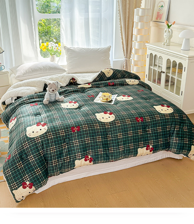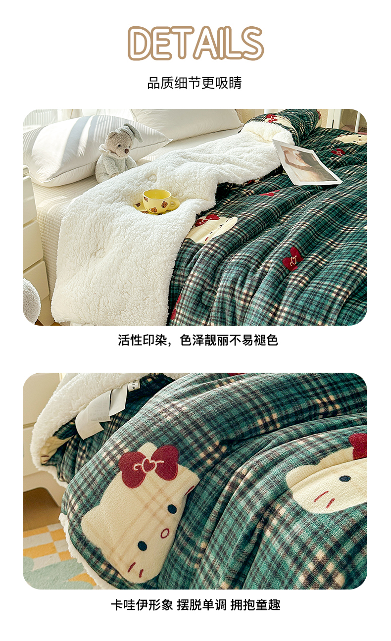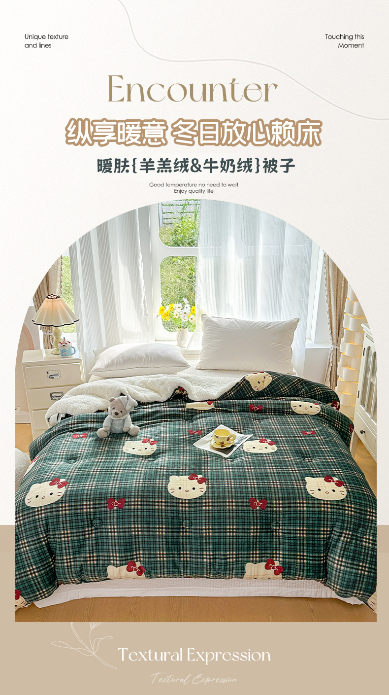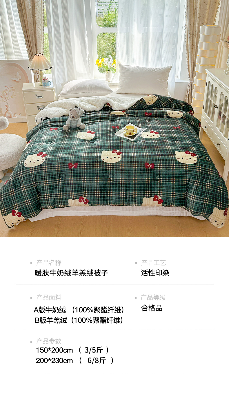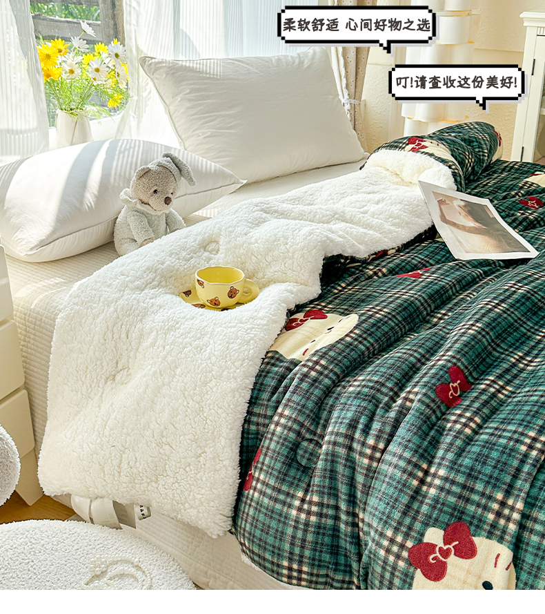 商品名称:爱彼家纺 2025新款日韩奶油风羊羔绒+牛奶绒可爱卡通被子被芯秋被冬被被子被芯 绅士绿kt