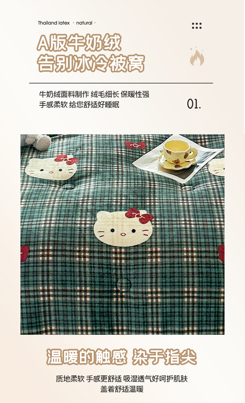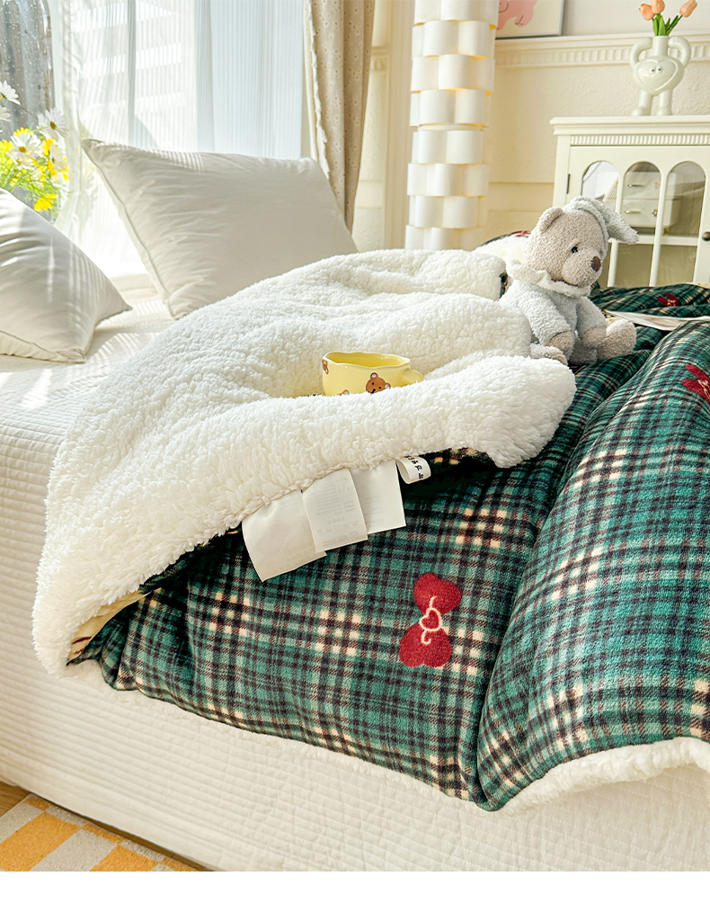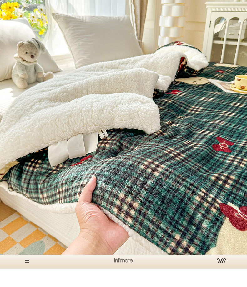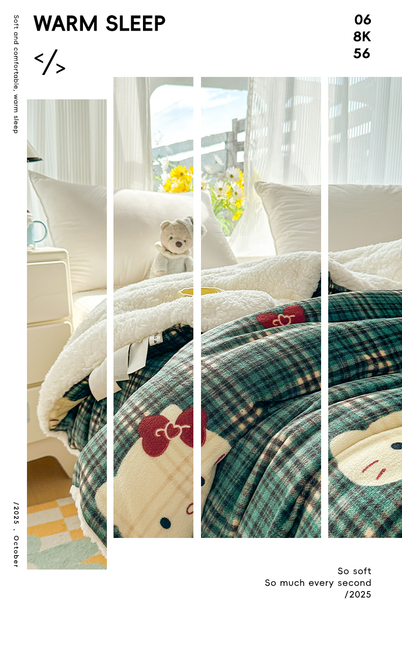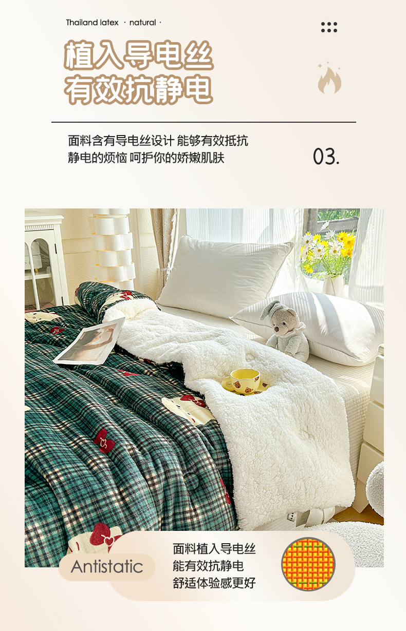 商品名称:爱彼家纺 2025新款日韩奶油风羊羔绒+牛奶绒可爱卡通被子被芯秋被冬被被子被芯 绅士绿kt