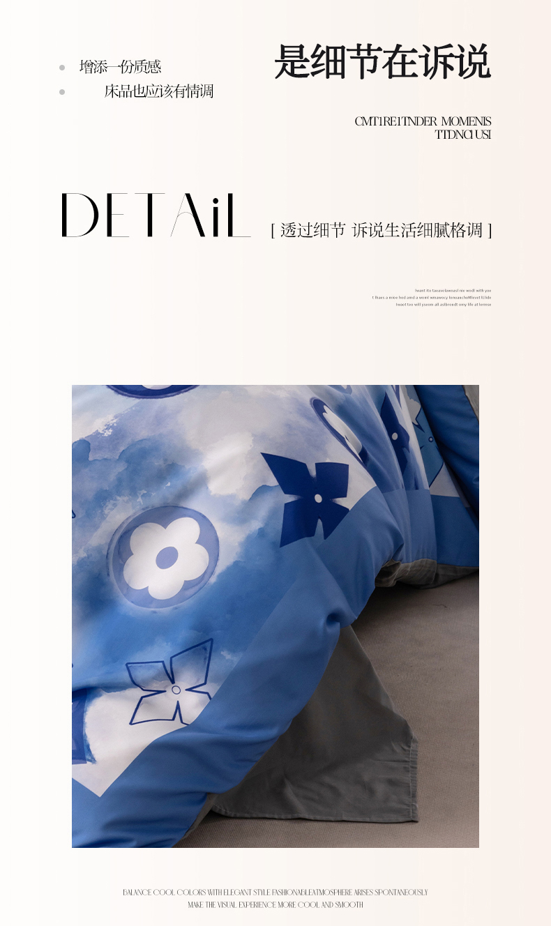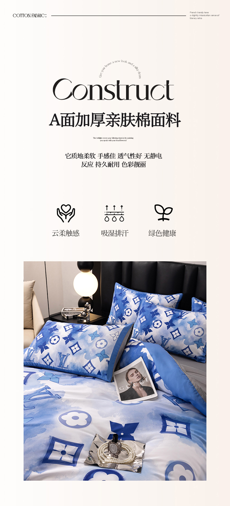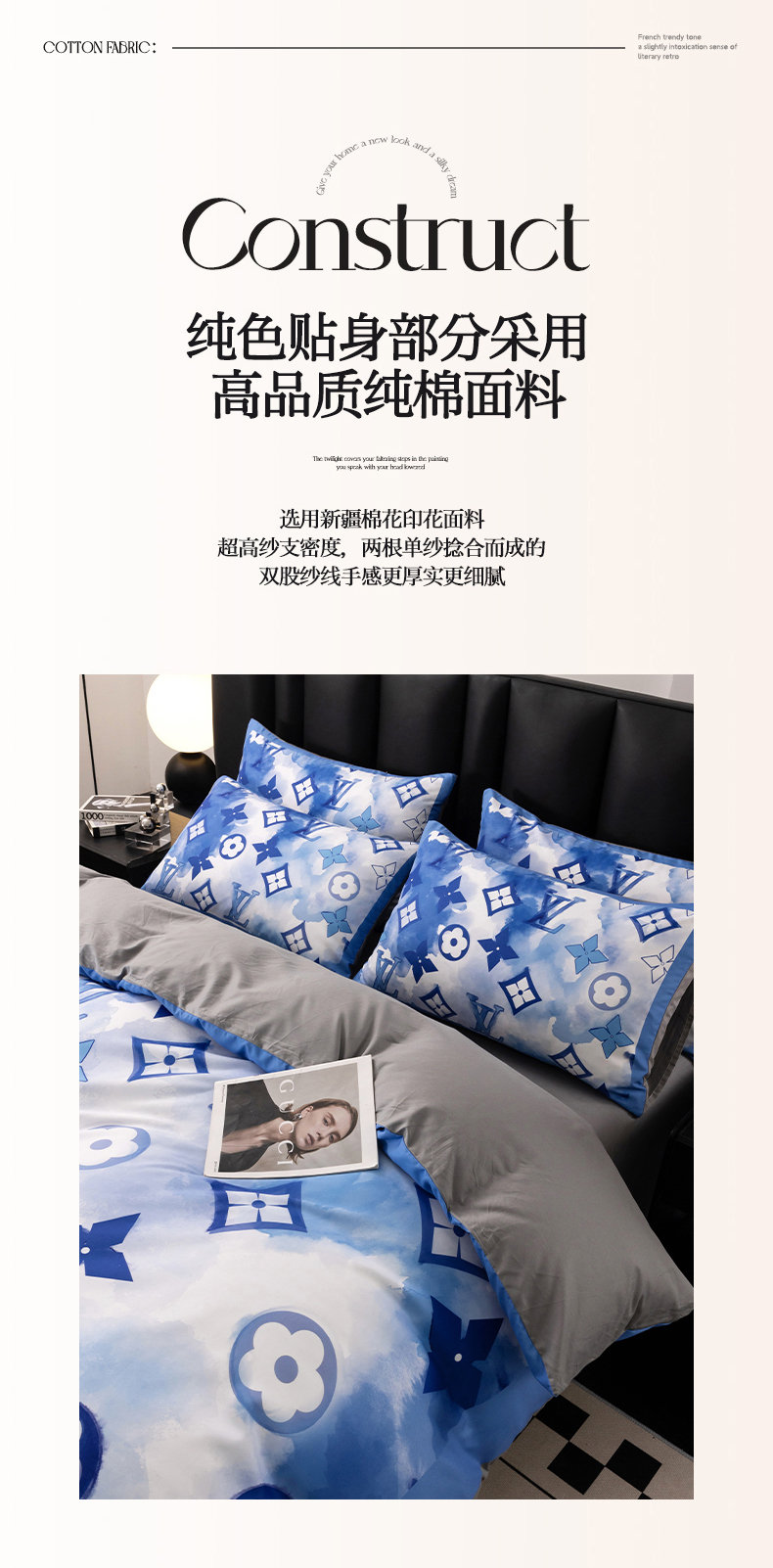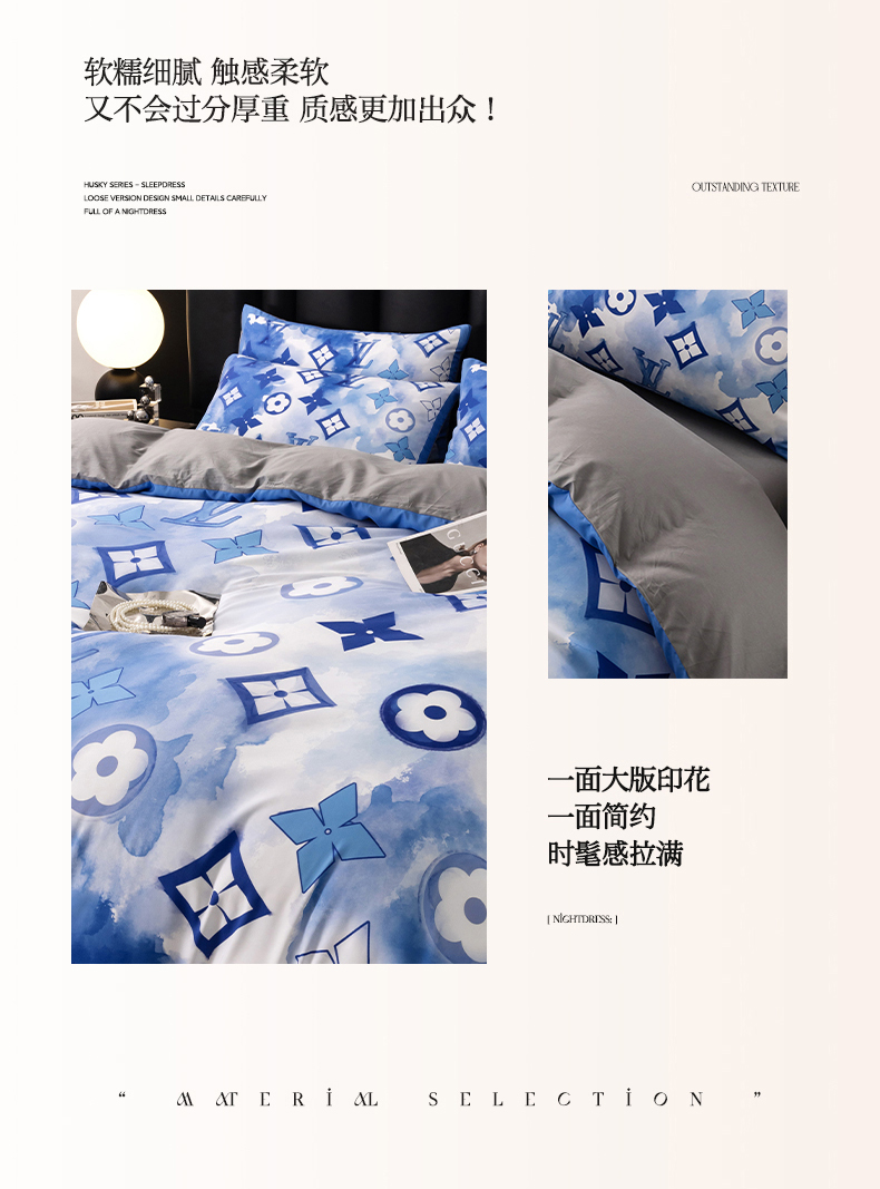 商品名称:色鬼布艺高端家居主号 2025新款轻奢亲肤纯棉数码印花网红热款四件套 克莱因