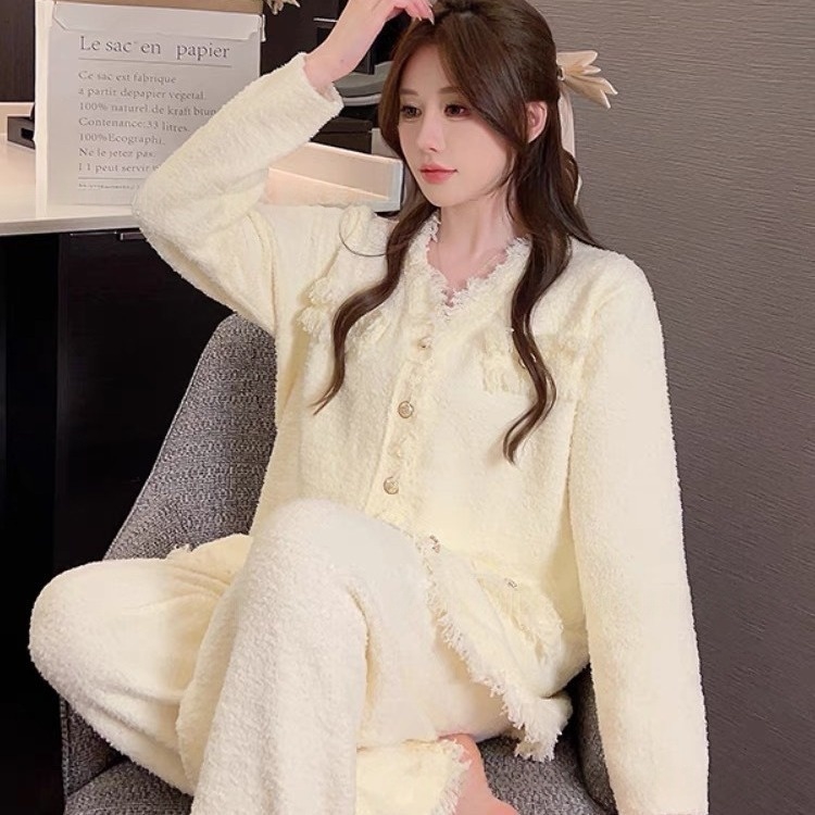 商品名称:洛兰沙家居馆 2025新款半边绒睡衣女高级感开衫直筒裤家居服加厚可外穿百搭睡衣家居服 半边绒7