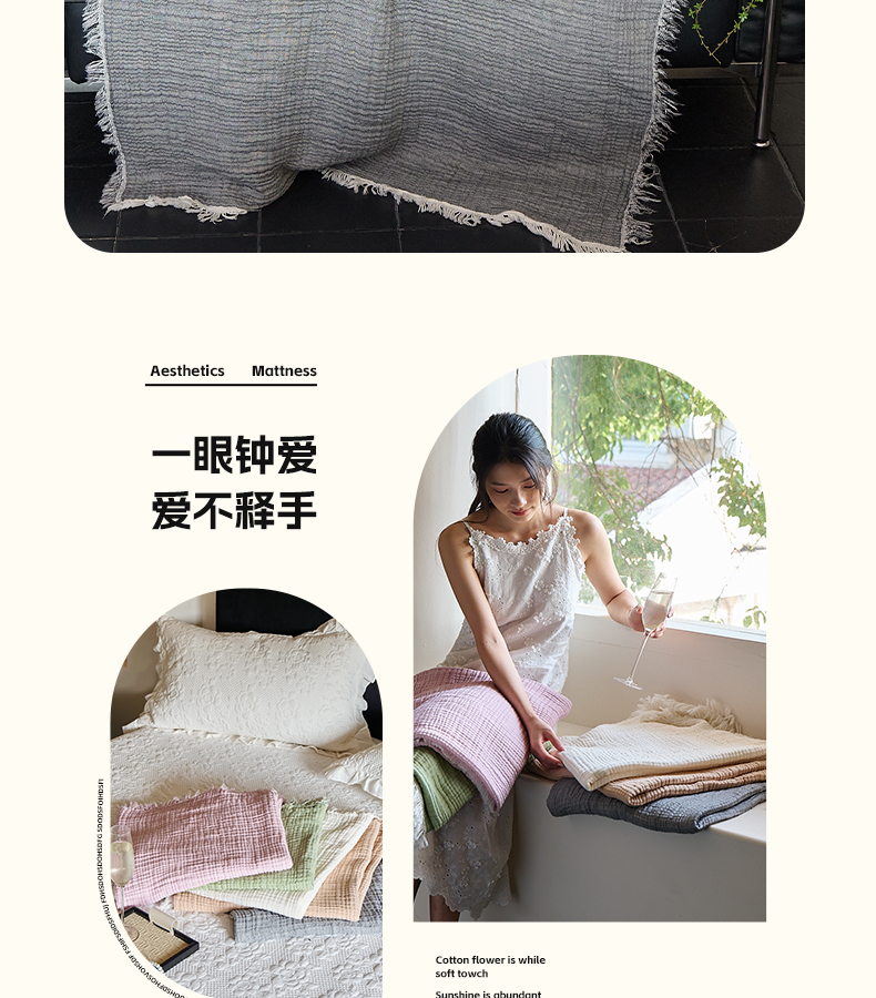 (总)沐瑟家纺 2026新款全棉四层纱布床盖-星星和心情系列,心情-粉色,心情-灰蓝,心情-卡其,星星-黄色,星星-灰色,星星-蓝色,星星-紫色,组合