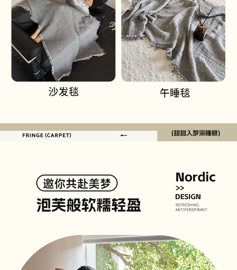 (总)沐瑟家纺 2025新款简约风多功能纱布盖毯纱布毯子毛巾被床盖沙发巾单毯枕巾枕套三件套,H本色,H橙色,H咖色,大马士革本色