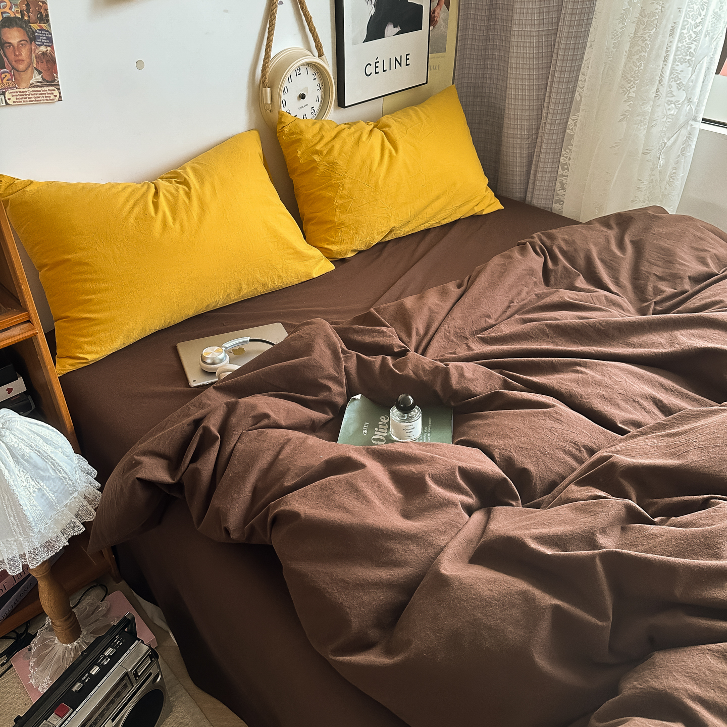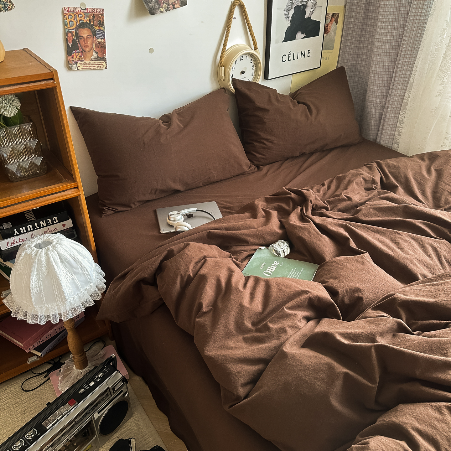 (总)对白 2025新款全棉纯棉色织水洗棉四件套-纯色摩卡【提供买家秀】