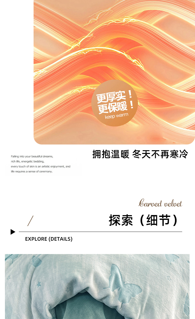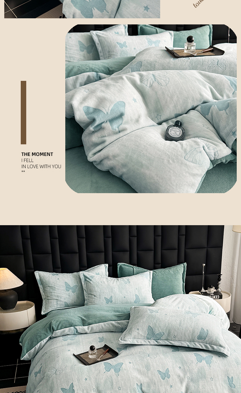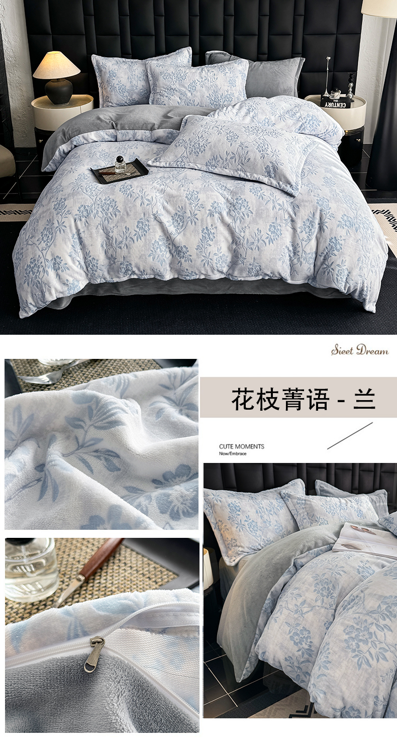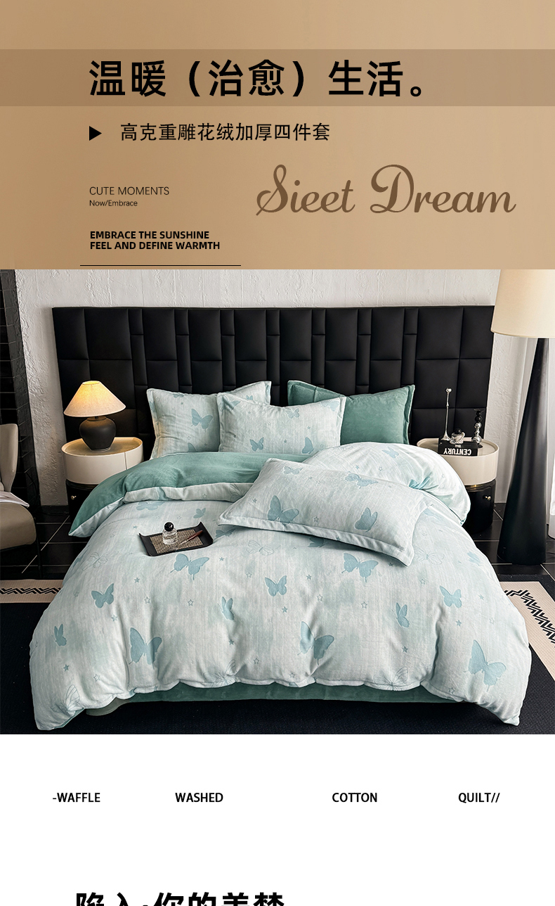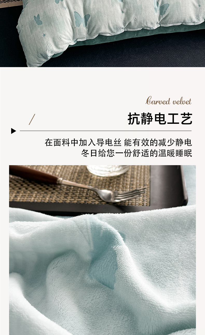 当前位置: 91家纺网 > 商品网购 > 床品套件 > 四件套 > 其它四件套 > 金盛纺 2025新款亲肤舒适高克重雕花绒系列四件套(可定制) 蝶梦空间-绿