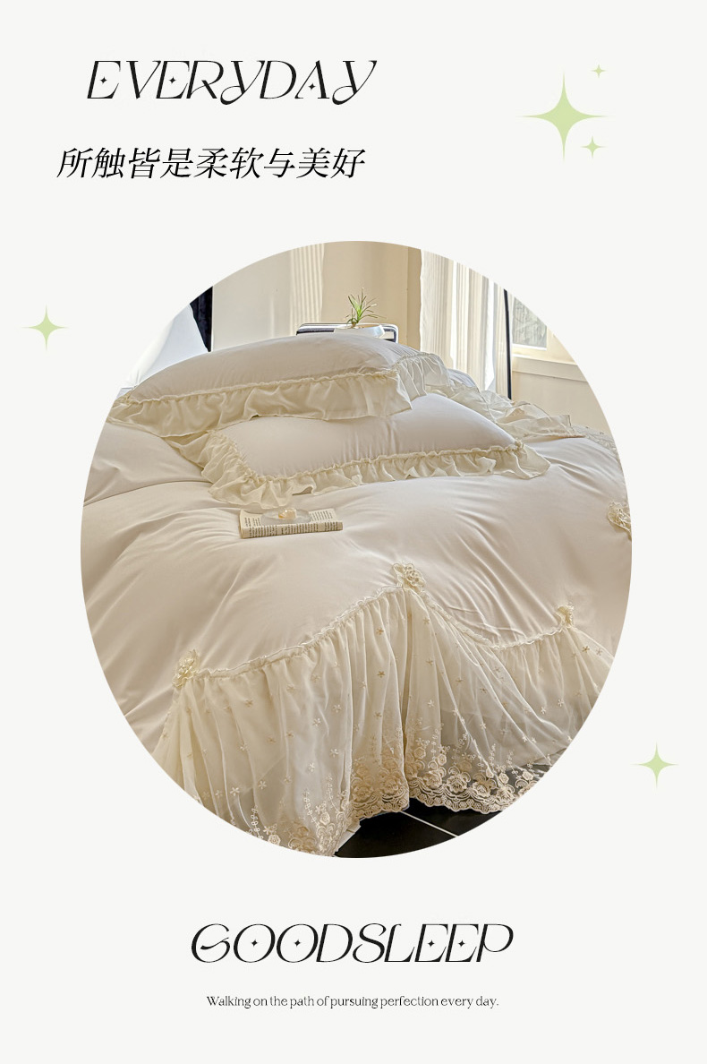 (总)艺玲家纺 2025新款韩版亲肤水洗棉刺绣花边床裙四件套,香香小姐-粉玉,香香小姐-米黄,香香小姐-浅绿,香香小姐-浅紫