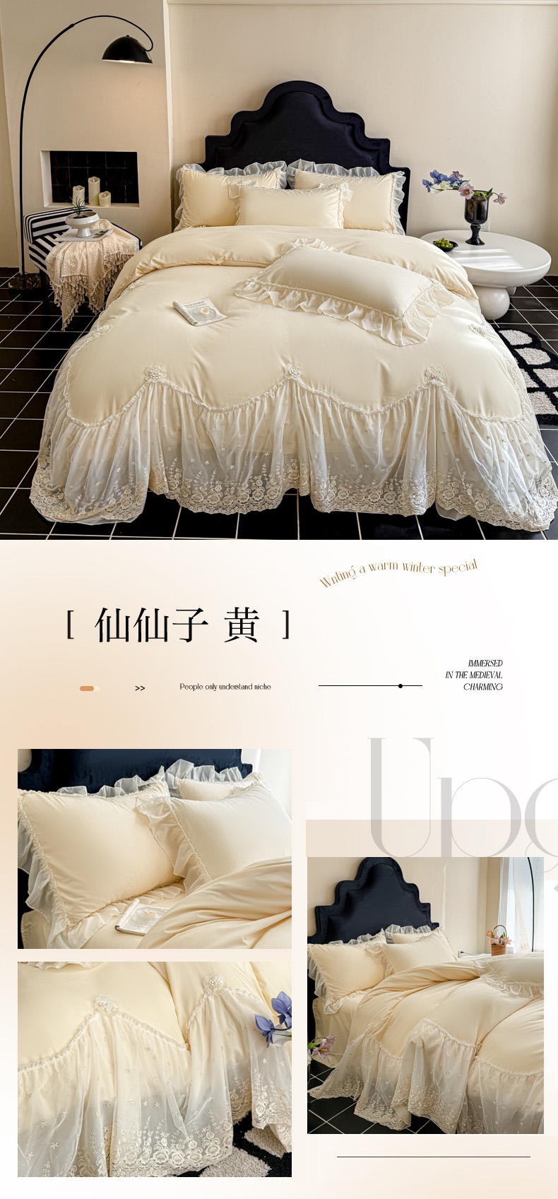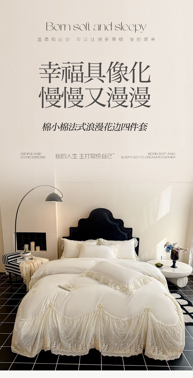 (总)艺玲家纺 2025新款赫本风系列法式花边水洗棉四件套,小香风 爱心-白色,小香风 爱心-黑色,小香风 爱心-奶黄,小香风 爱心-天蓝,小香风 爱心-玉色,小香风 蝴蝶结-白色,小香风 蝴蝶结-黑色,小香风 蝴蝶结-奶黄,小香风 蝴蝶结-天蓝,小香风 蝴蝶结-玉色