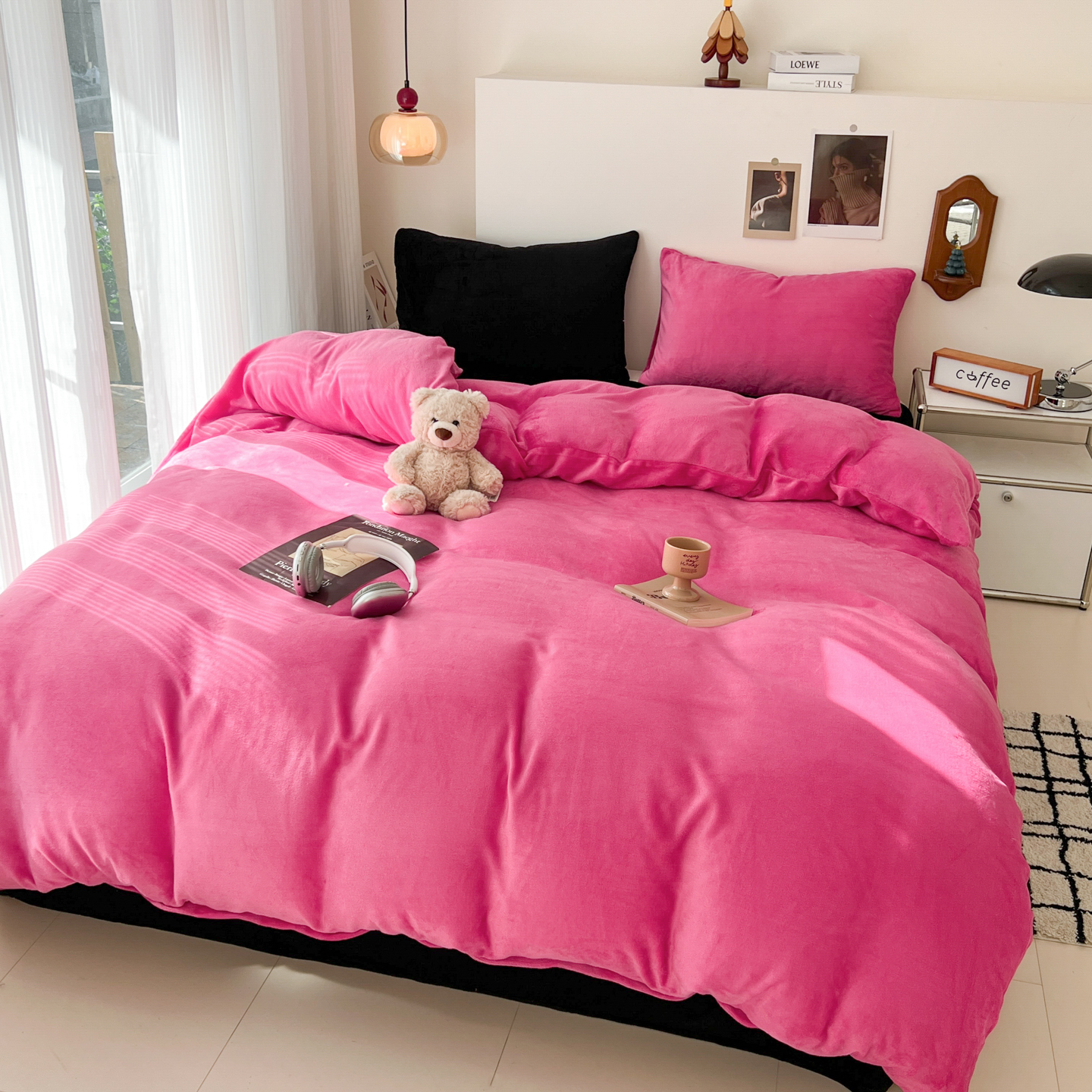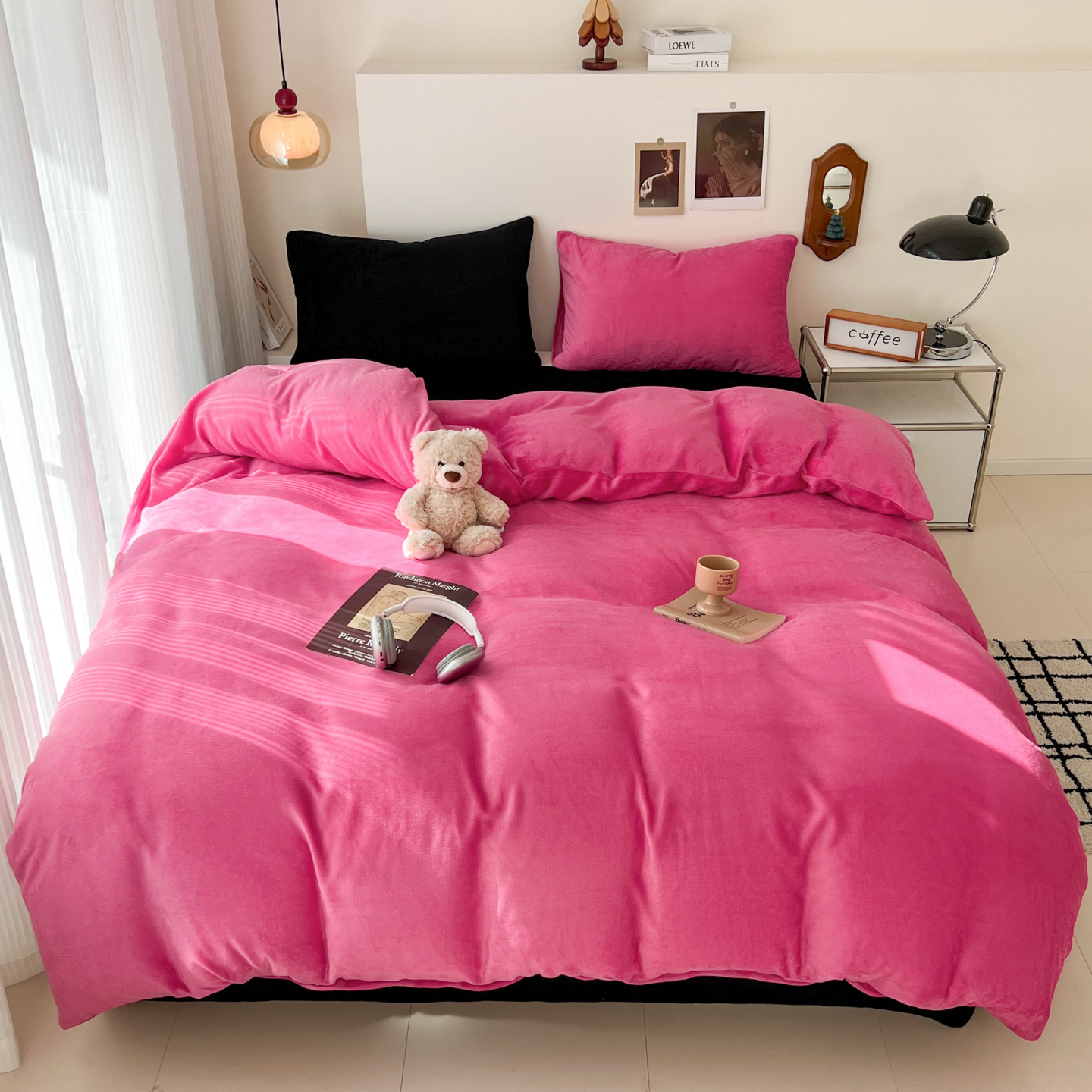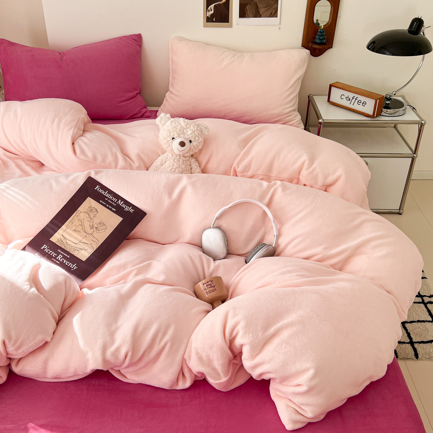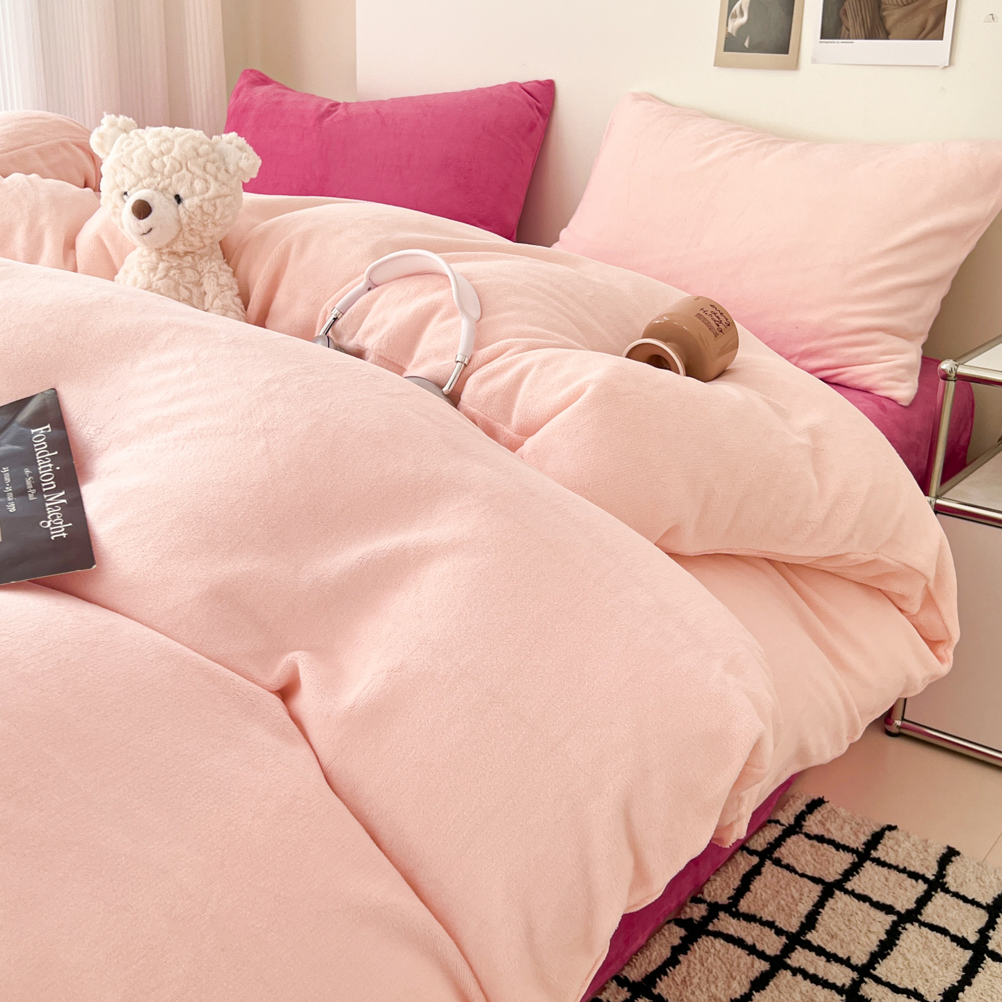 当前位置: 91家纺网 > 商品网购 > 床品套件 > 四件套 > 牛奶绒四件套 > 童颜 2025新款高克重拼色保暖牛奶绒四件套-场景二 粉玉+玫红
