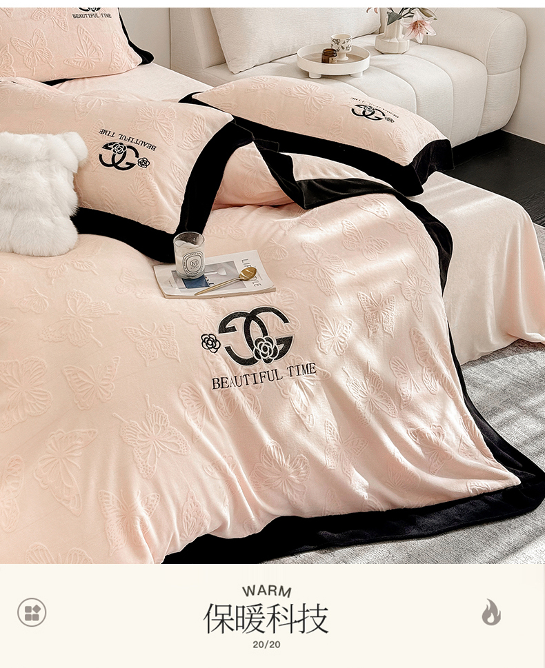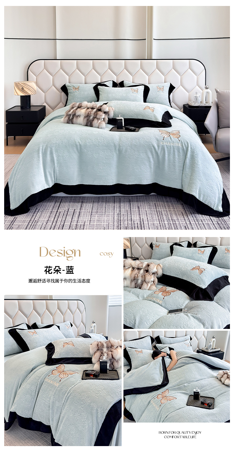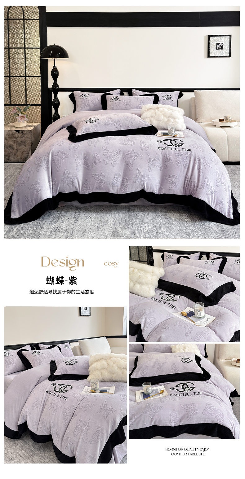 (总)优眠坊 2025新款雕花牛奶绒绣花四件套,蝴蝶-粉,蝴蝶-蓝,蝴蝶-米白,蝴蝶-紫