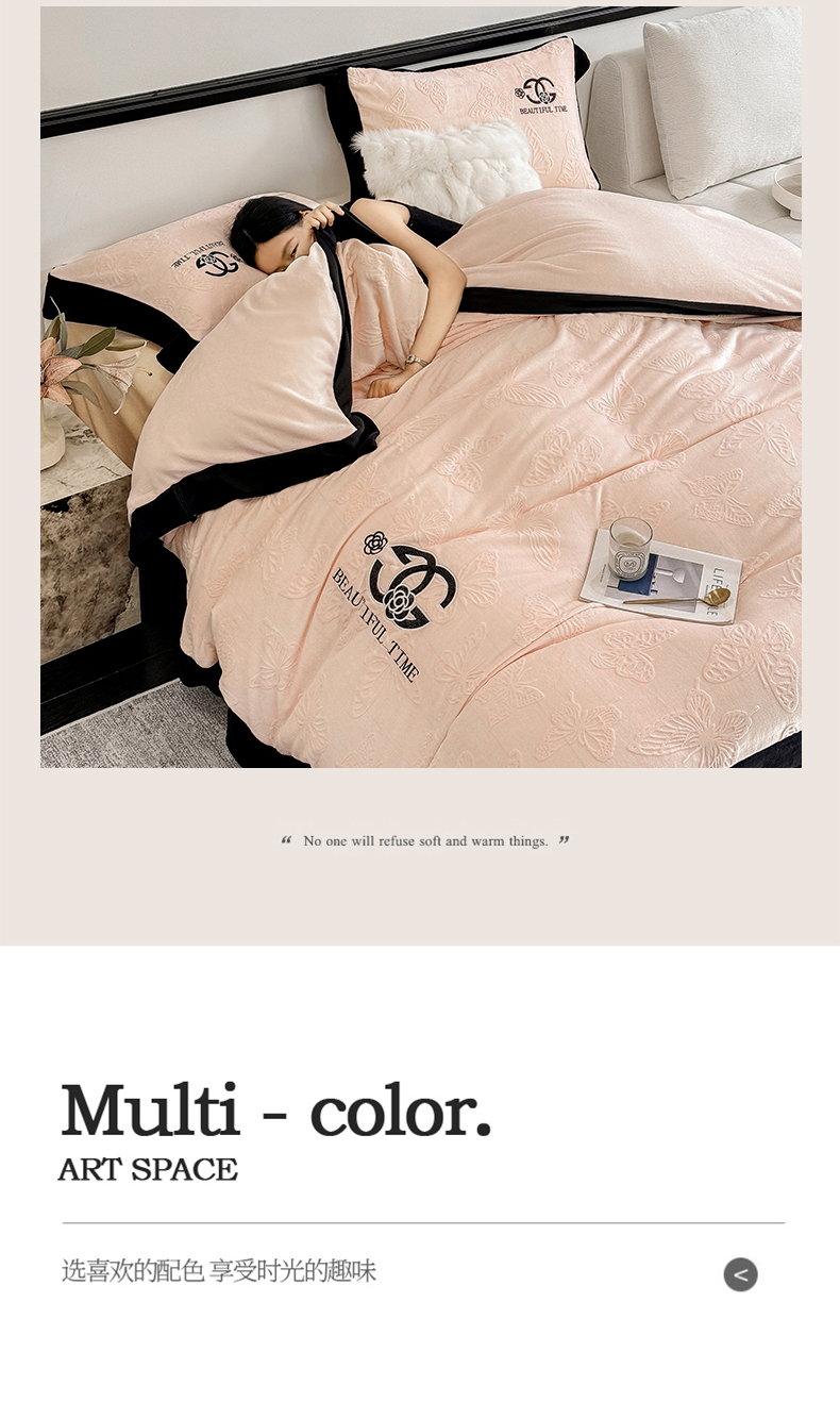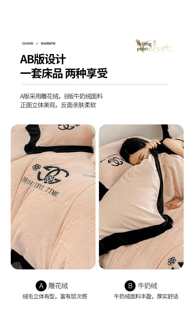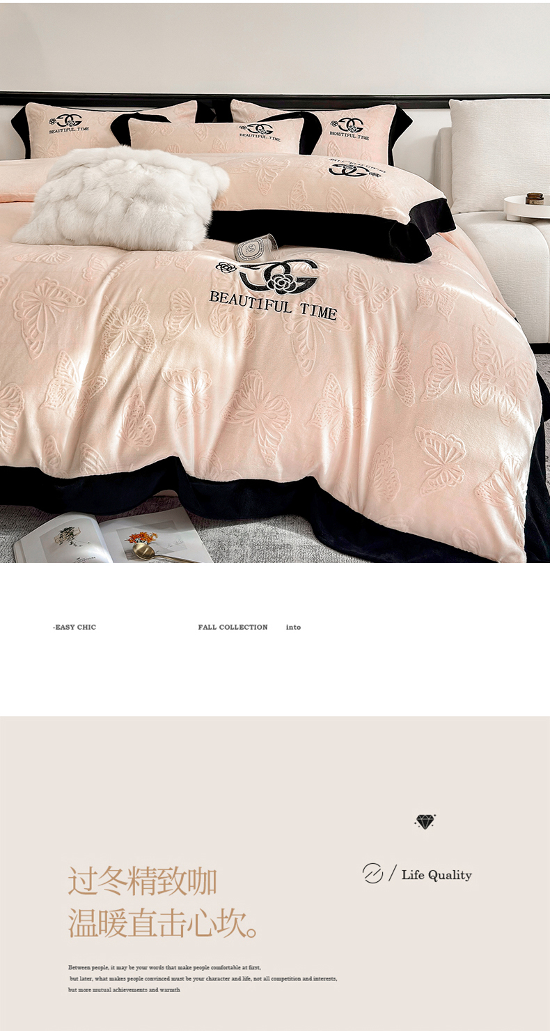 (总)优眠坊 2025新款雕花牛奶绒绣花四件套,蝴蝶-粉,蝴蝶-蓝,蝴蝶-米白,蝴蝶-紫