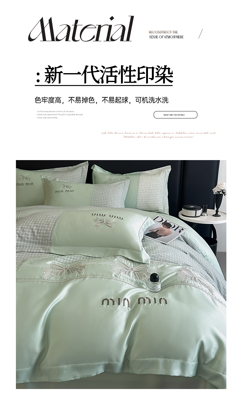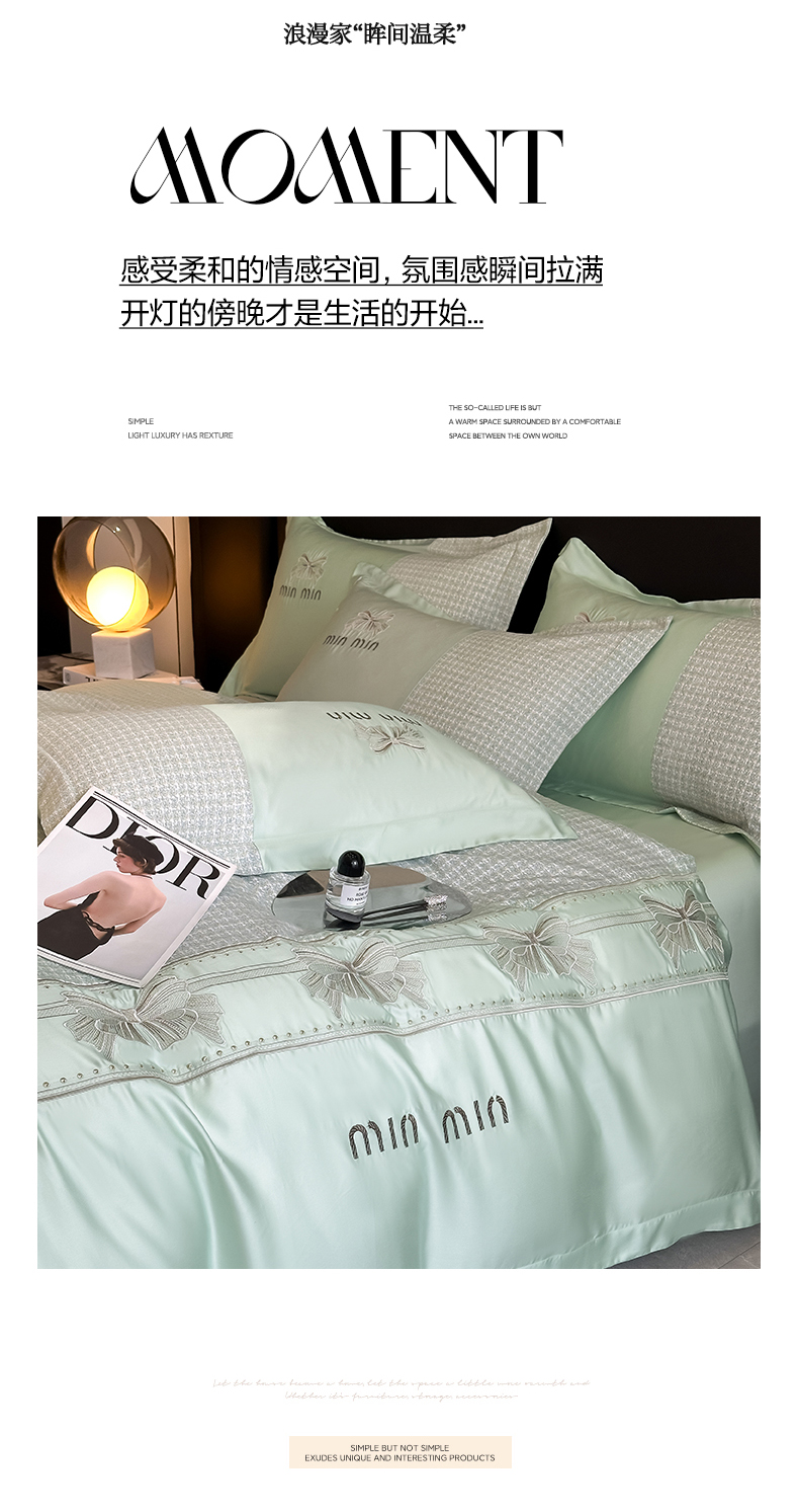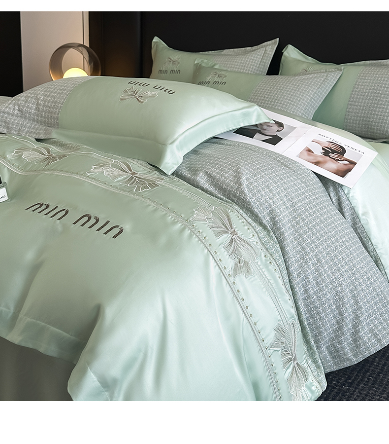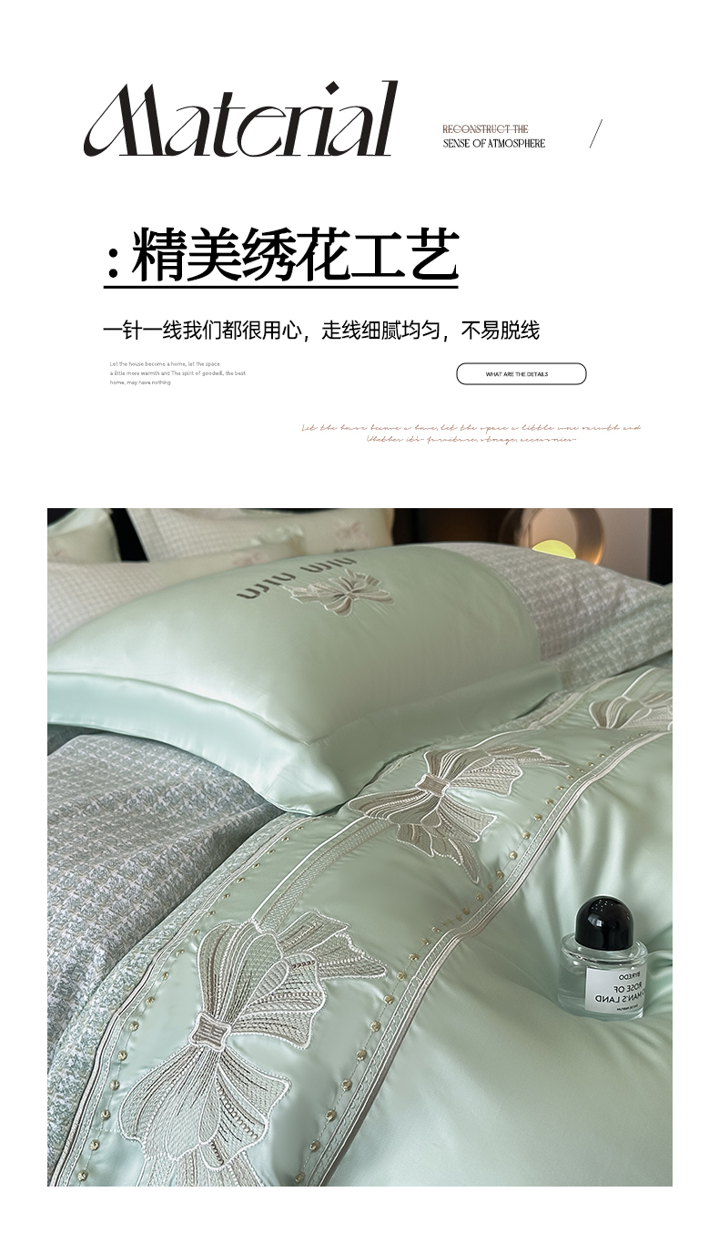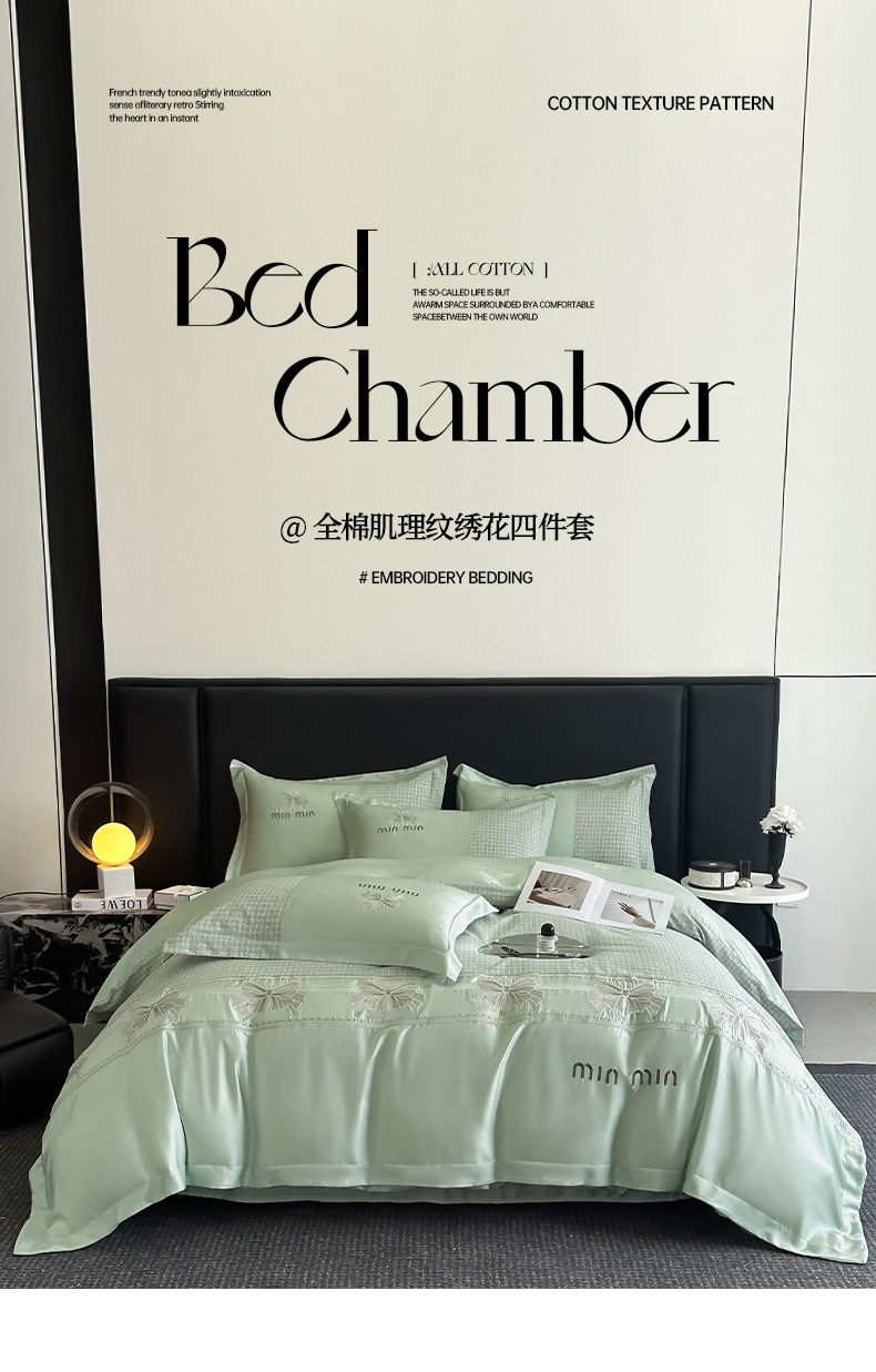 优眠坊 2025新款全棉肌理纹绣花四件套-雅菲系列 雅菲-绿