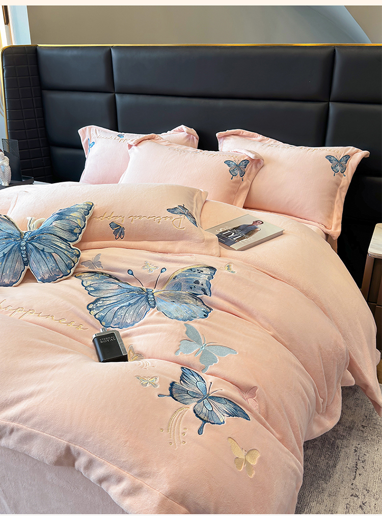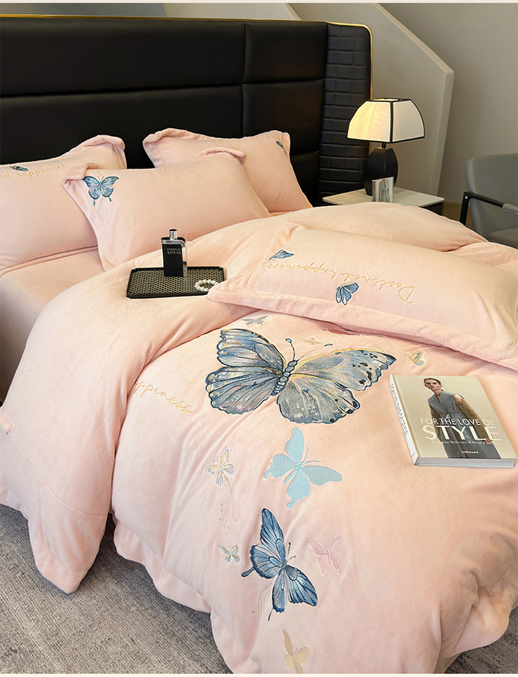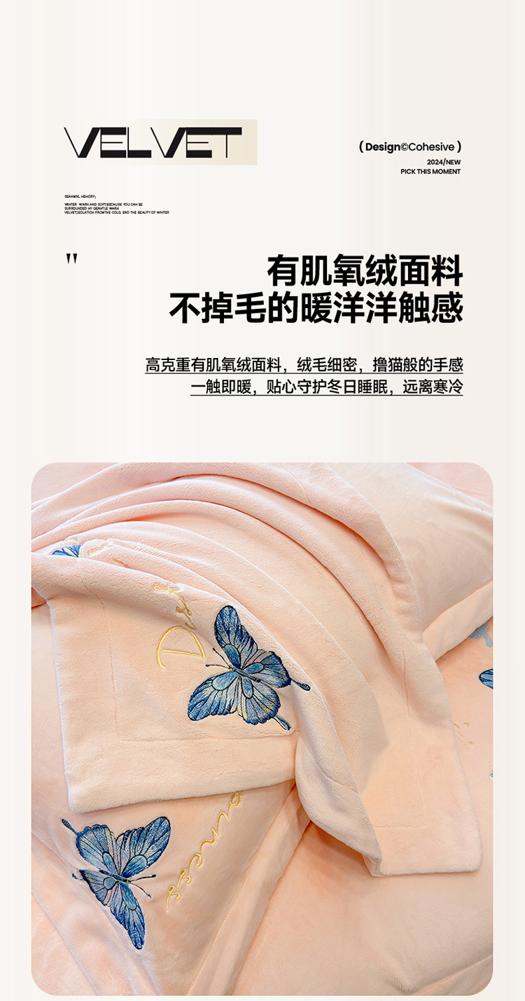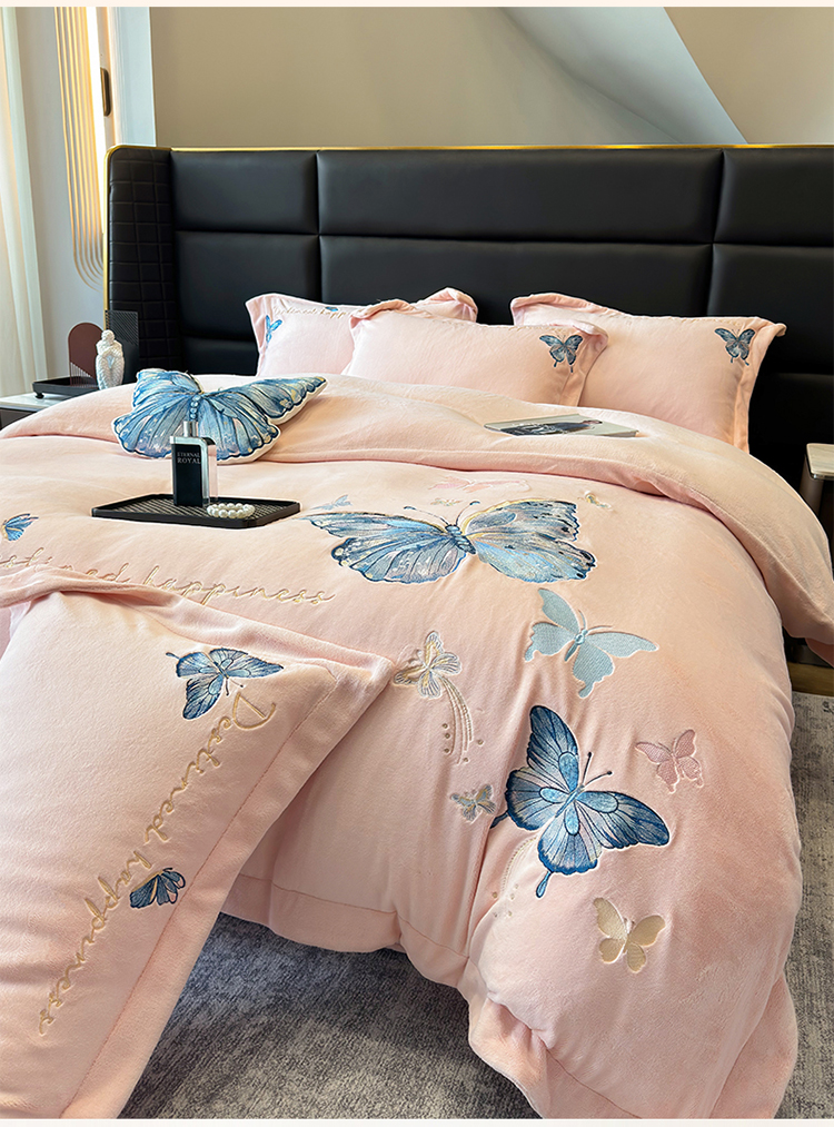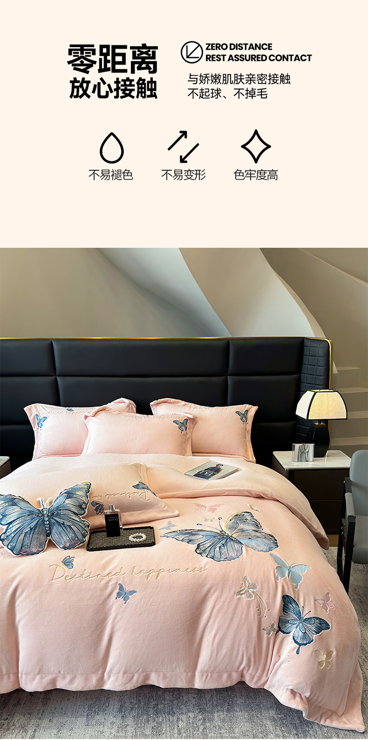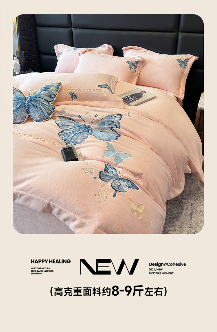 当前位置: 91家纺网 > 商品网购 > 床品套件 > 四件套 > 牛奶绒四件套 > 手提包九斤重超厚绵密有肌氧绒刺绣四件套秋冬加厚保暖牛奶绒宝宝绒床上用品 蔷薇粉-绒蝶舞-A类超厚绵密有肌氧绒