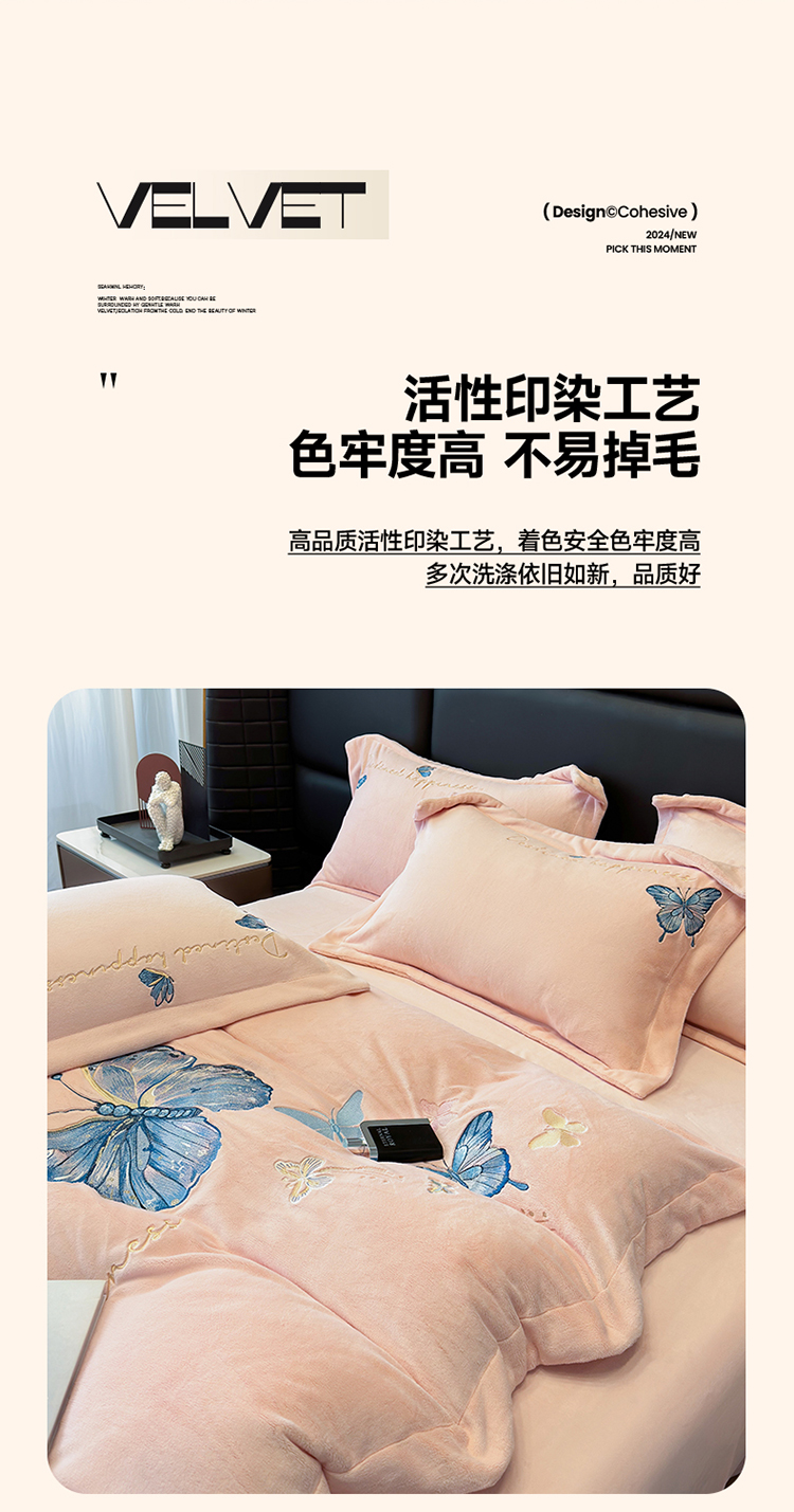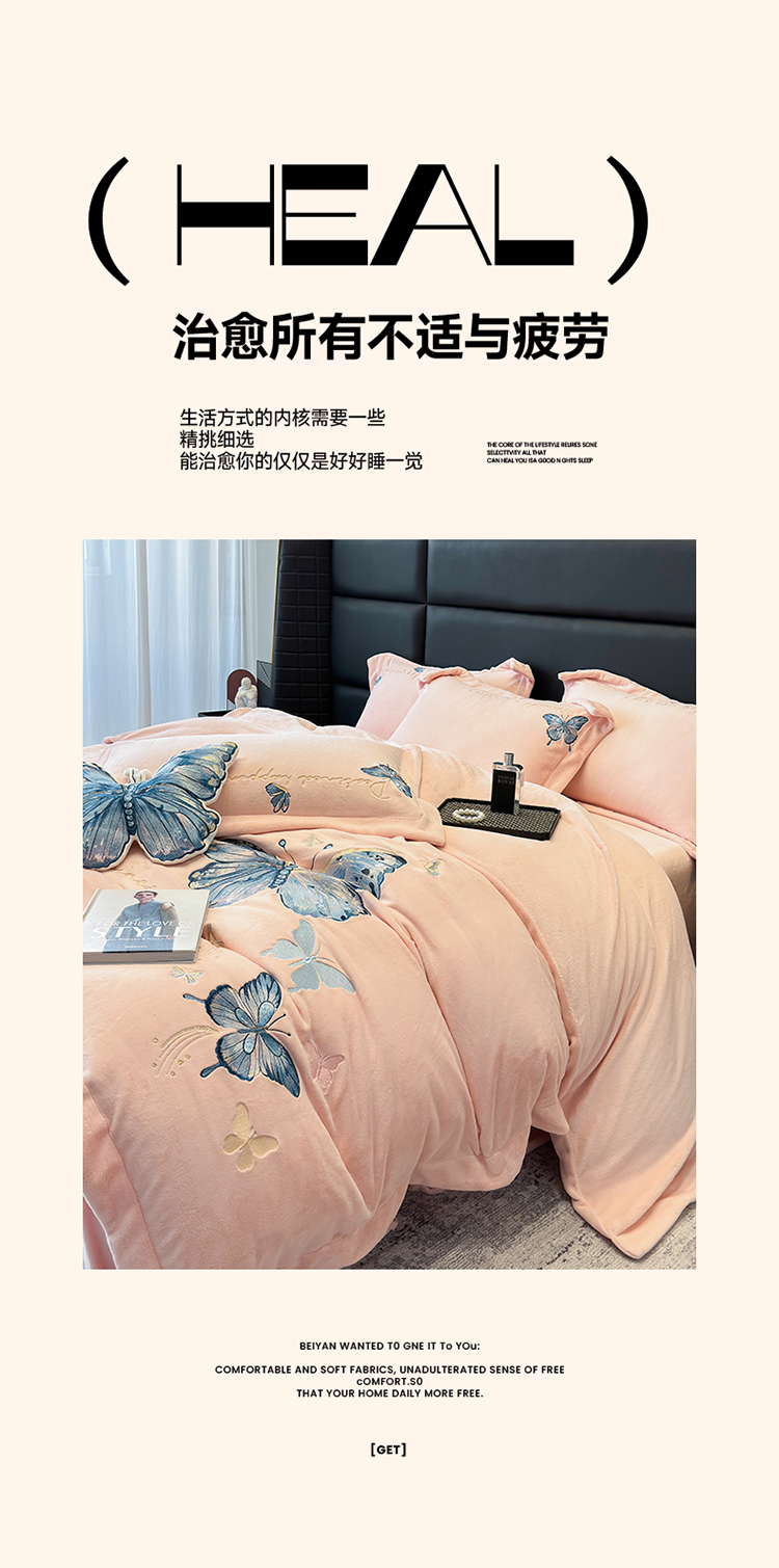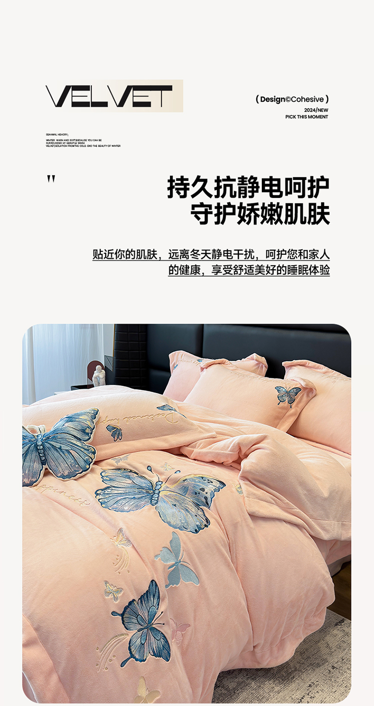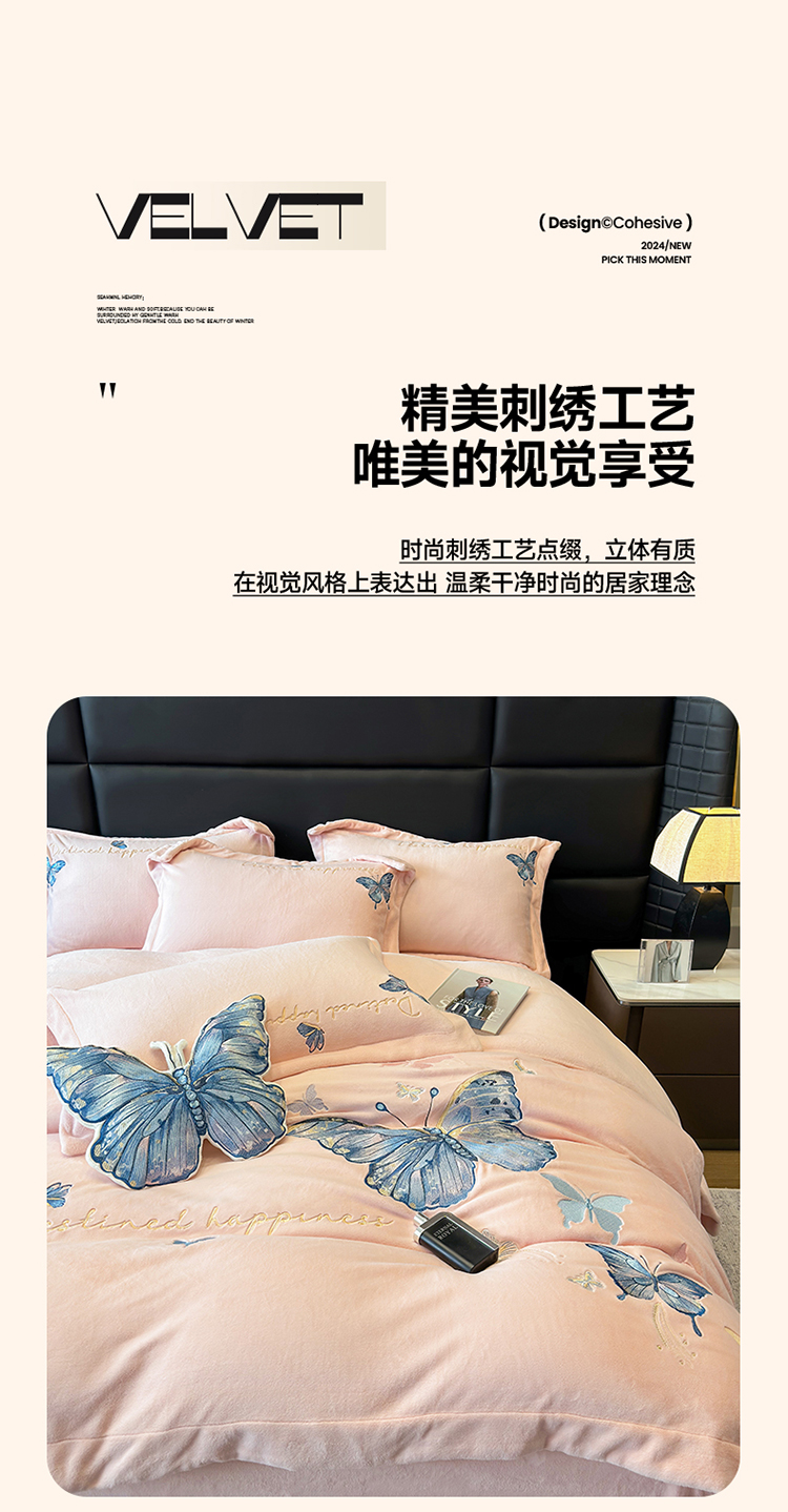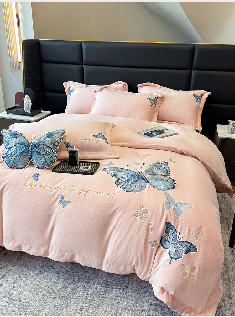 当前位置: 91家纺网 > 商品网购 > 床品套件 > 四件套 > 牛奶绒四件套 > 手提包九斤重超厚绵密有肌氧绒刺绣四件套秋冬加厚保暖牛奶绒宝宝绒床上用品 蔷薇粉-绒蝶舞-A类超厚绵密有肌氧绒