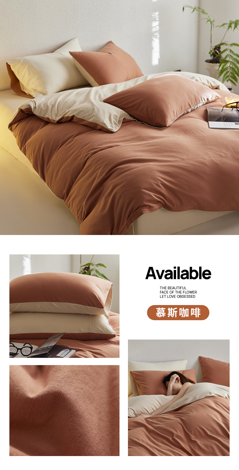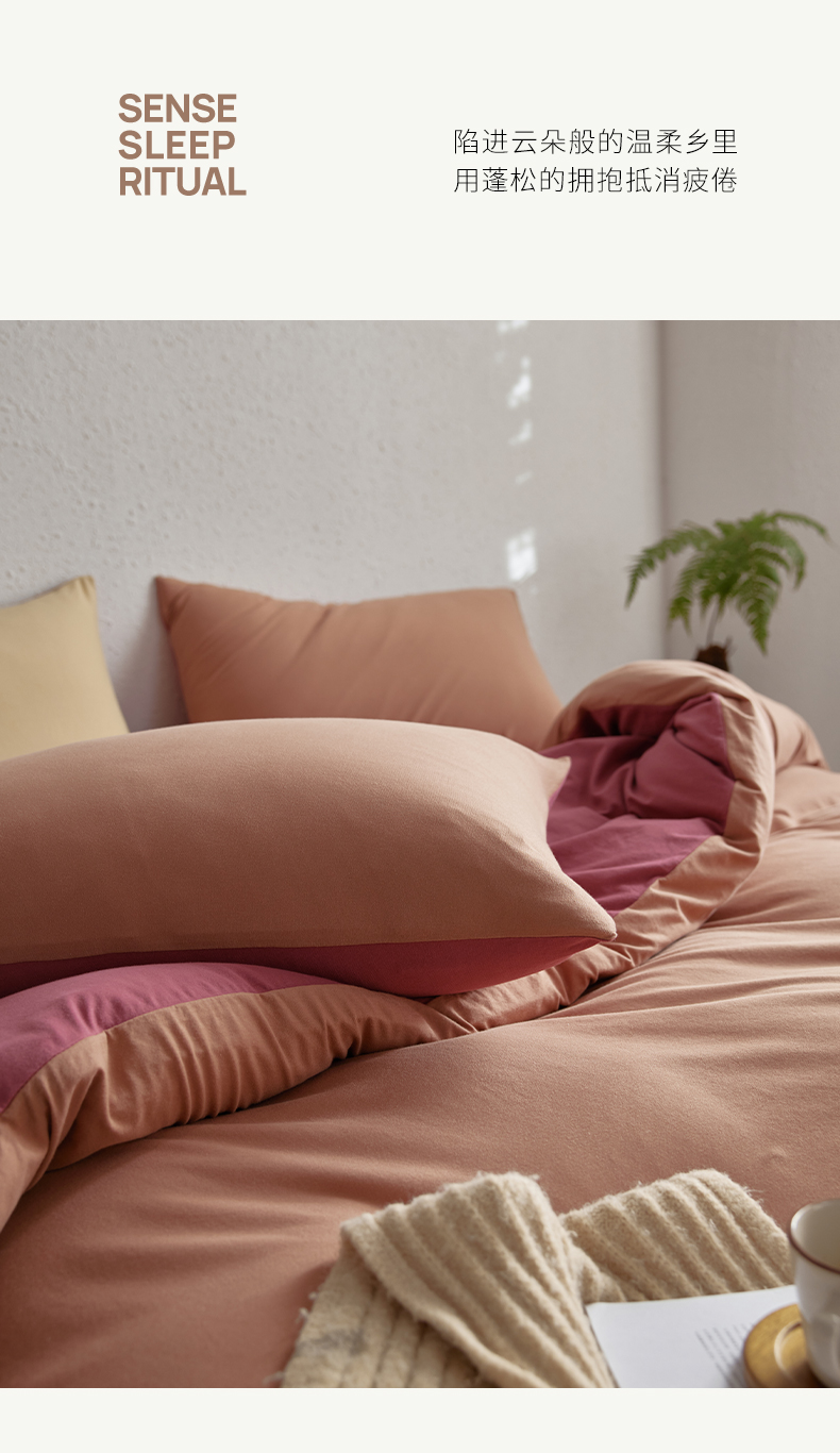 当前位置: 91家纺网 > 商品网购 > 床品套件 > 四件套 > 其它四件套 > 风向标家纺 2025新款亲肤舒适赛络棉全棉纯棉针织棉(螺旋纱)四件套 慕斯红酒