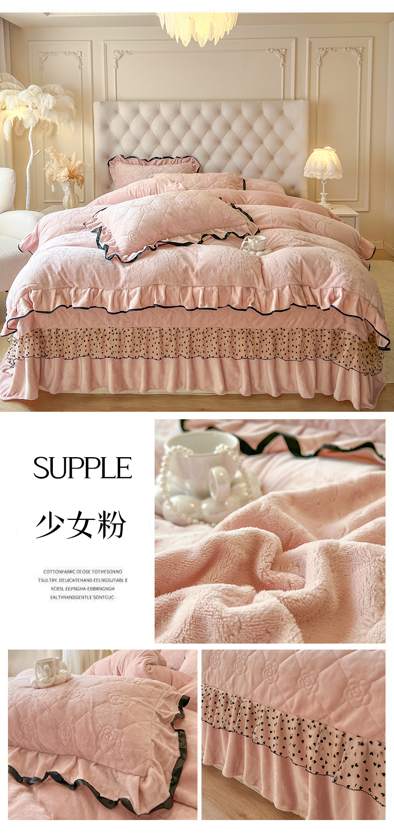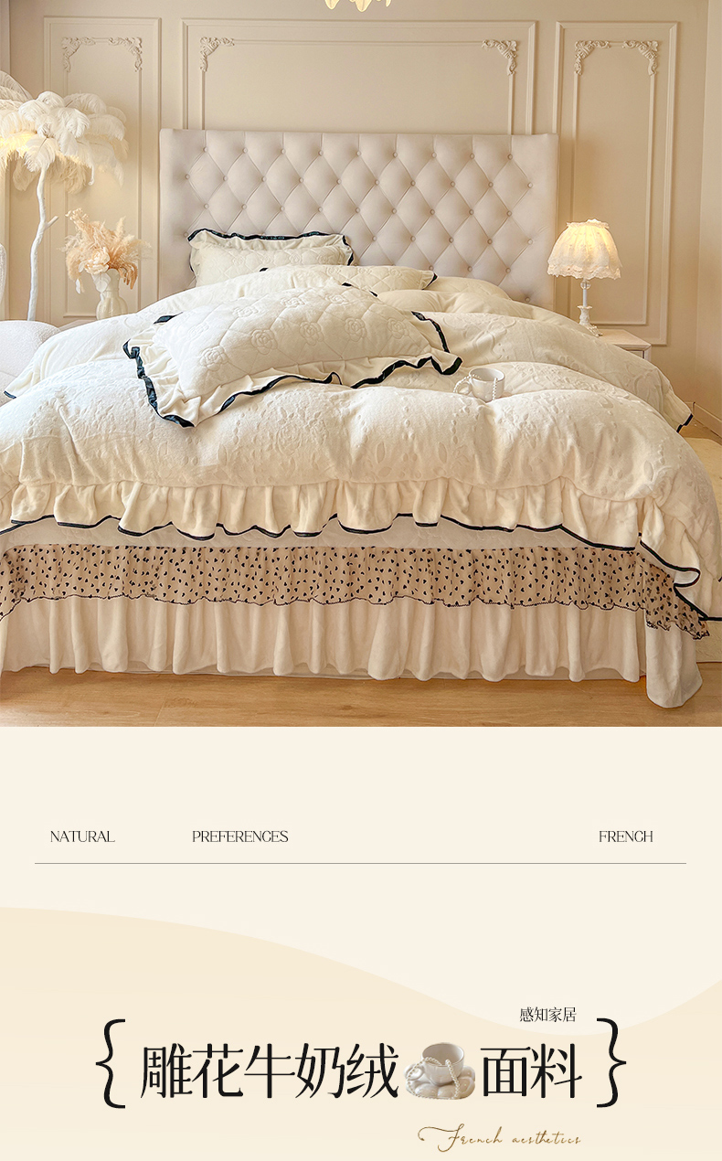 (总)瑞宝 2025新款雕花牛奶绒夹棉床裙四件套-花有约,花有约-粉玉,花有约-卡其,花有约-蔚蓝,花有约-青柠绿,花有约-梦幻紫,花有约-奶油白