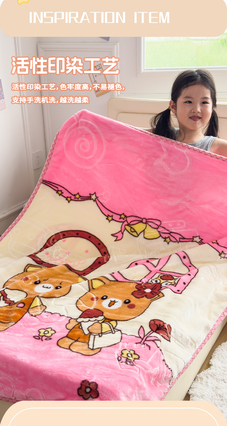 悦织湾家纺 2025新款拉舍尔双层云绒童毯毯子卡通休闲沙发盖毯毛毯儿童婴幼儿宝宝小毯子 可爱小熊22#粉