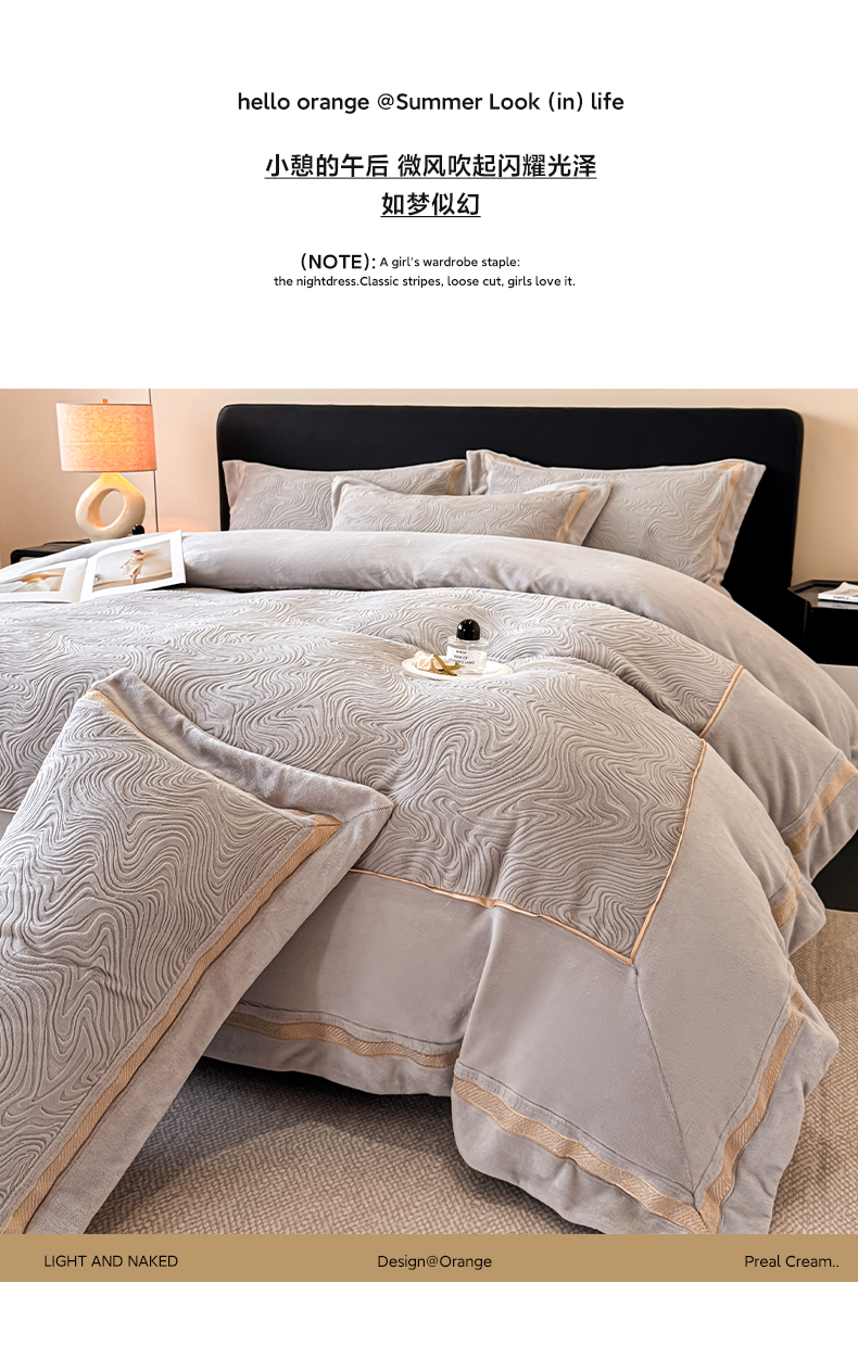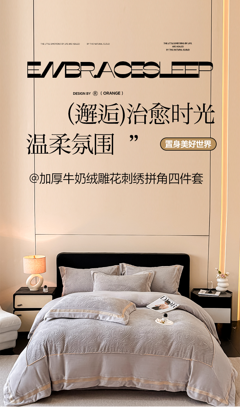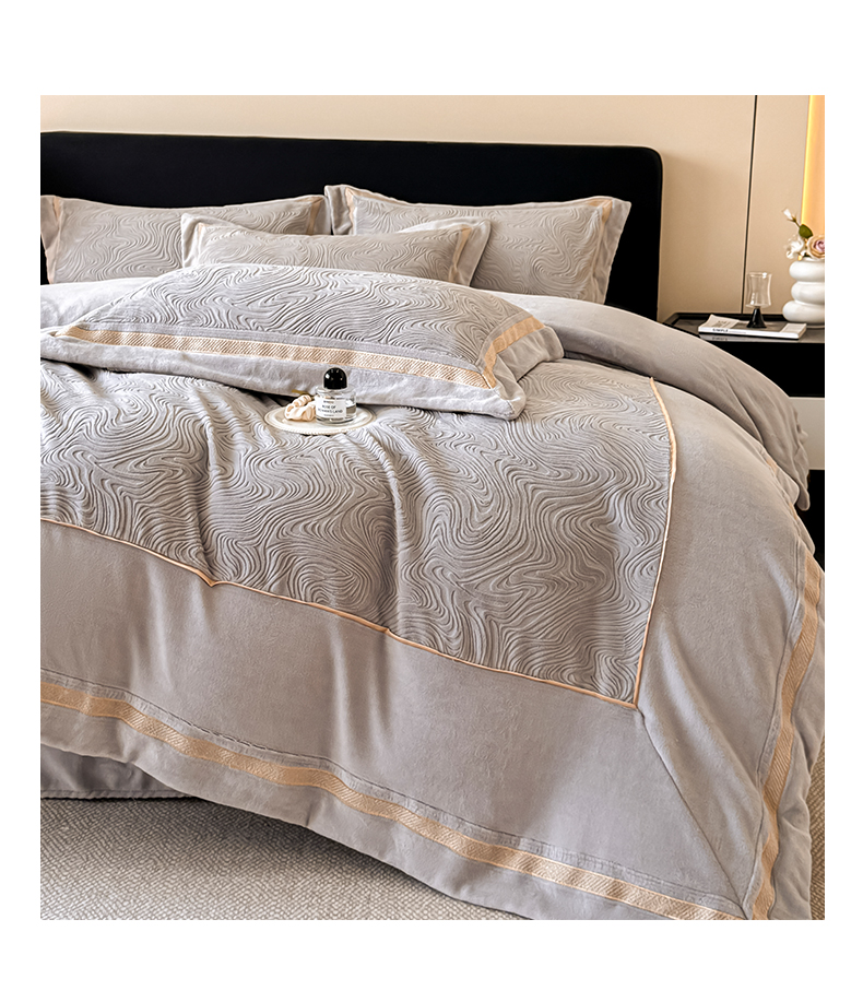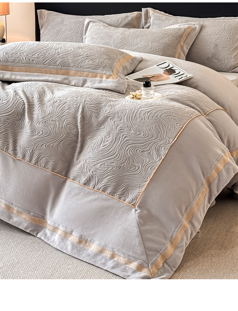 博纳家纺 2025新款加厚牛奶绒雕花刺绣拼角四件套-海韵 控价劵后248(严格按控价来) 高级灰
