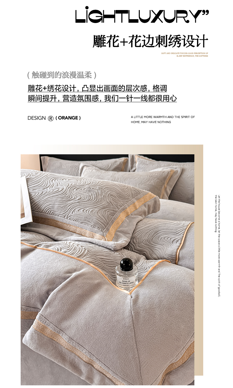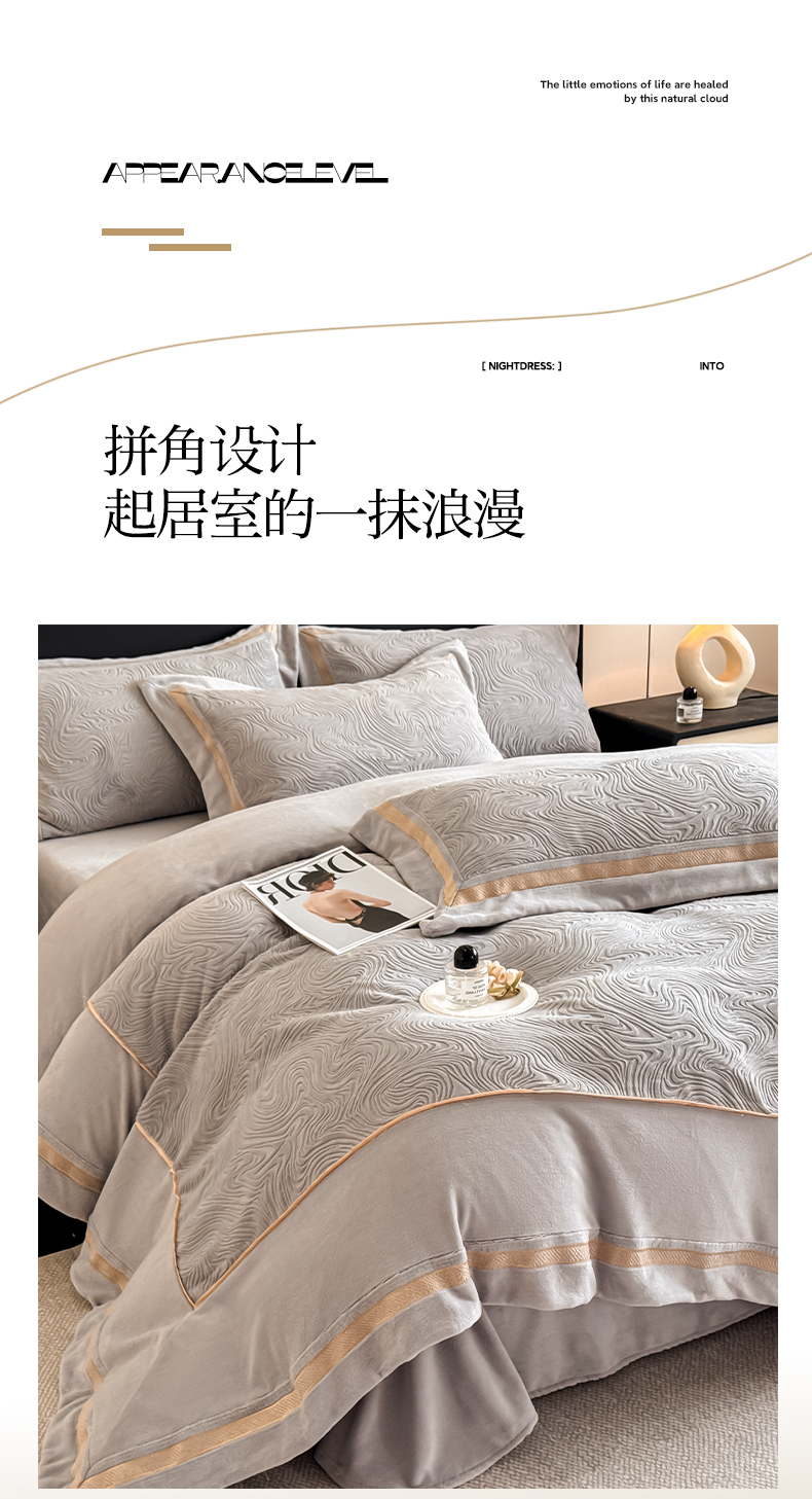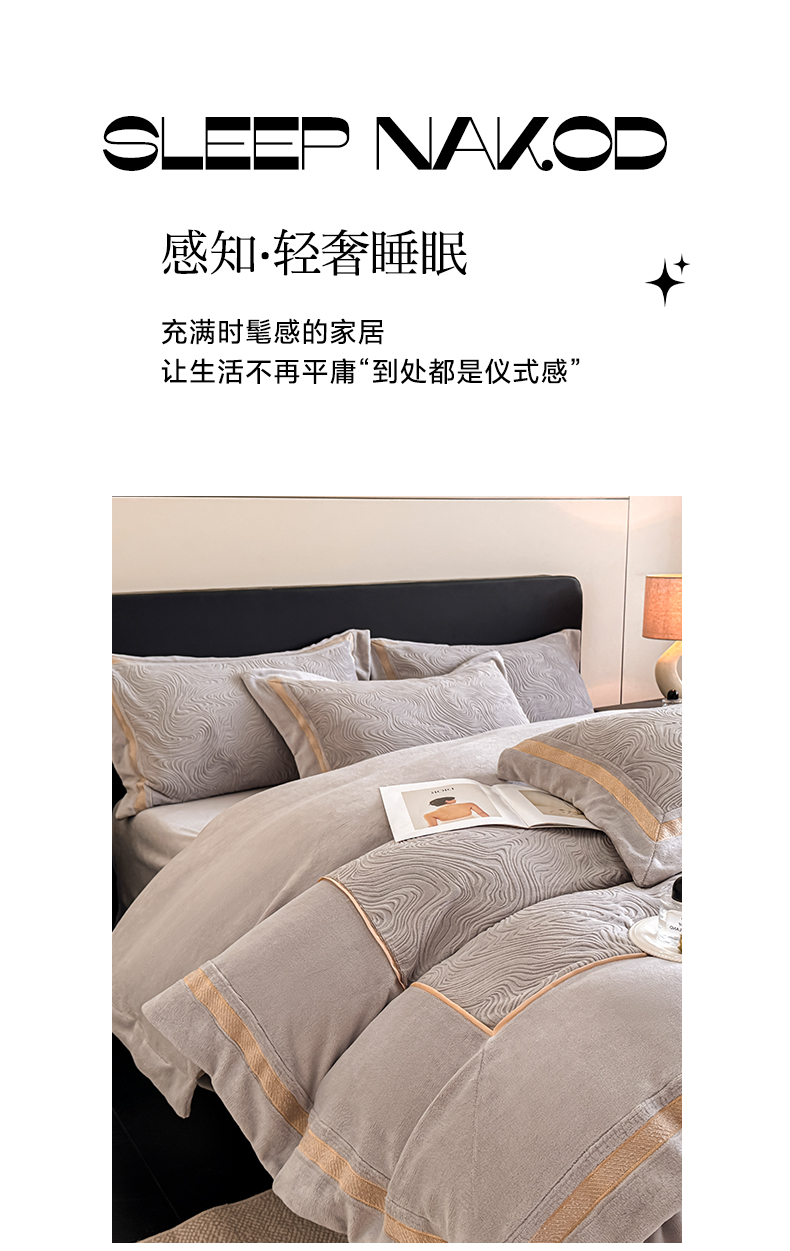 博纳家纺 2025新款加厚牛奶绒雕花刺绣拼角四件套-海韵 控价劵后248(严格按控价来) 高级灰