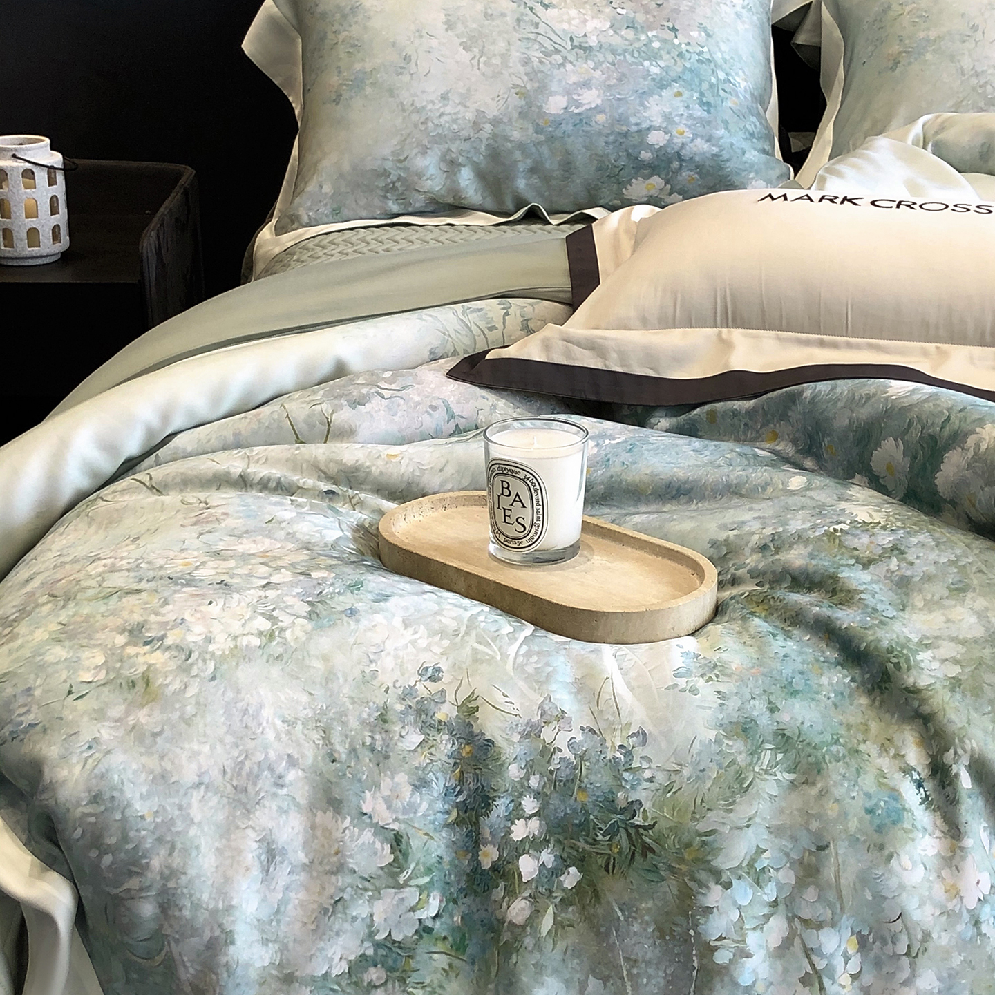 (总)佳汐蓝家纺 2026春夏新款棉麻皱皱双层纱四件套-古风铃岚 控价:卷后不低于398,古风铃岚