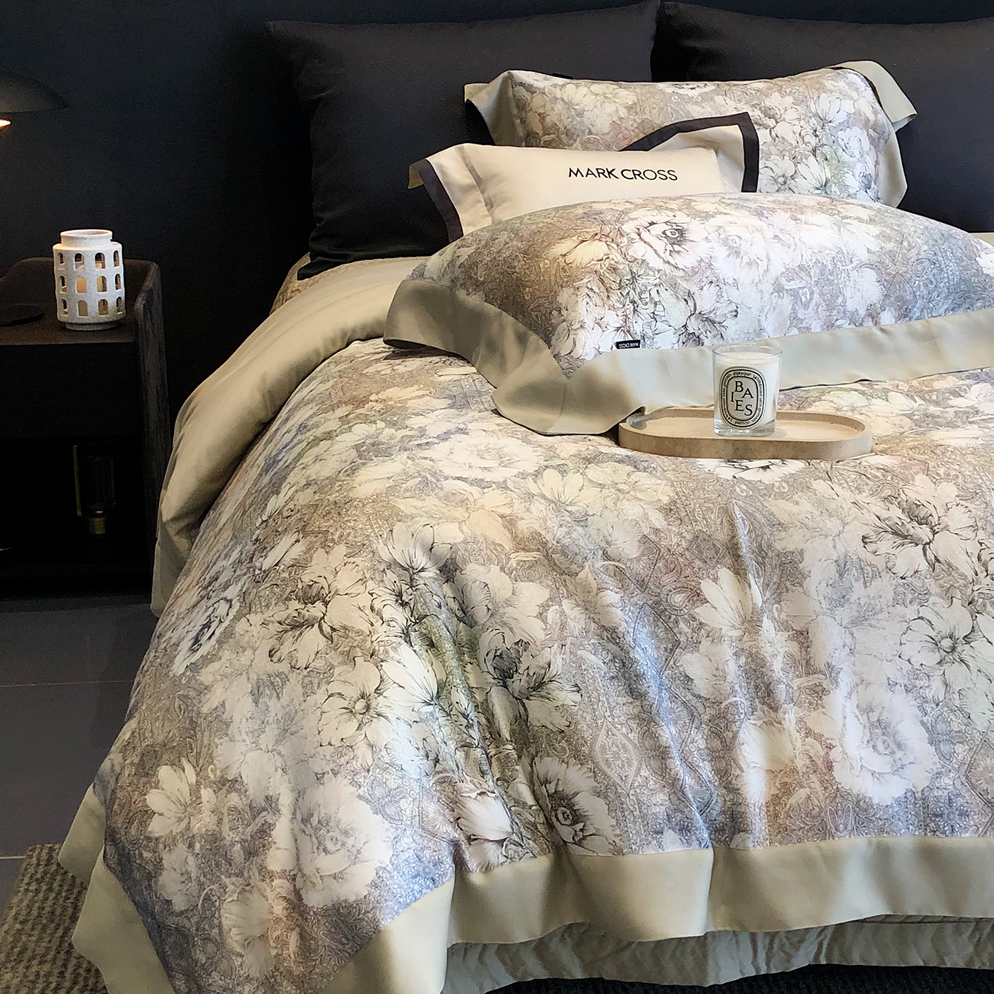 商品名称:佳汐蓝家纺 2025新款奶基米磨毛四件套系列 樱花风铃-银云灰
