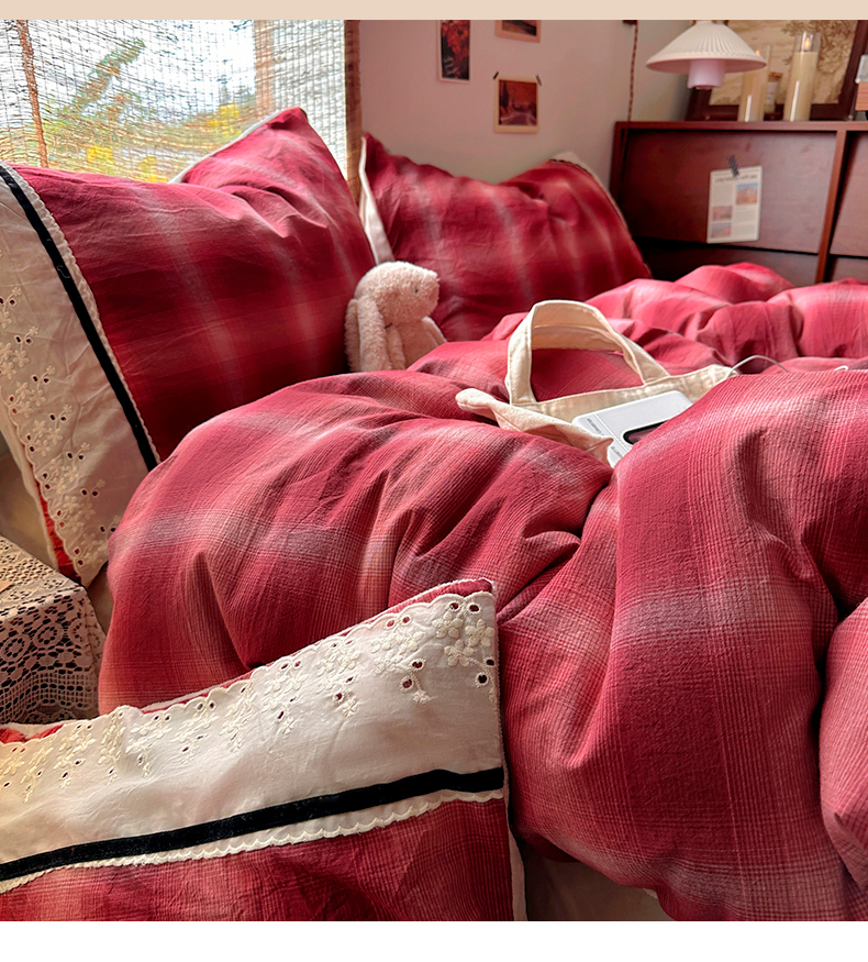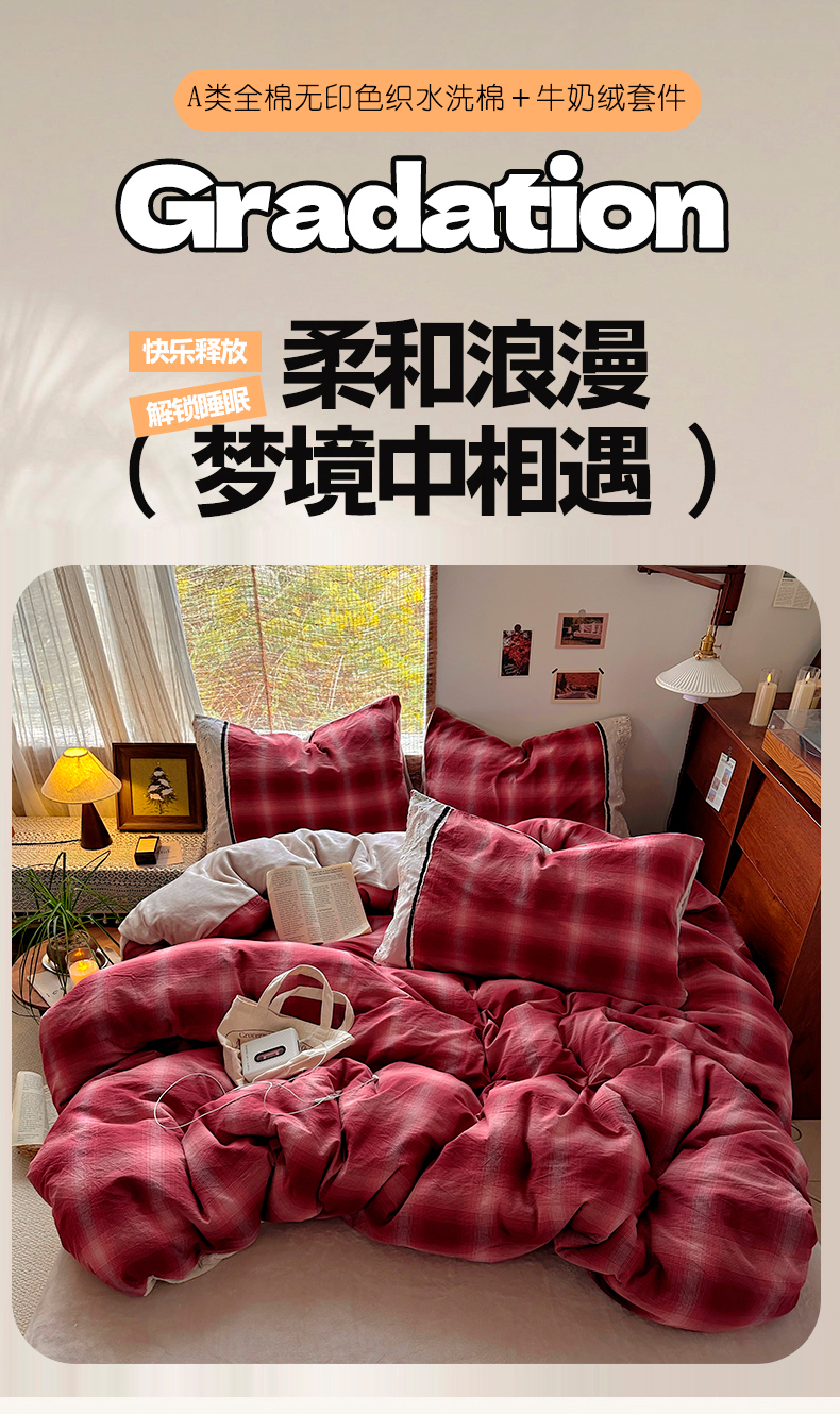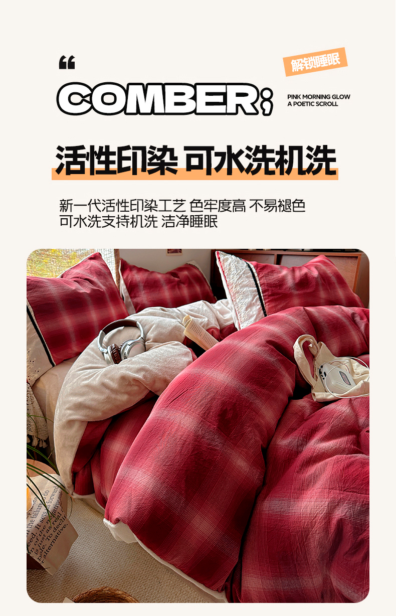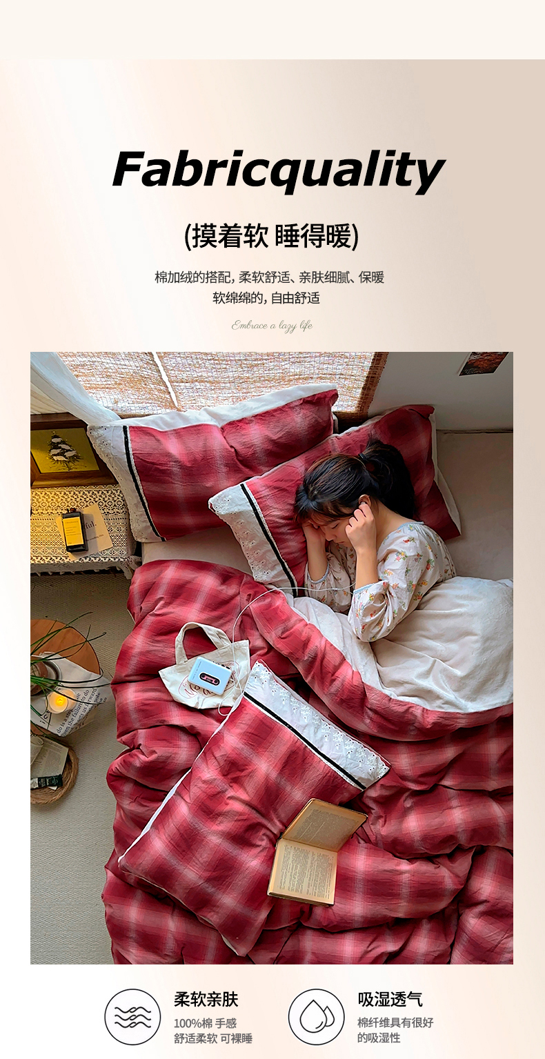 当前位置: 91家纺网 > 商品网购 > 床品套件 > 四件套 > 全棉普通四件套 > 花漾家居 2025新款无印风格条全棉纯棉色织水洗棉拼牛奶绒套件学生宿舍被套三件套四件套 莫奈红