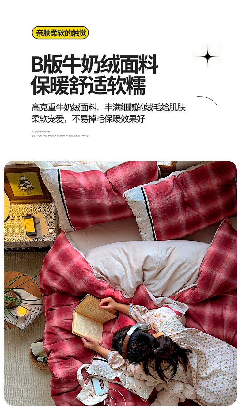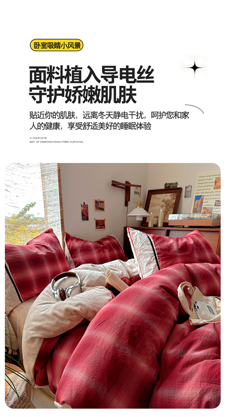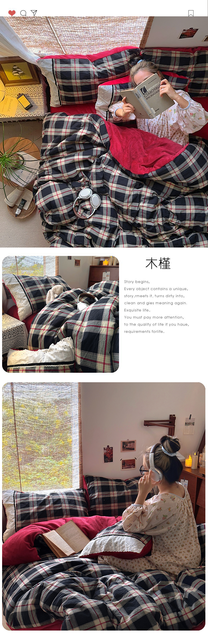 当前位置: 91家纺网 > 商品网购 > 床品套件 > 四件套 > 全棉普通四件套 > 花漾家居 2025新款无印风格条全棉纯棉色织水洗棉拼牛奶绒套件学生宿舍被套三件套四件套 莫奈红
