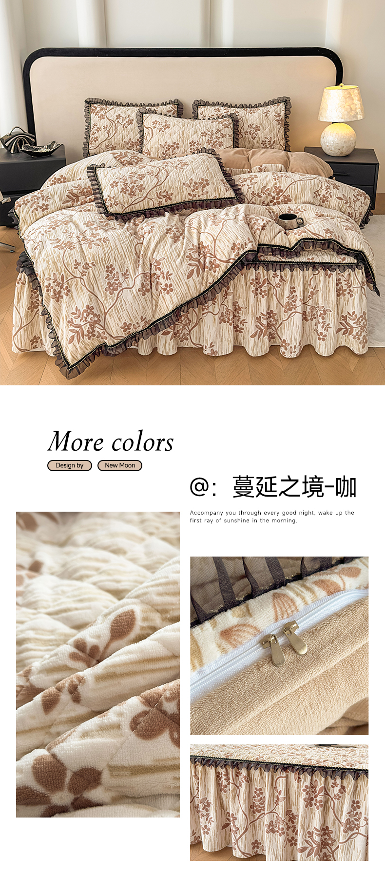 当前位置: 91家纺网 > 商品网购 > 床品套件 > 三件套 > 家之硕家纺 2025新款雕花牛奶绒床裙款三件套 繁枝