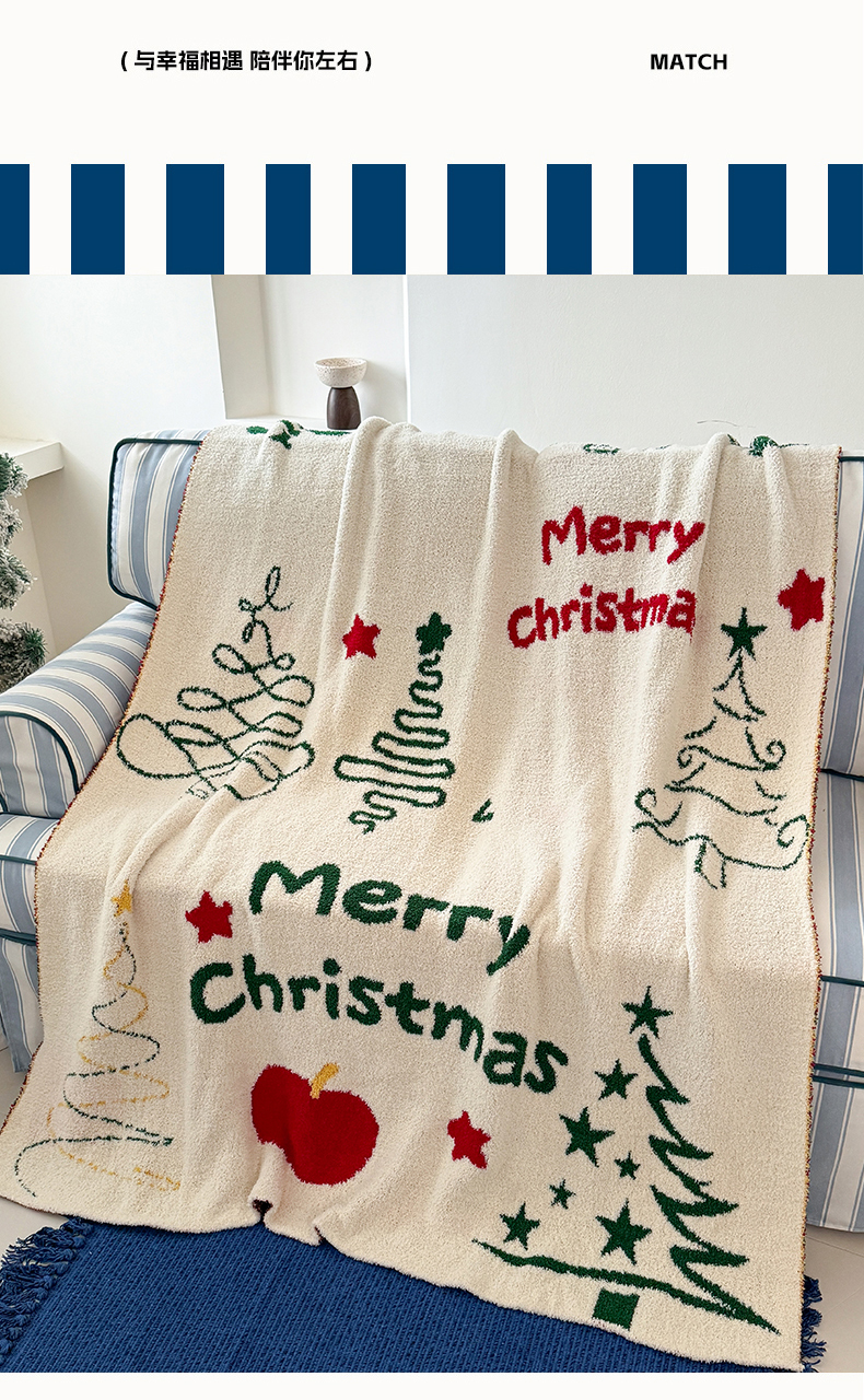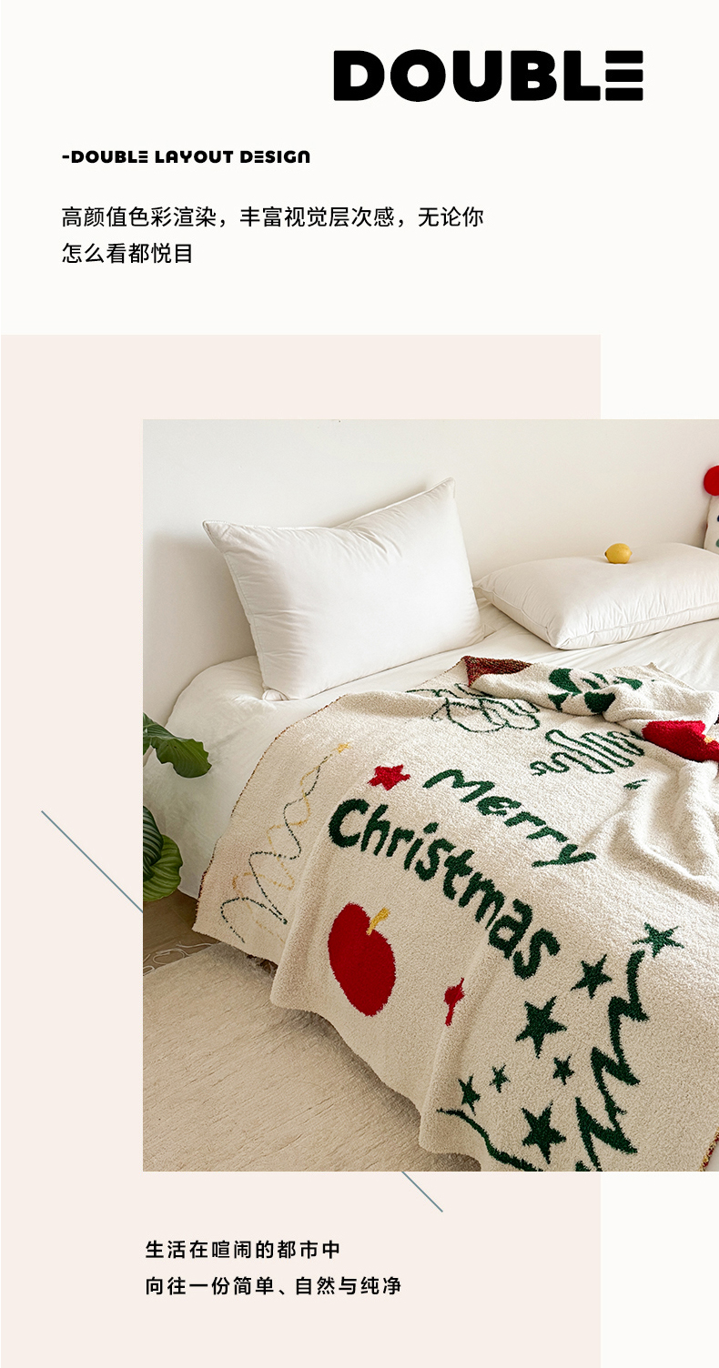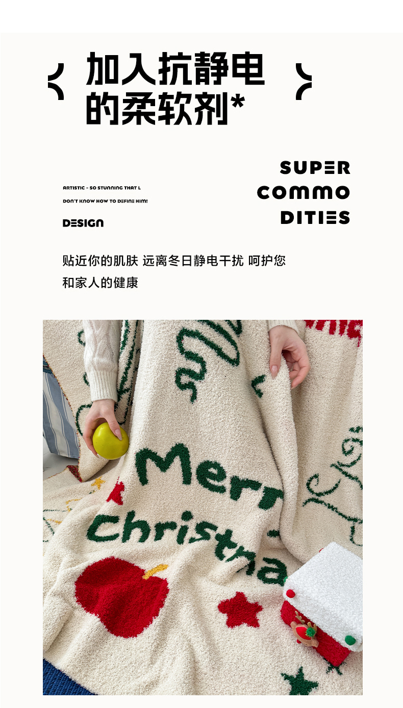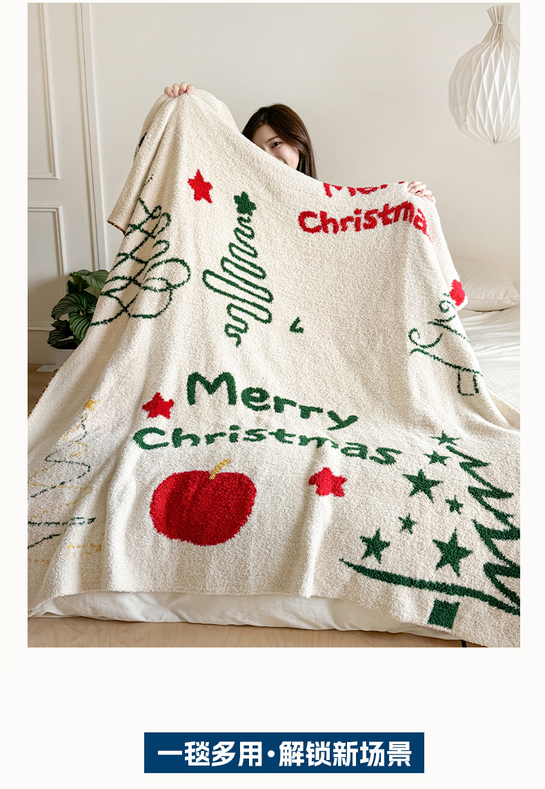 商品名称:丹本家纺 2025新款设计师原创多功能针织半边绒毛毯午休毯盖毯加厚毯子 圣诞快乐