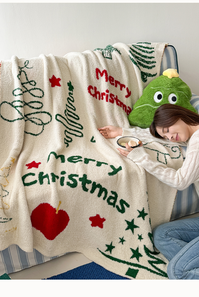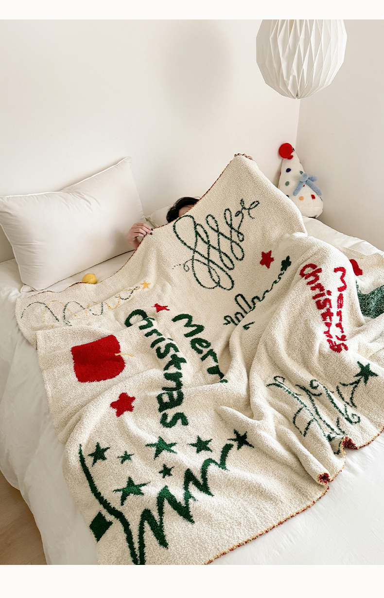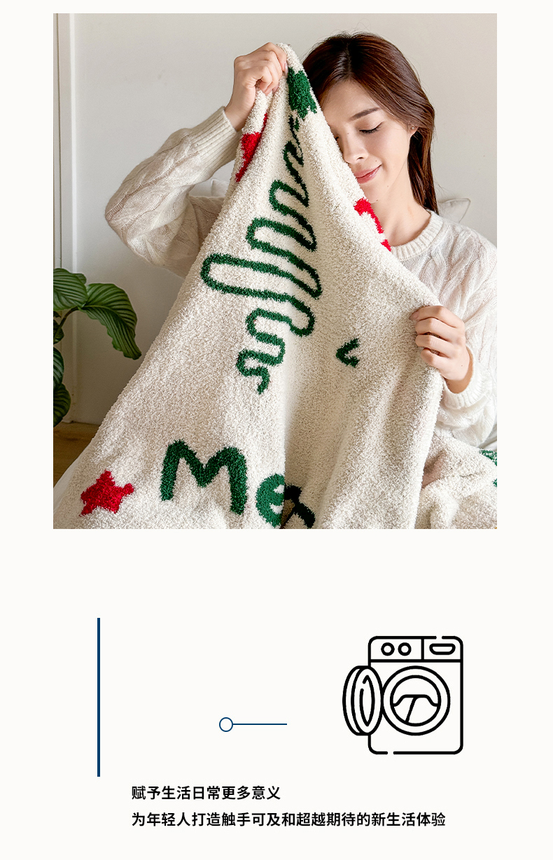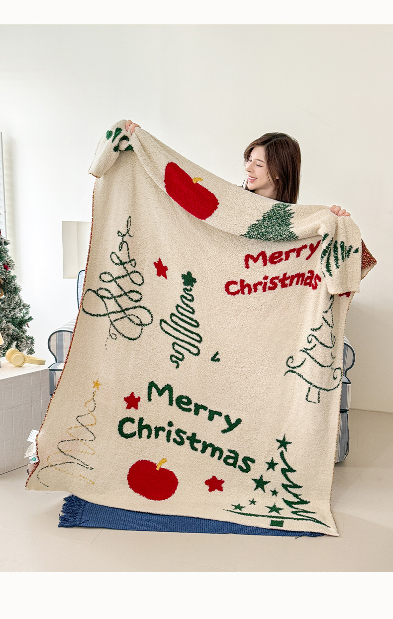 商品名称:丹本家纺 2025新款设计师原创多功能针织半边绒毛毯午休毯盖毯加厚毯子 圣诞快乐