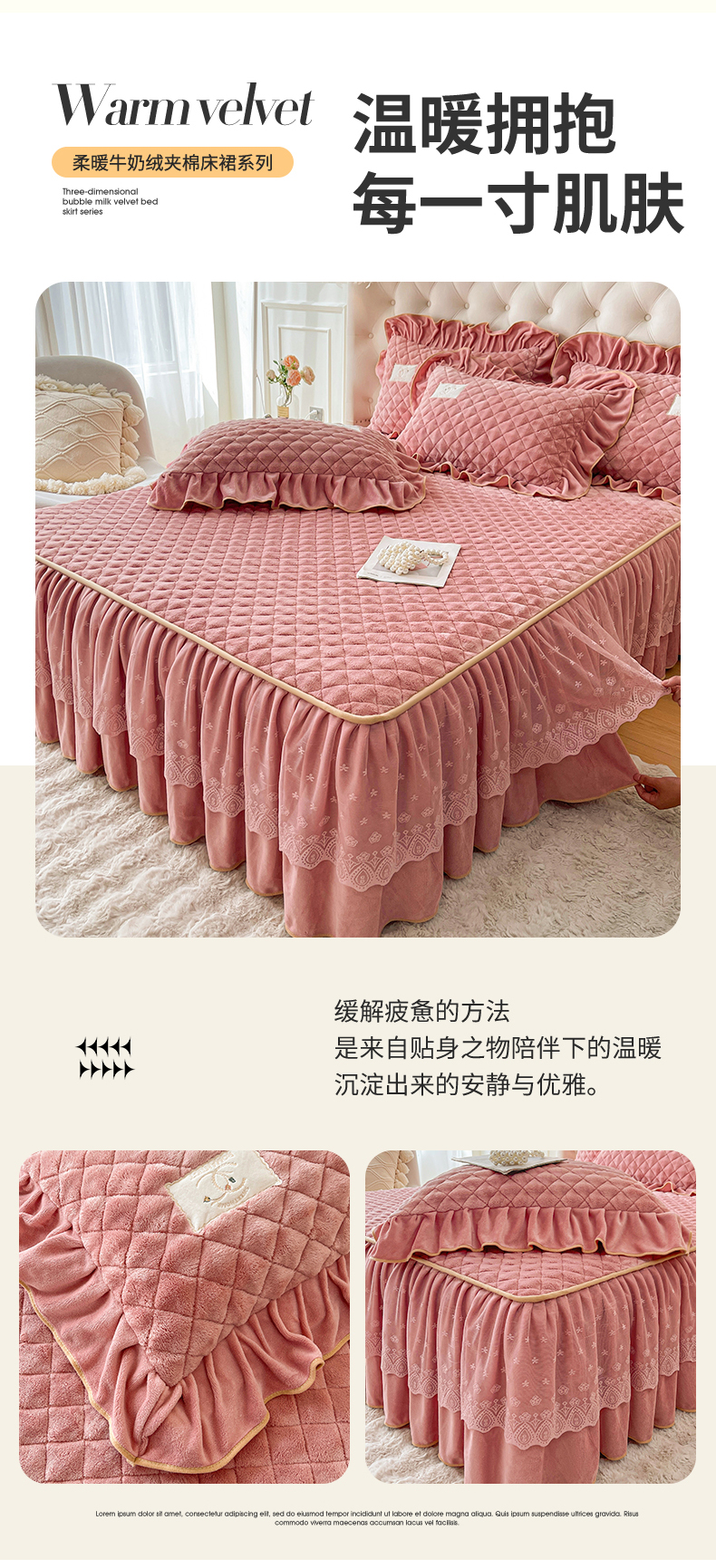 (总)情恒家纺 2025新款立体泡泡牛奶绒夹棉床裙三件套系列-浅语光年