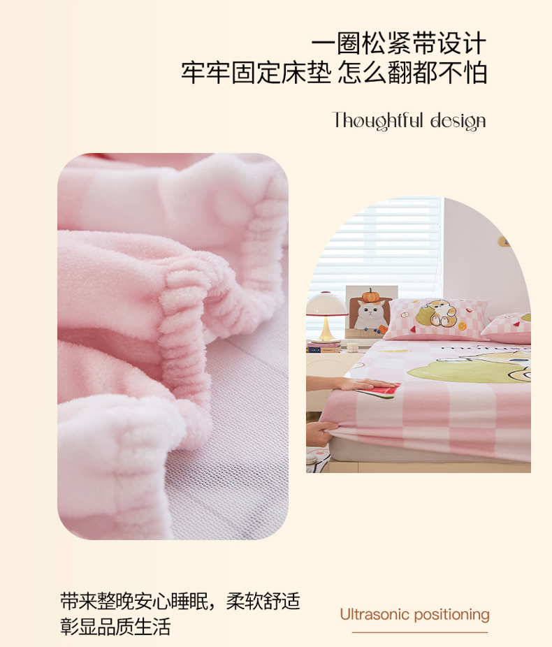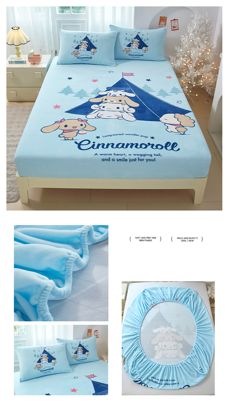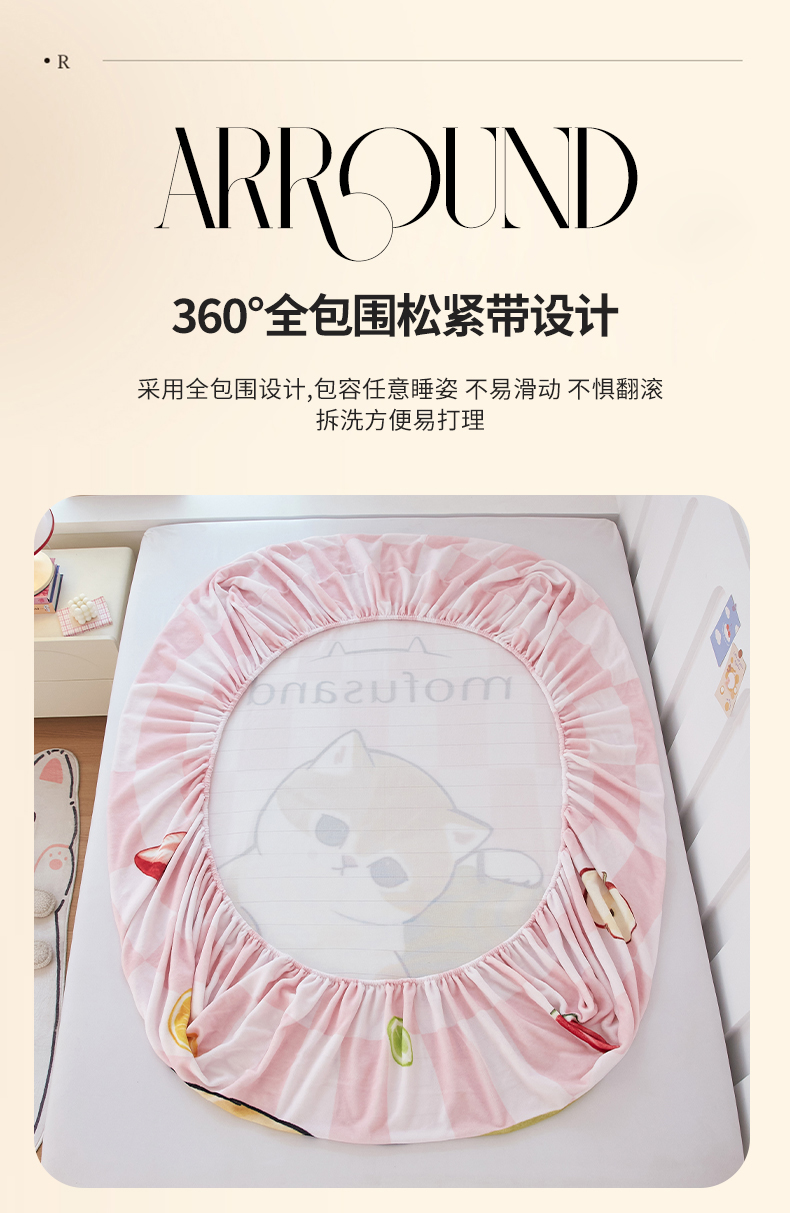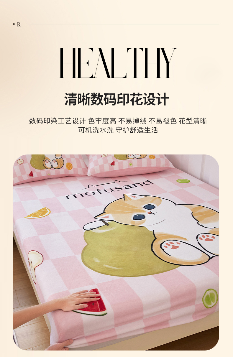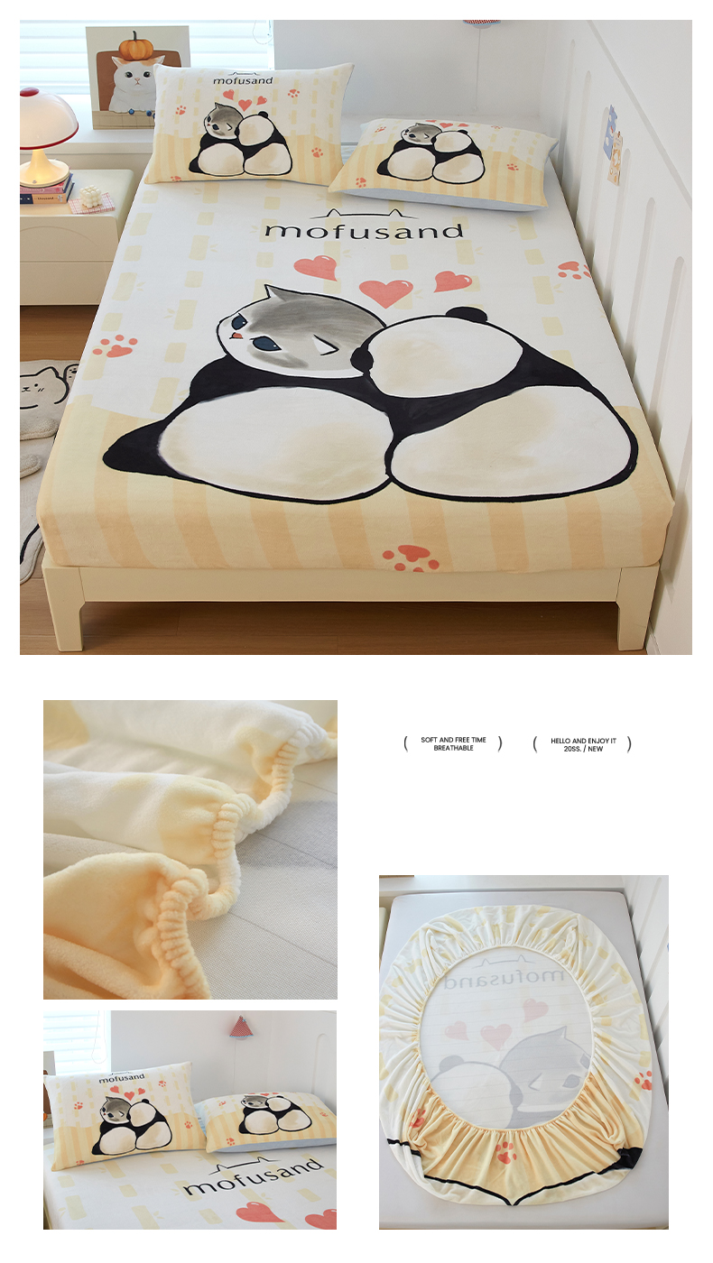 蘭菲家纺 2025新款高克重牛奶绒正版鲨鱼猫系列单品床笠 水果珊迪-猫福