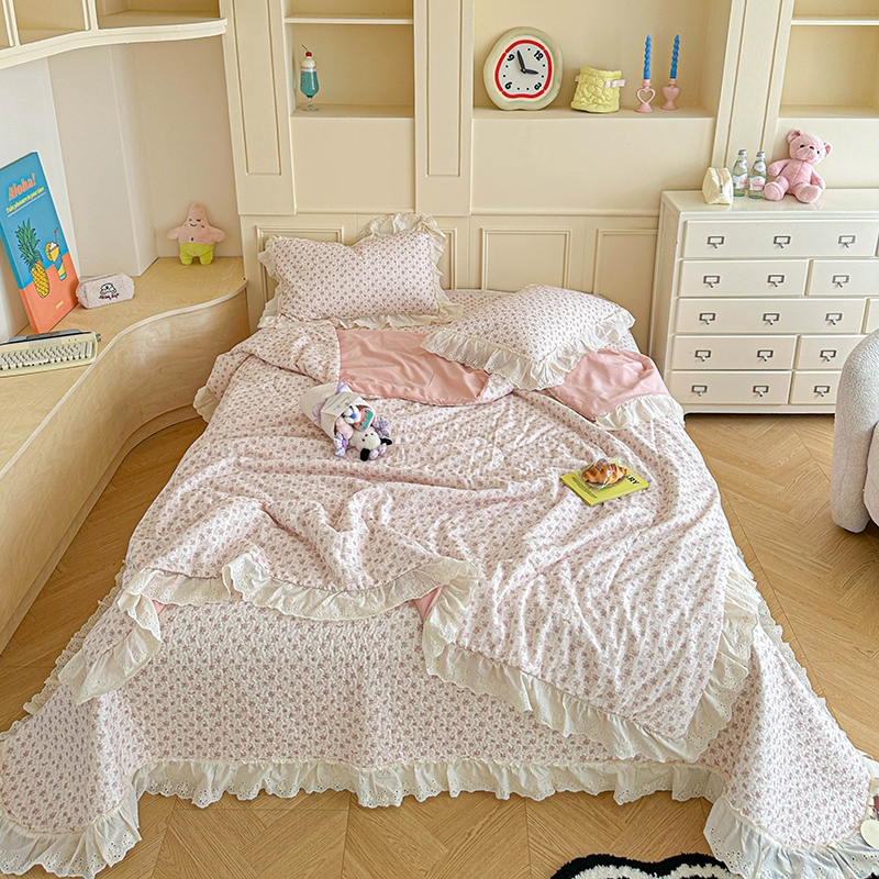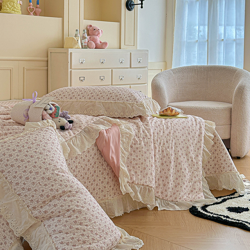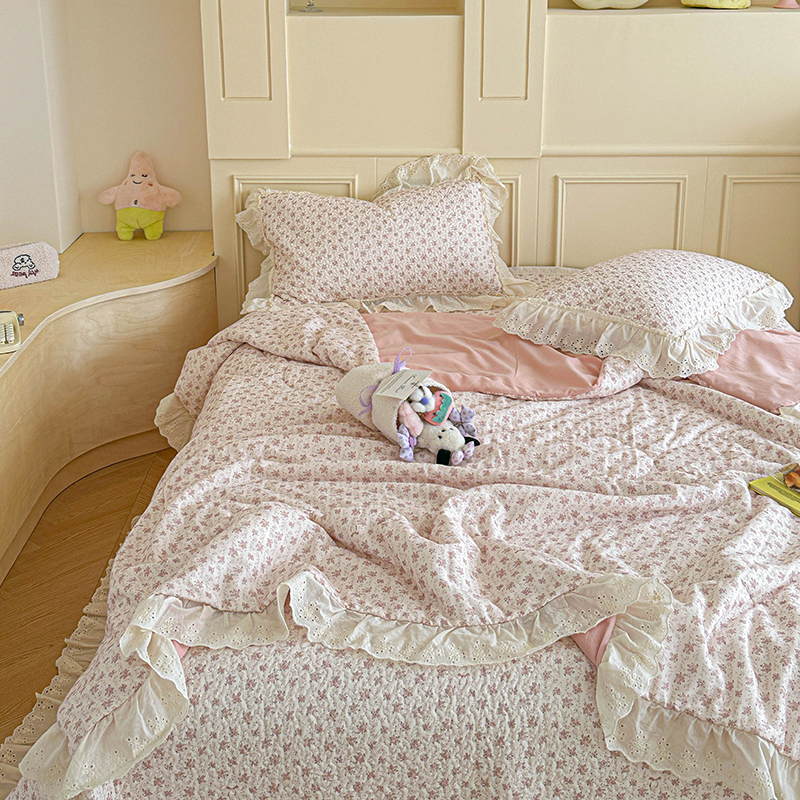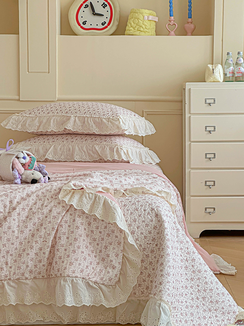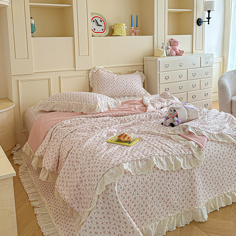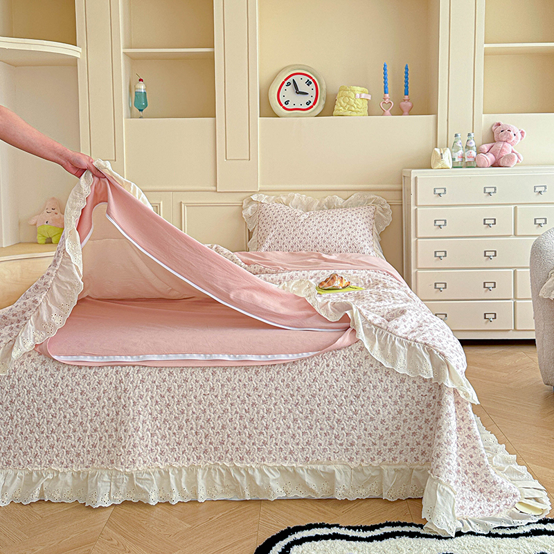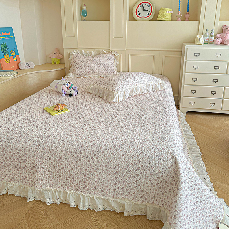 • 91家纺网 家纺一手货源 找家纺 (总)源舜家纺 2026新款全棉双层纱棉花边榻榻米炕盖款(可订制),组合图仅供参考,波点粉,波点灰,波点绿,波点米,波点杏,波点紫