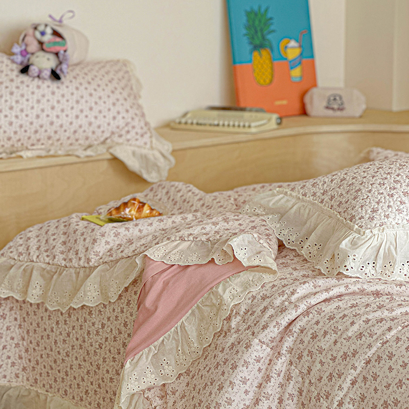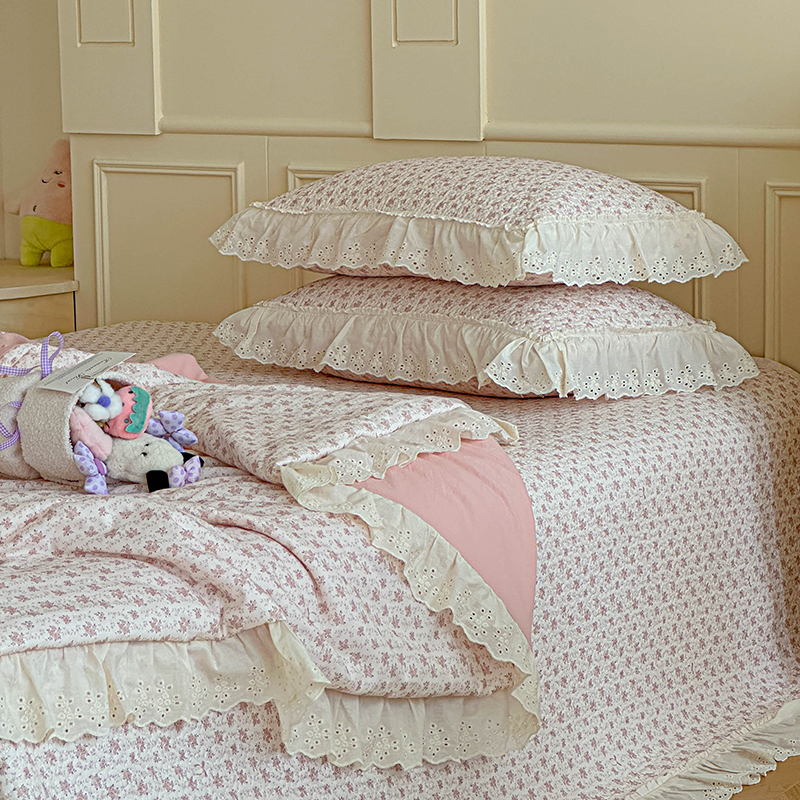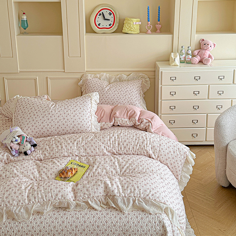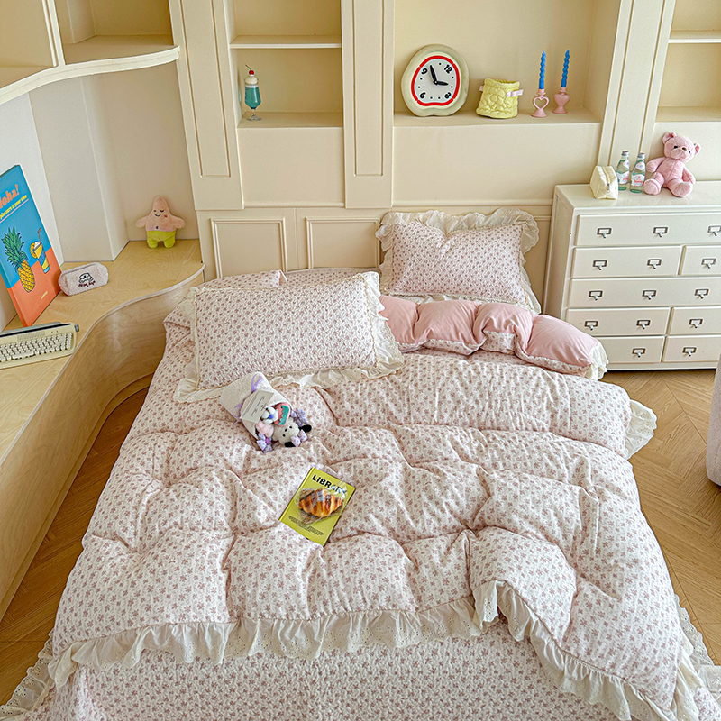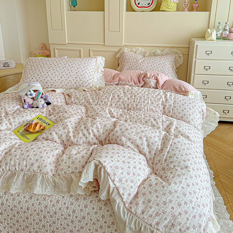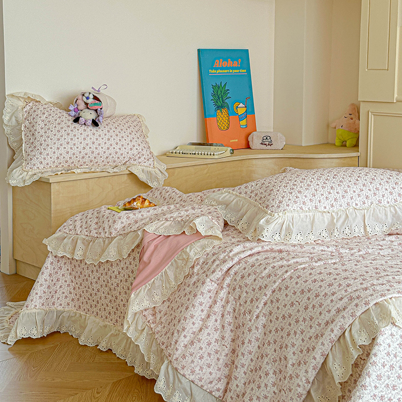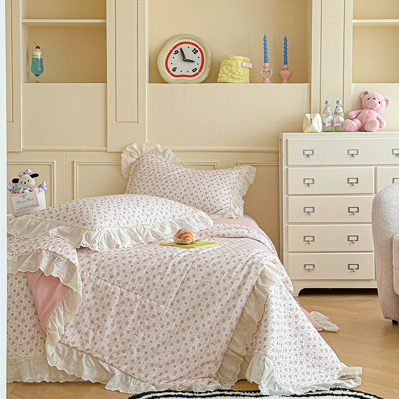 • 91家纺网 家纺一手货源 找家纺 (总)源舜家纺 2026新款全棉双层纱棉花边榻榻米炕盖款(可订制),组合图仅供参考,波点粉,波点灰,波点绿,波点米,波点杏,波点紫