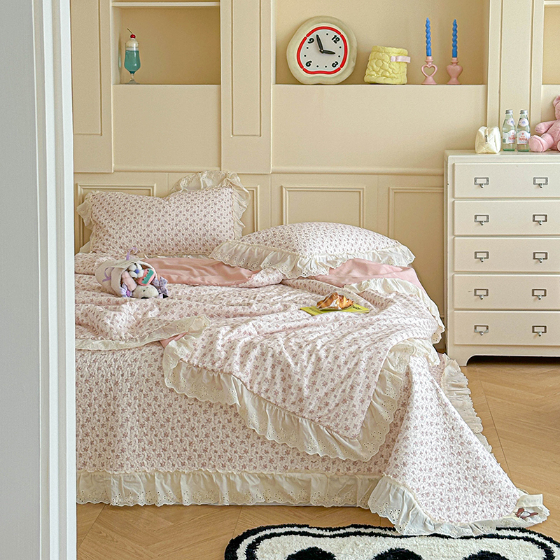 (总)源舜家纺 2026新款全棉斜纹花边床盖多功能被子四件套,沐光美人-灰,动感方块-灰,沐风浅唱-绿,南笙梦-米,甜心花语-紫,文艺风范-粉,小樱桃-米,幸福咪咪-蓝,渲染小花-兰