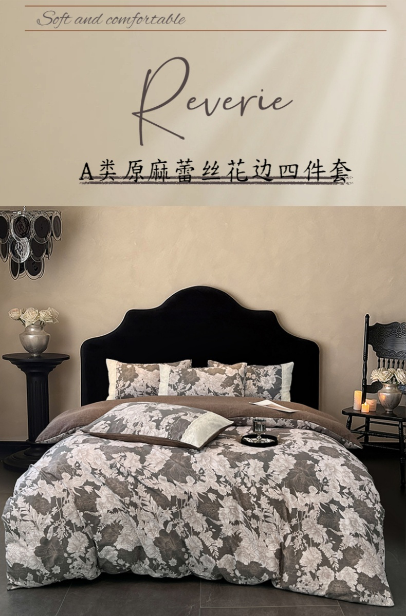 当前位置: 91家纺网 > 商品网购 > 床品套件 > 四件套 > 棉麻四件套 > 梦舒羽 2025新款A类原麻四件套蕾丝花边加厚被套1.5m床单床笠宿舍双人床套件 浮绘花影-白