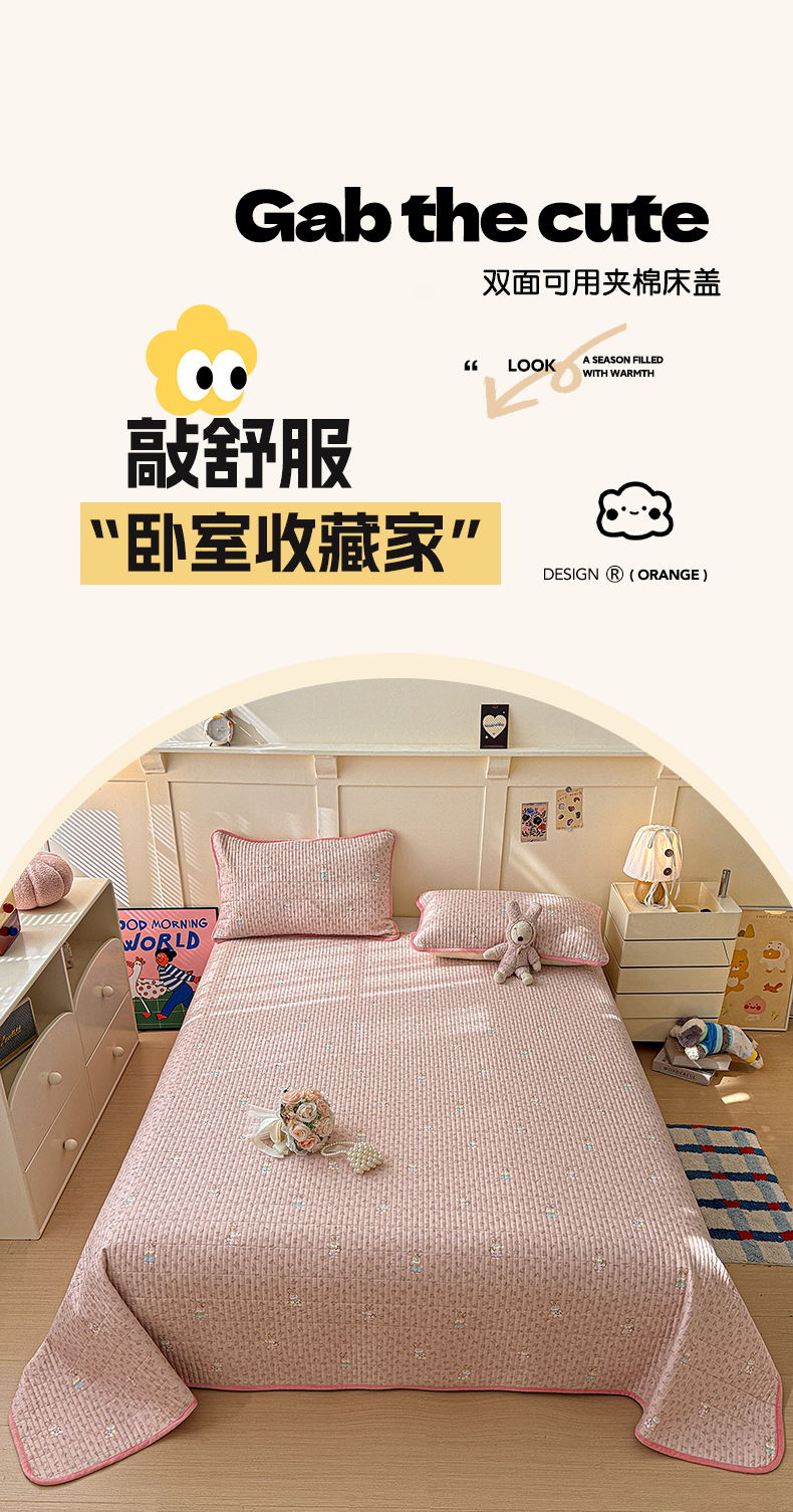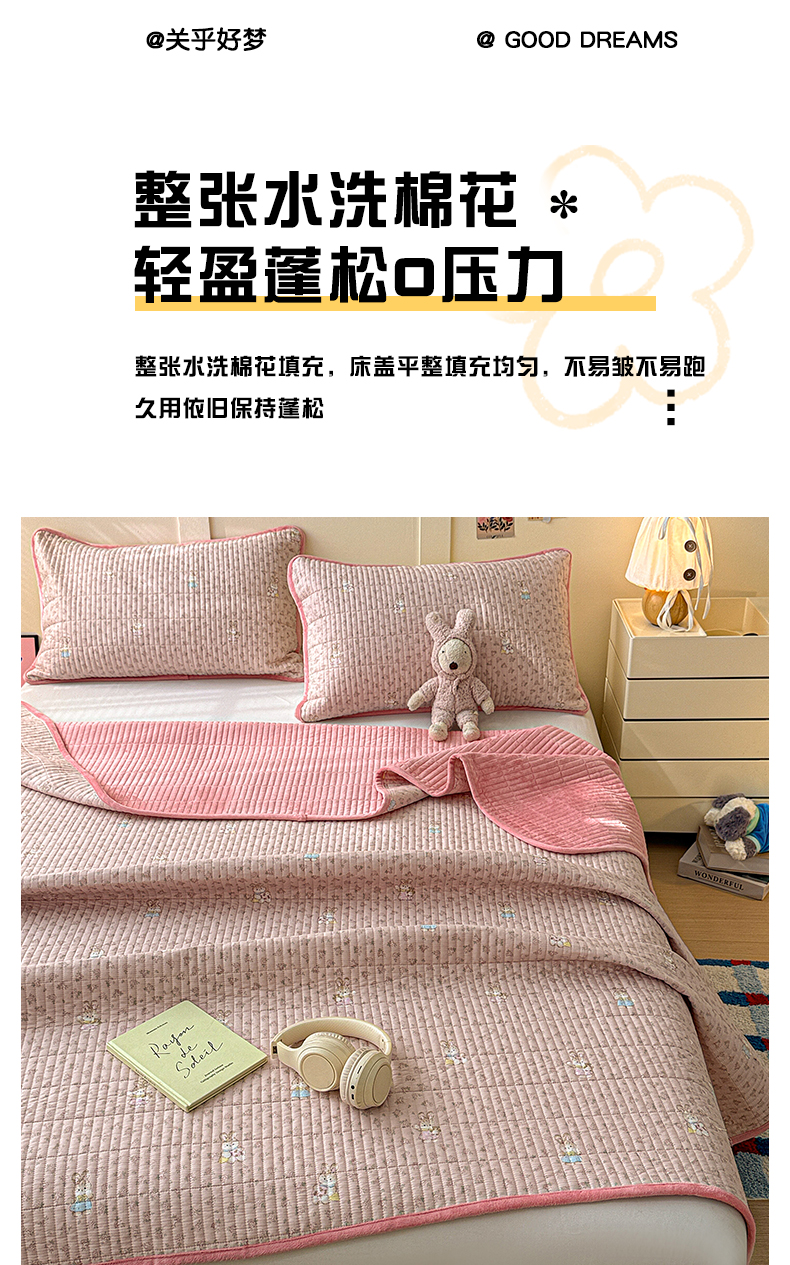 (总)橙子家居 2025新款双面全棉纯棉砂洗夹棉床盖三件套,粉木马,腊肠狗,梦露花园,苹果趣事,甜心南瓜,小熊贝蒂,樱桃派,组合图仅供展示,格子小熊,赫本,莫娇-黄,沁花-绿,薇恋时光,雾里花-粉,雅清