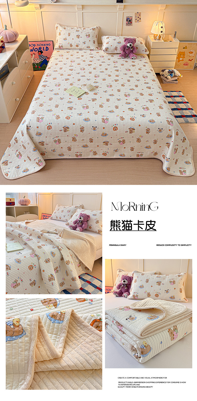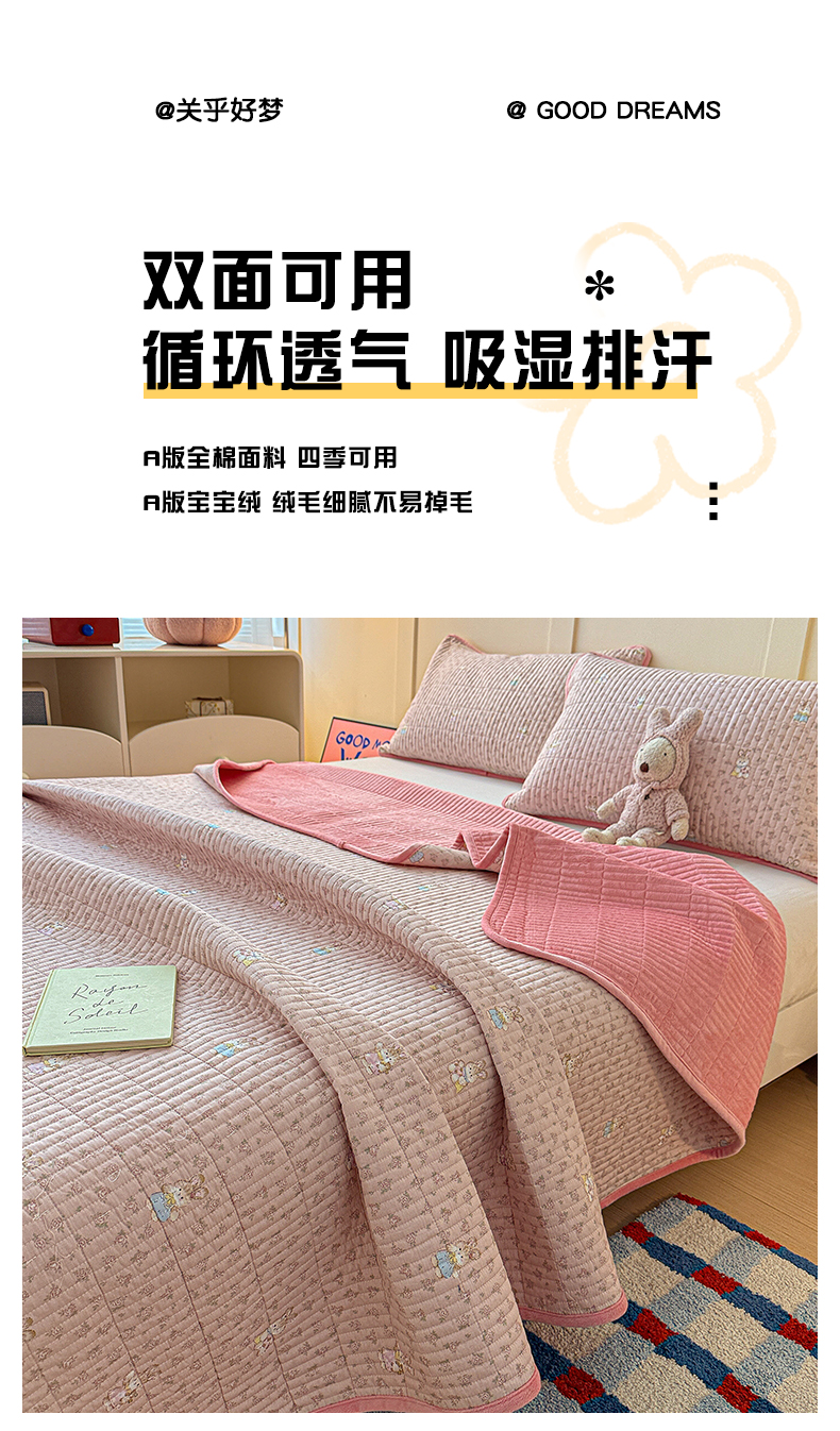 (总)橙子家居 2025新款棉加绒床盖床盖单件床盖单品床盖三件套夹层水洗棉花跑量款现货,组合图仅供展示不可下单,花边兔,花间色,见春山,萝莉兔,洛丽丝,千代兰,若兮花,新新一家,幸运熊,熊猫卡皮,云棠