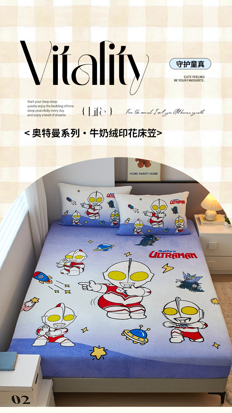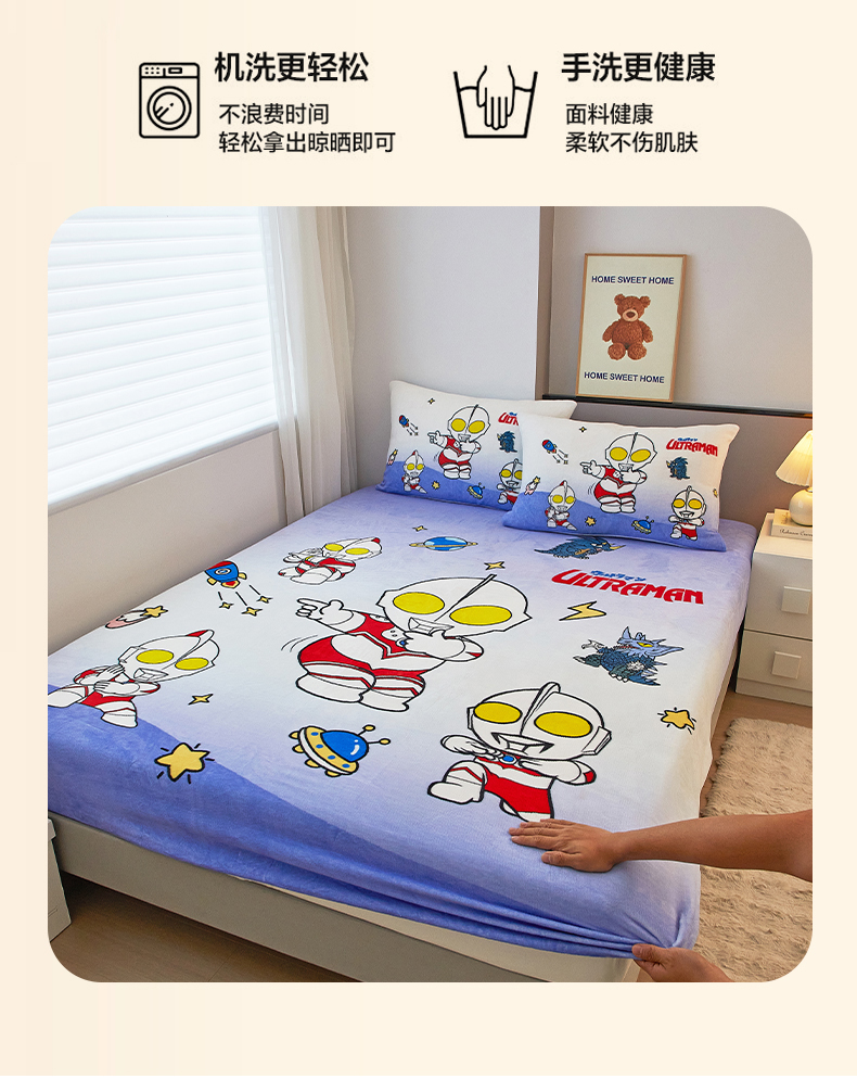 蘭菲家纺 2025新款牛奶绒奥特曼系列单品床笠 抱团