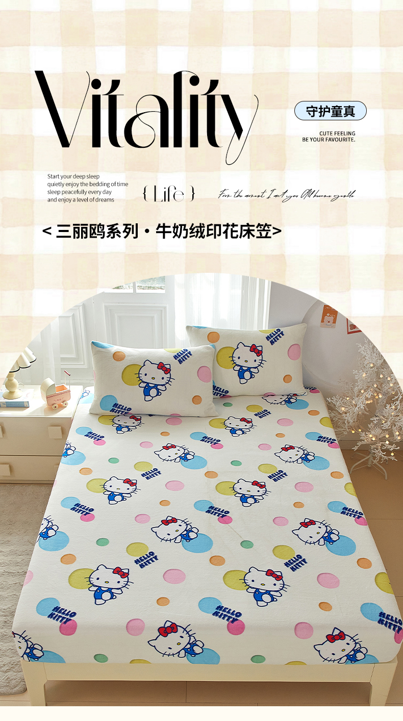商品名称:蘭菲家纺 2025新款三丽欧牛奶绒套件系列单品床笠 波点KT