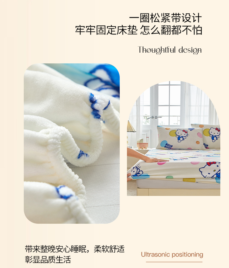 蘭菲家纺 2025新款三丽欧牛奶绒套件系列单品床笠 波点KT