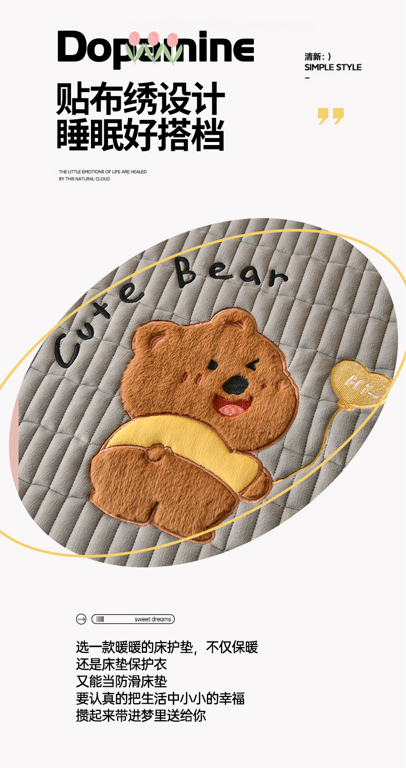 当前位置: 91家纺网 > 商品网购 > 床垫/床褥 > 普通床垫 > 悠米悠家 2025新款牛奶绒夹棉加厚床褥-小狗 小熊系列 小熊-灰色