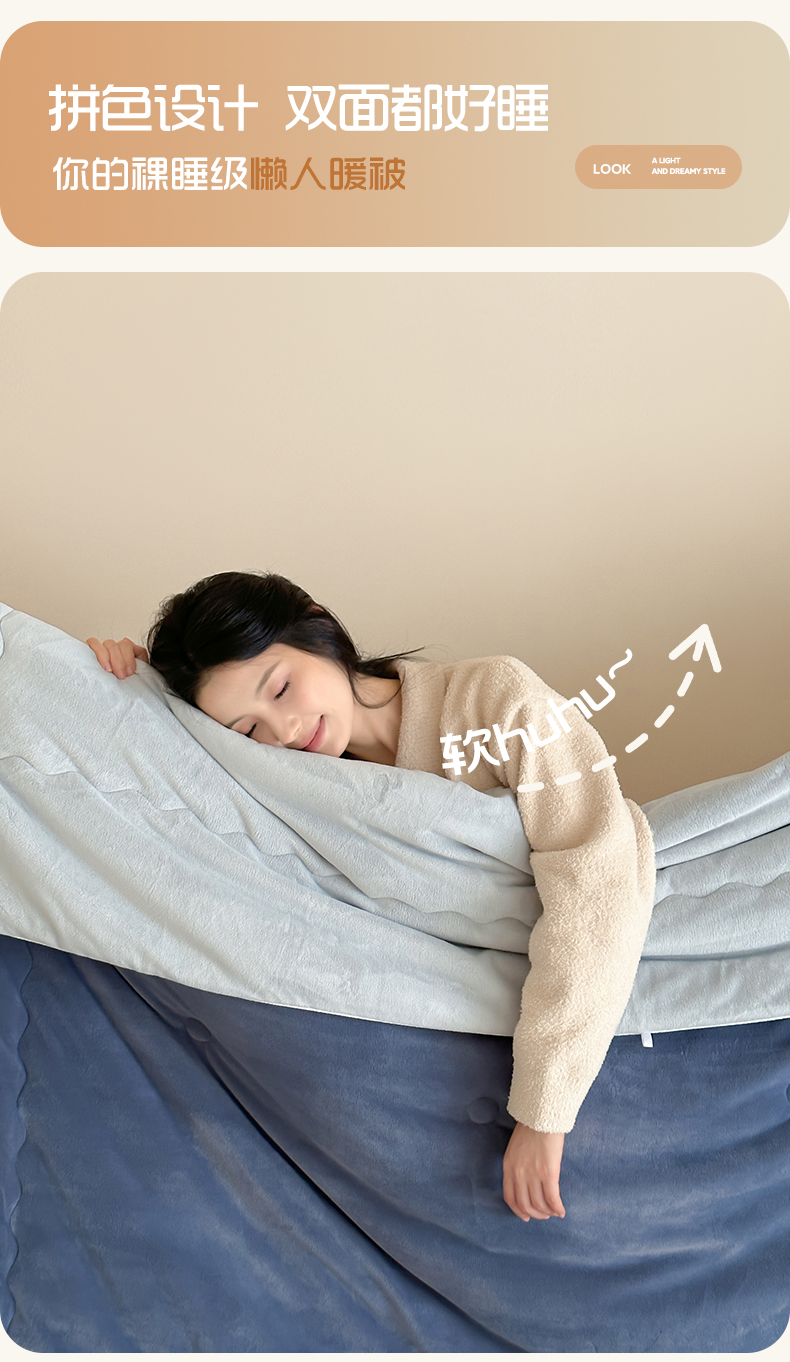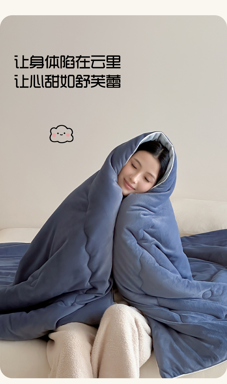 商品名称:三味舒屋 2025新款舒芙蕾双面云丝绒懒人被(所有券叠加后不低于198/248元) 被子被芯 风暴蓝灰