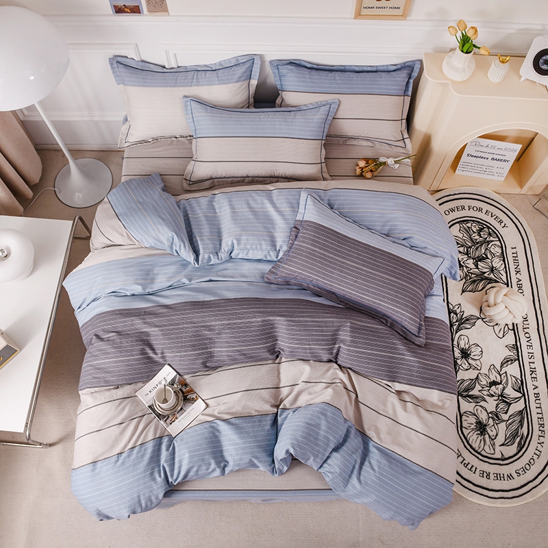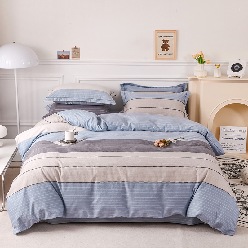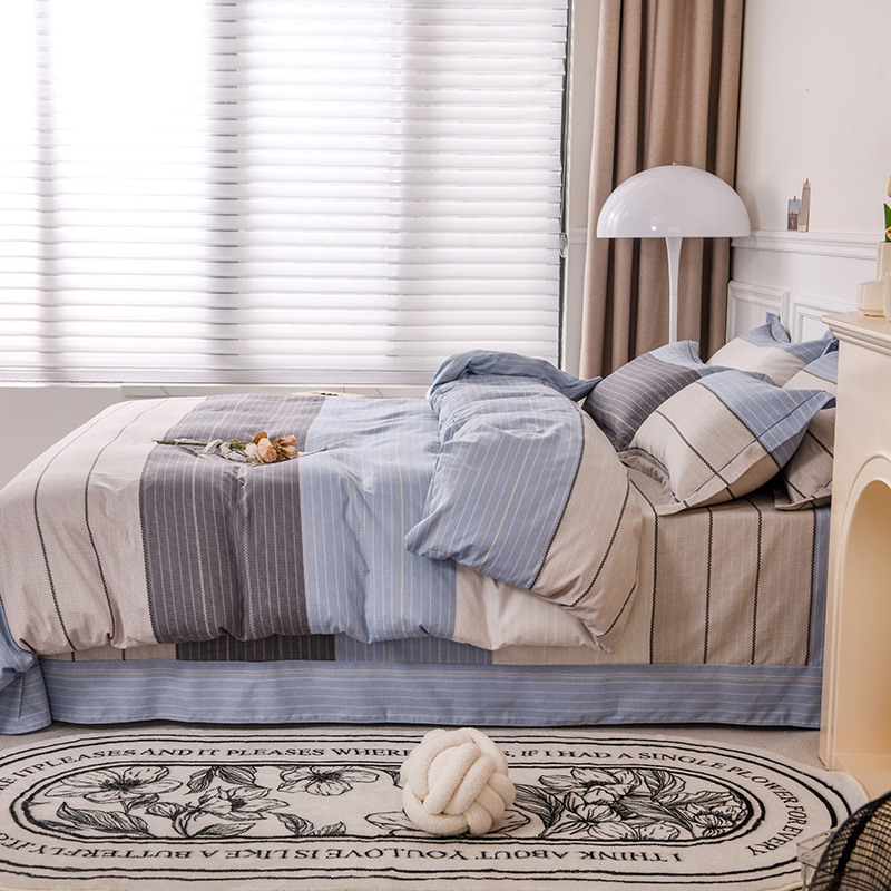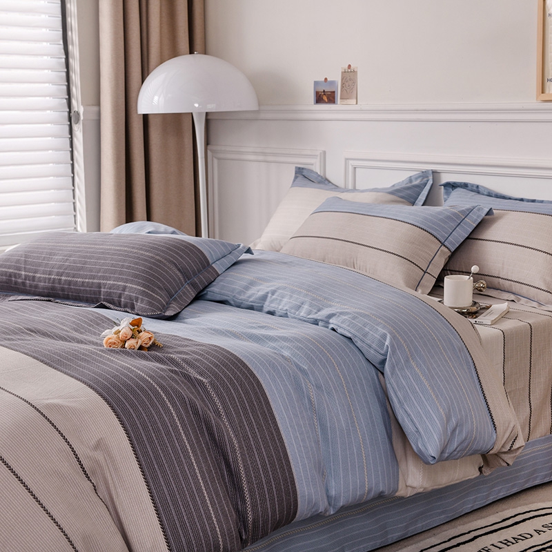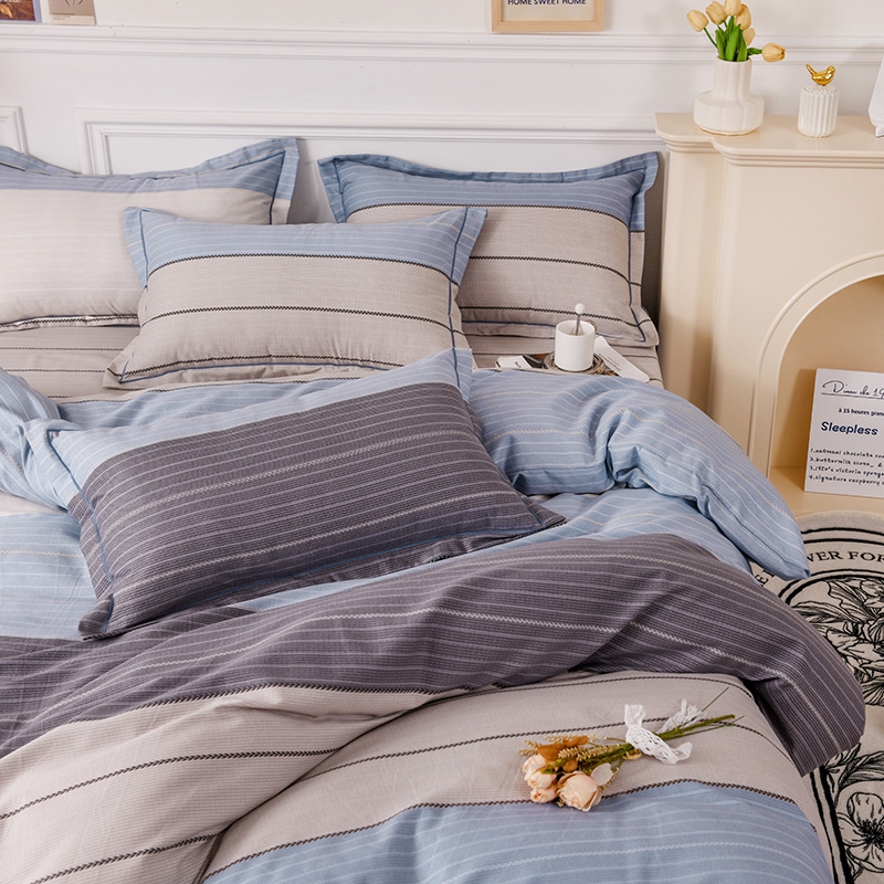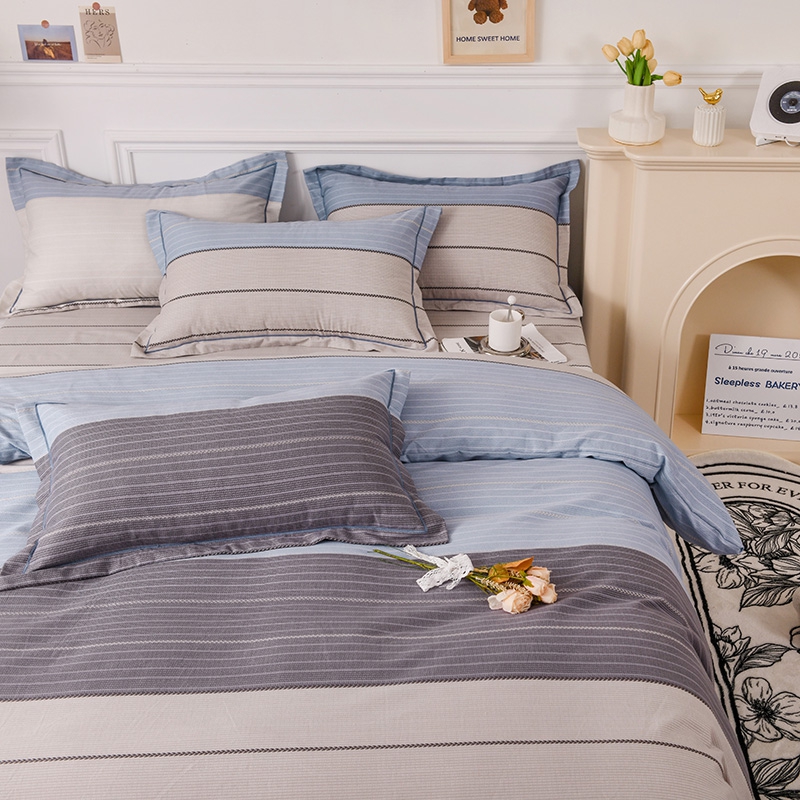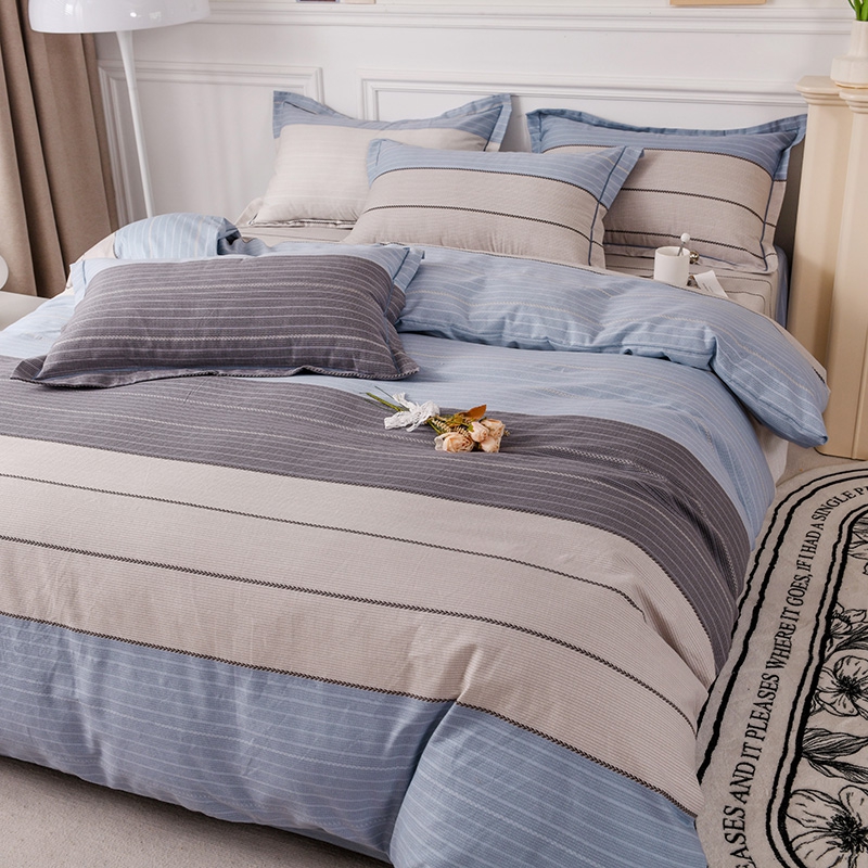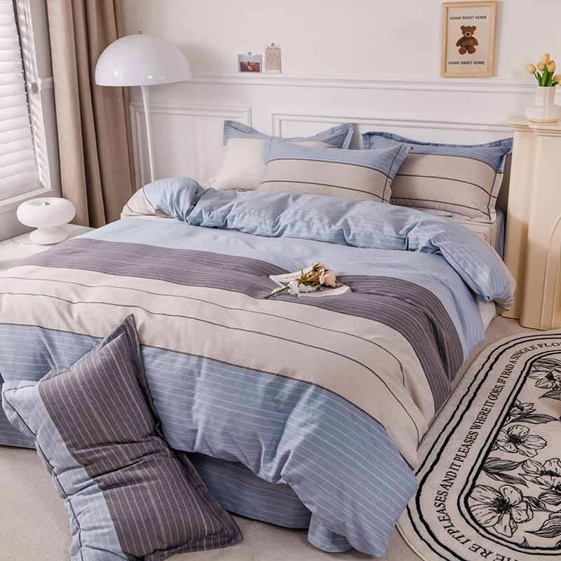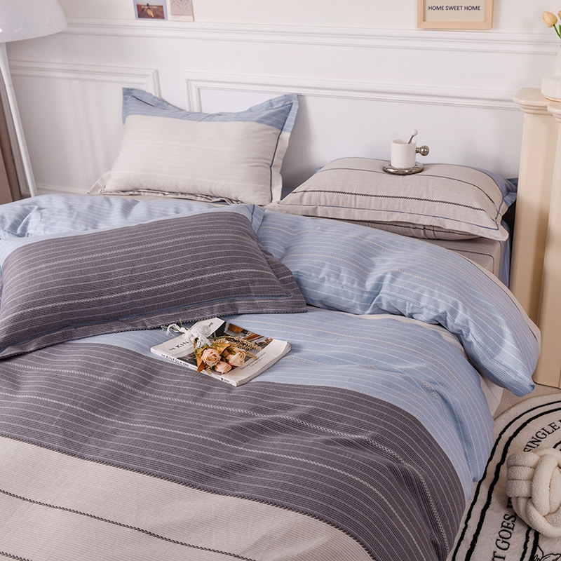 木易家居 2025新款全棉色织水洗棉四件套海伦-蓝,海伦-蓝