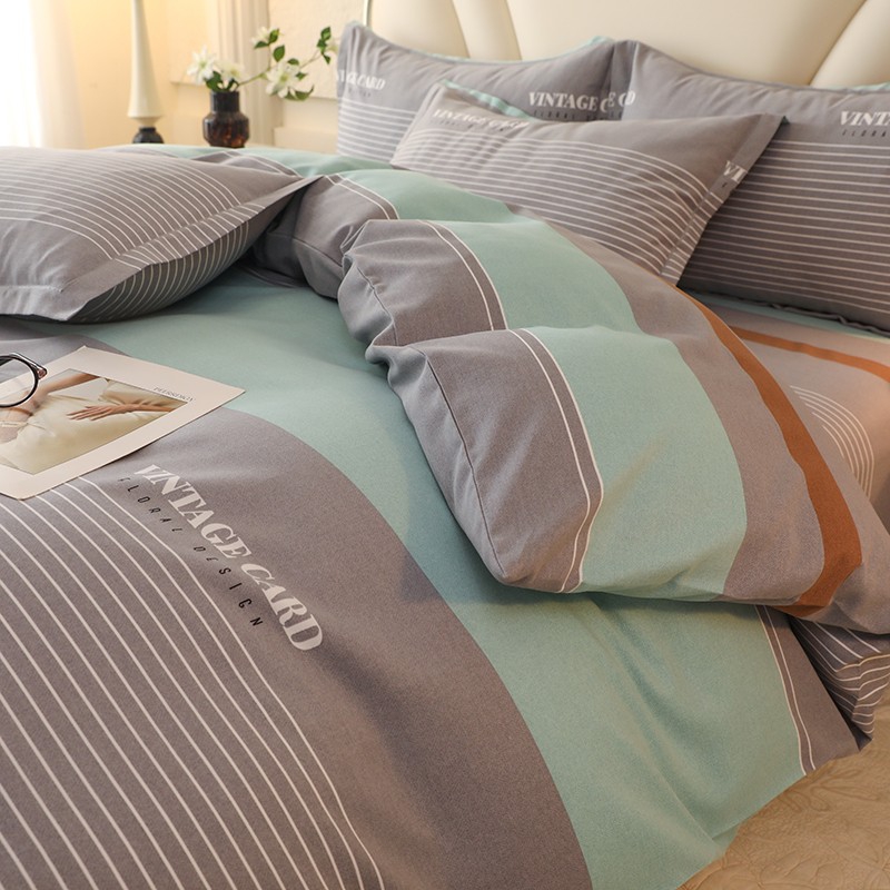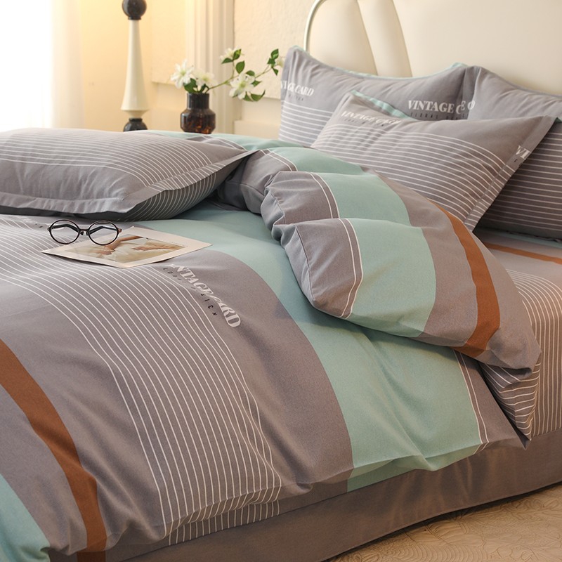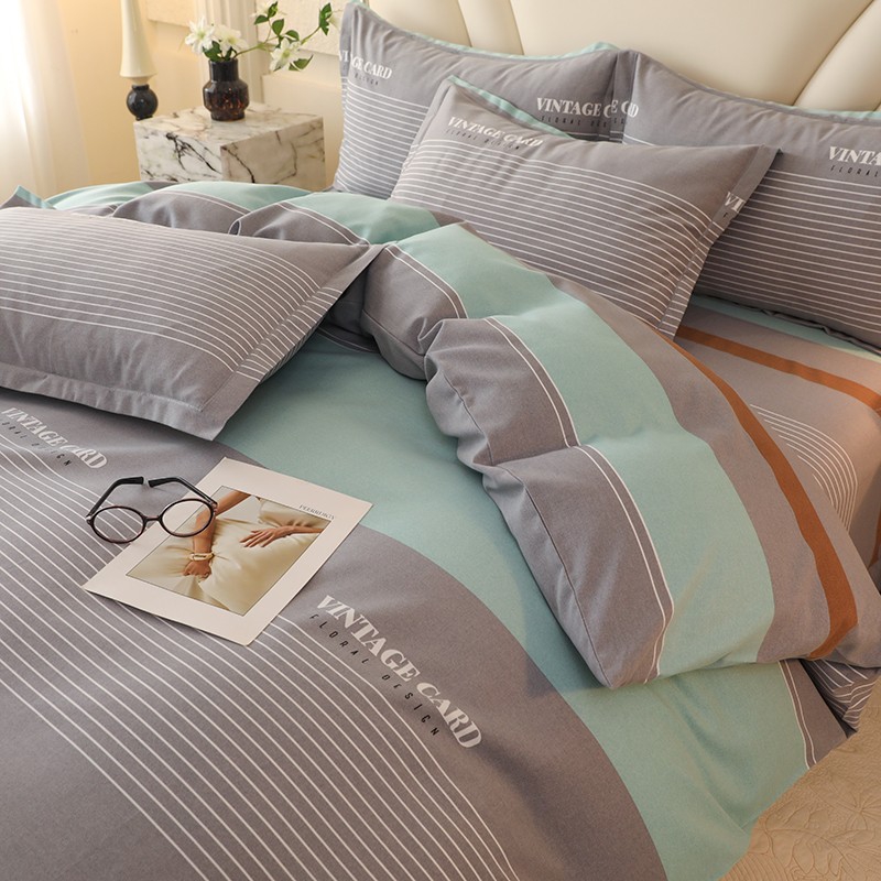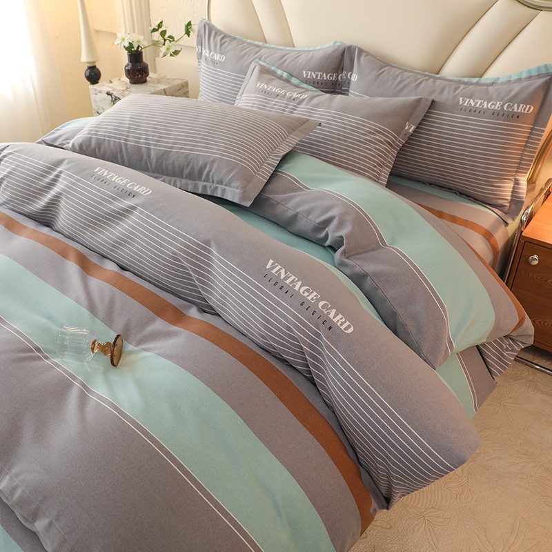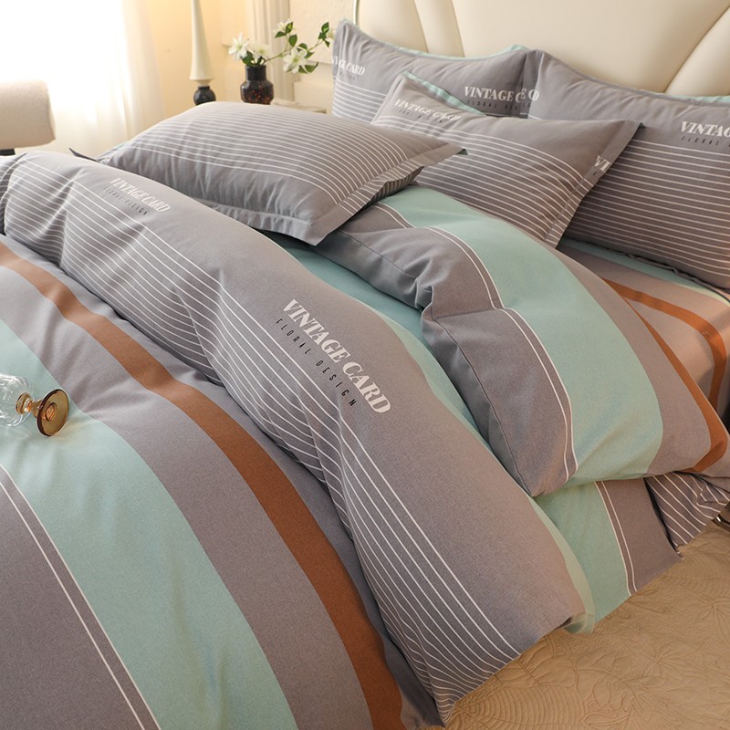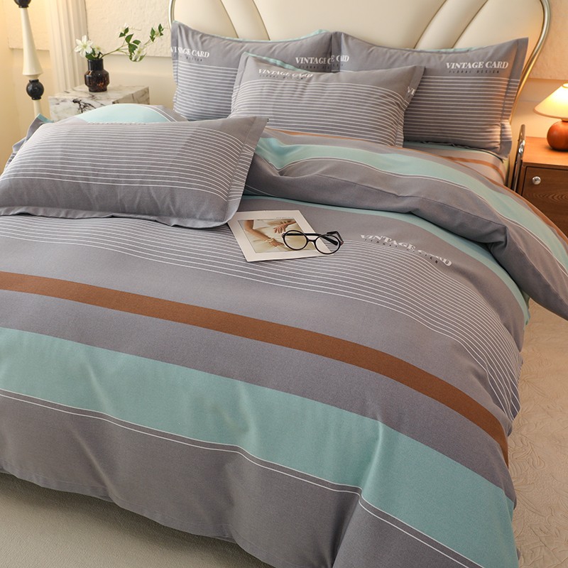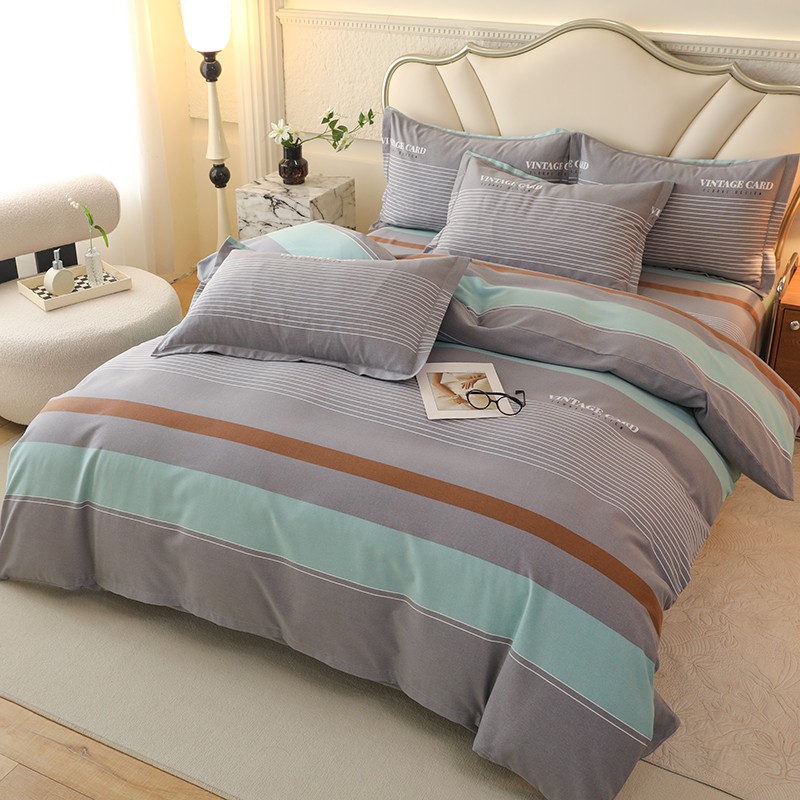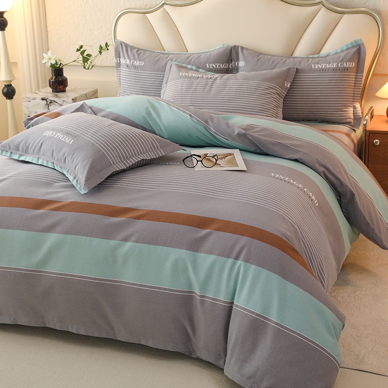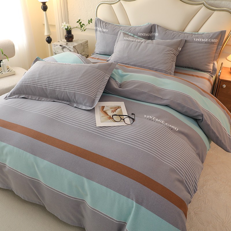 木易家居2026新款全棉磨毛印花四件套 绅士条纹