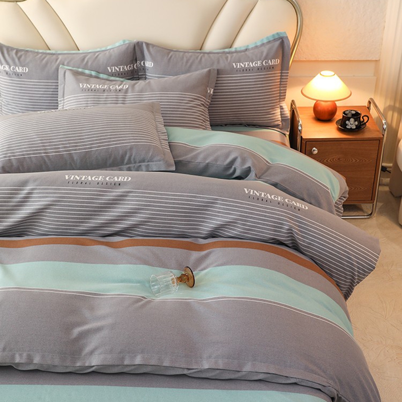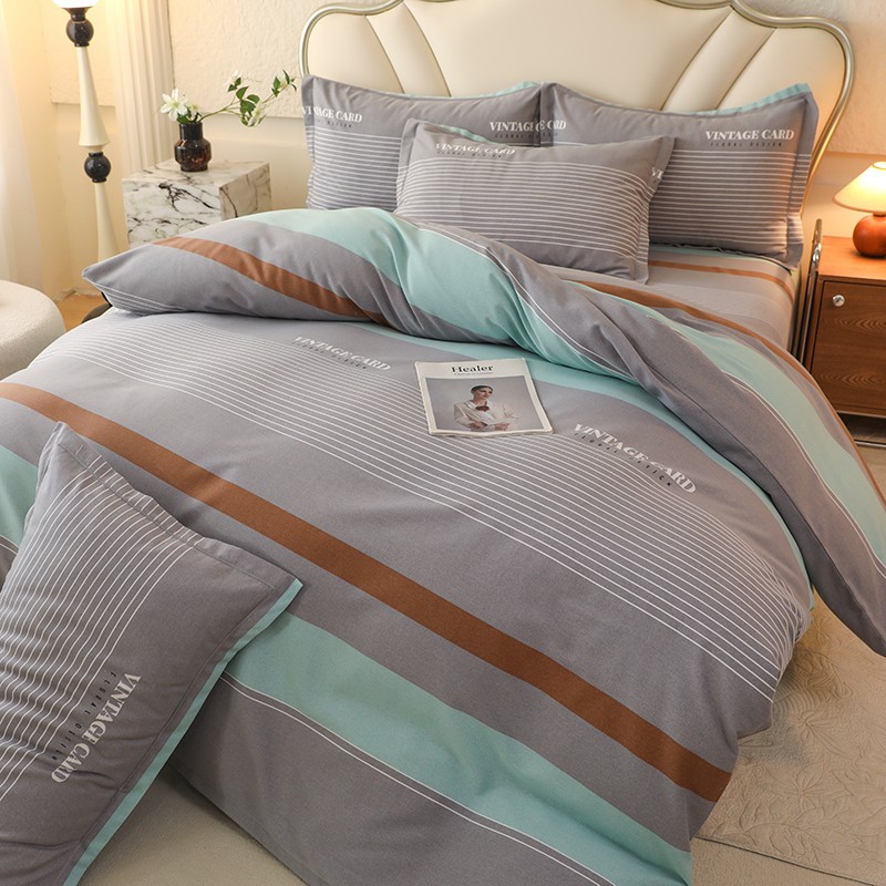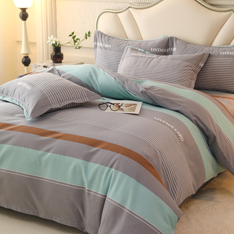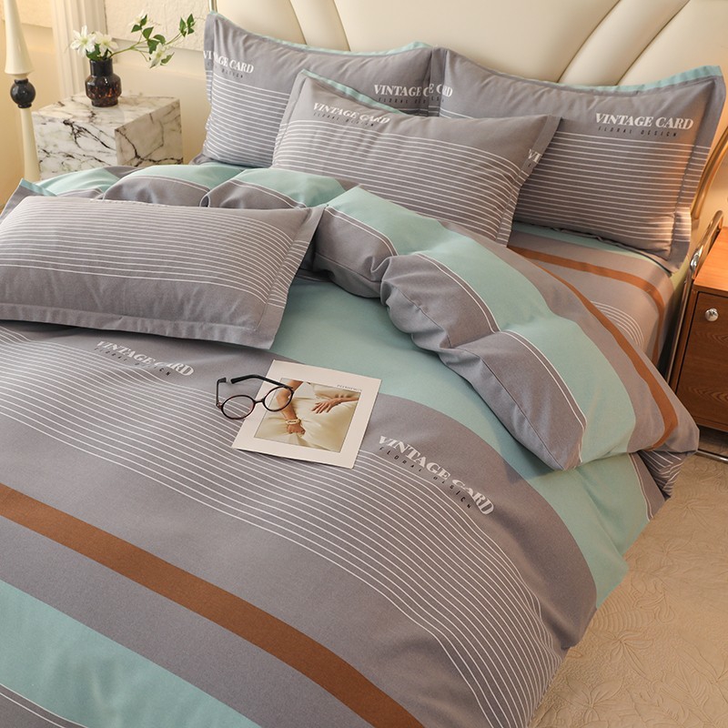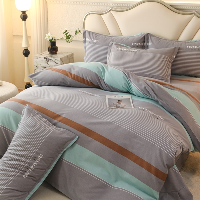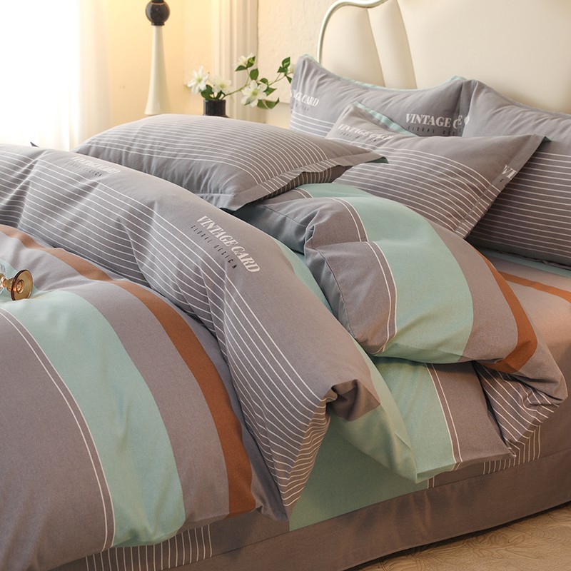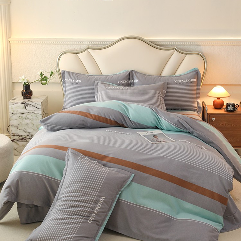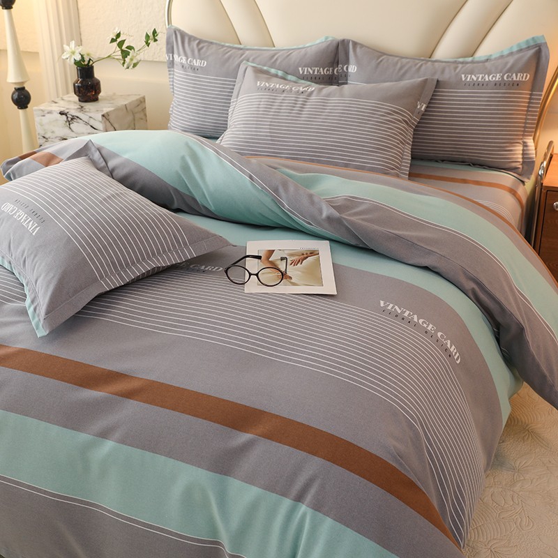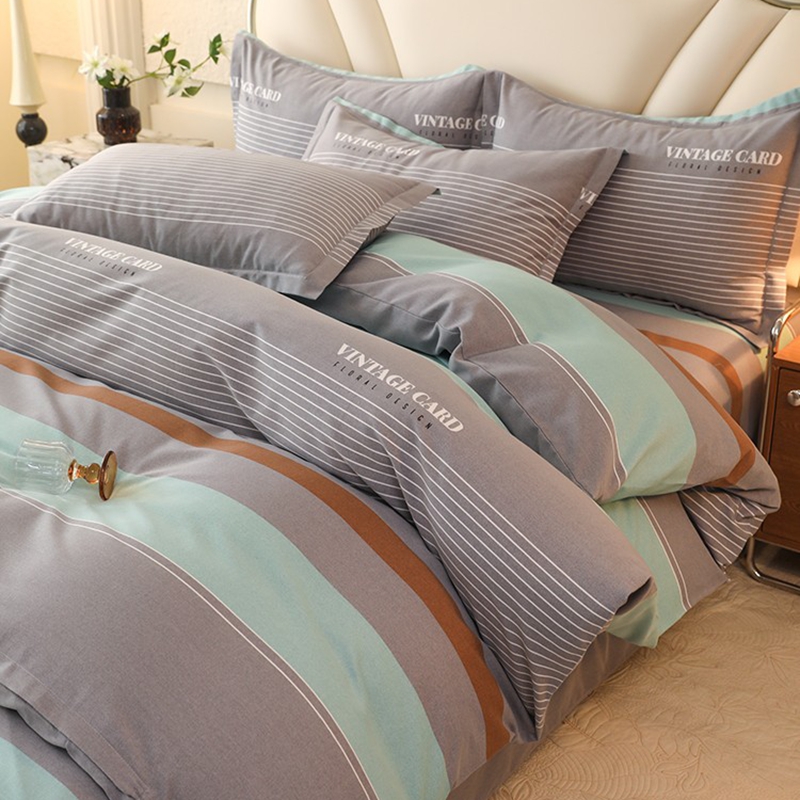木易家居2026新款全棉磨毛印花四件套 绅士条纹