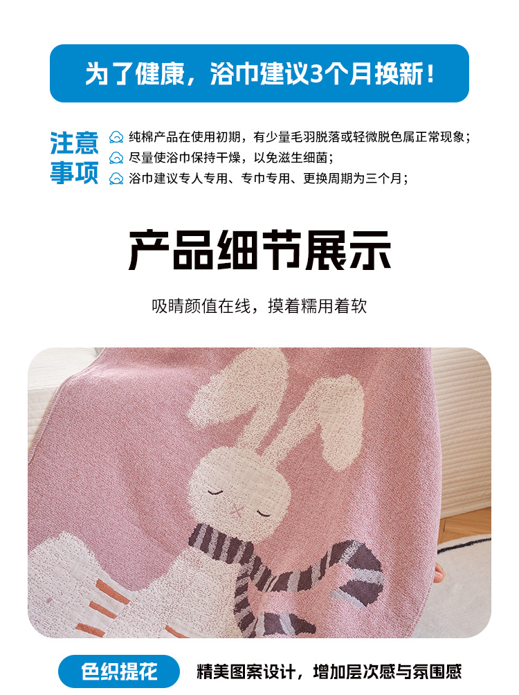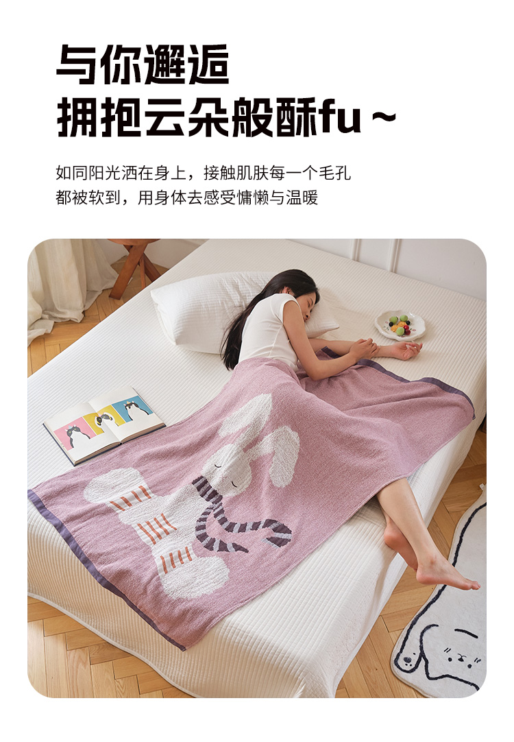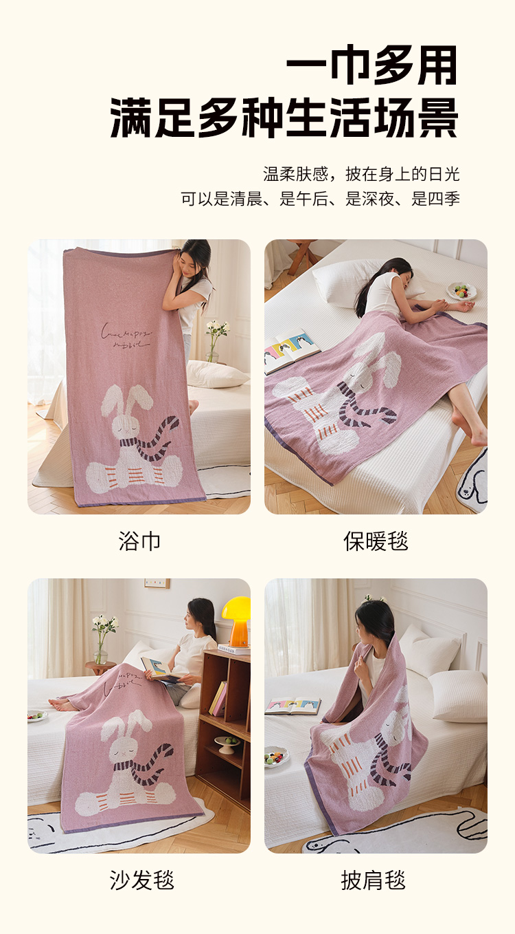 当前位置: 91家纺网 > 商品网购 > 居家日用 > 毛巾/浴巾/浴袍 > 浴巾 > 沐瑟家纺 2025新款卡通A类全棉四层纱布浴巾加大毛巾-第二组 波尔兔 80*160cm浴巾/条