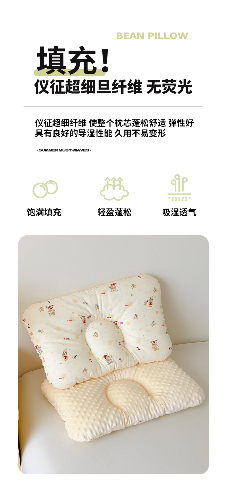 商品名称:北鸣有鱼枕芯馆 2025新款漫画家系列全棉双层纱豆豆枕枕头枕芯 星星伙伴-30x50cm