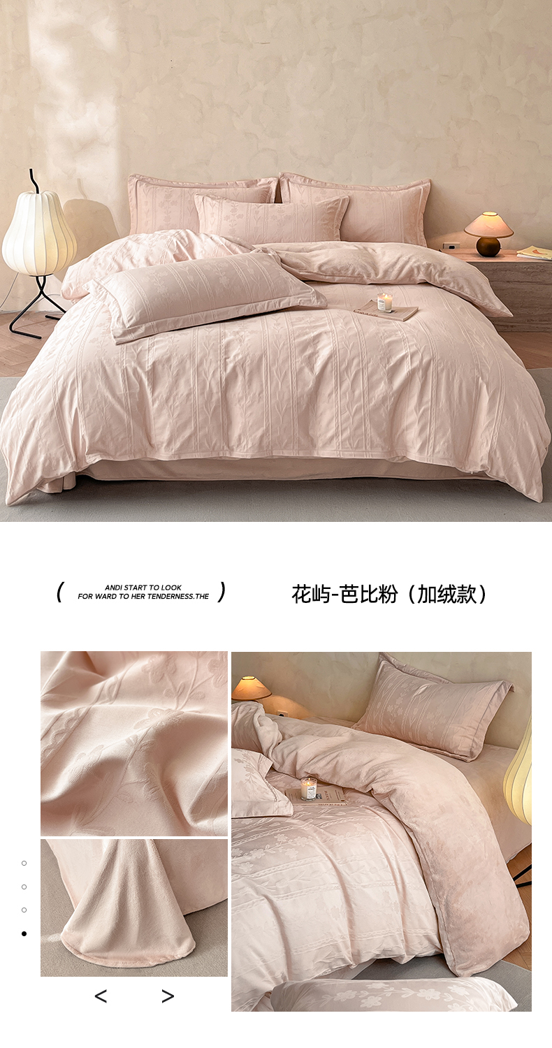 当前位置: 91家纺网 > 商品网购 > 床品套件 > 四件套 > 其它四件套 > 禾时 2025新款全棉加厚立体提花加绒四件套 花屿-芭比粉(加绒款)