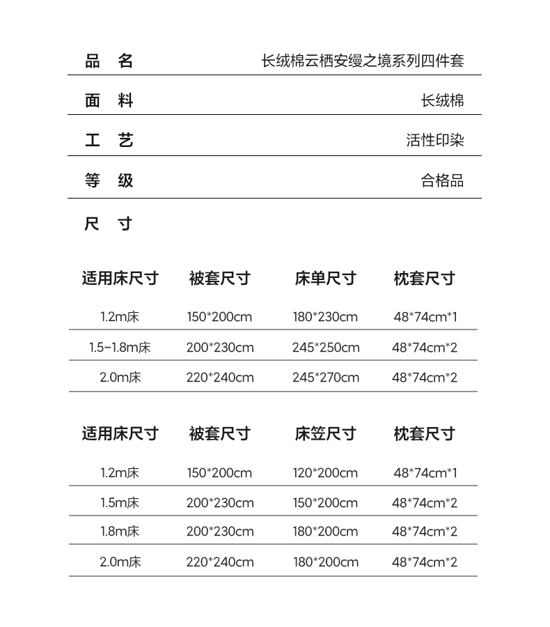 【床笠款】1.8四件套-被套220x240 | ¥178.00 |